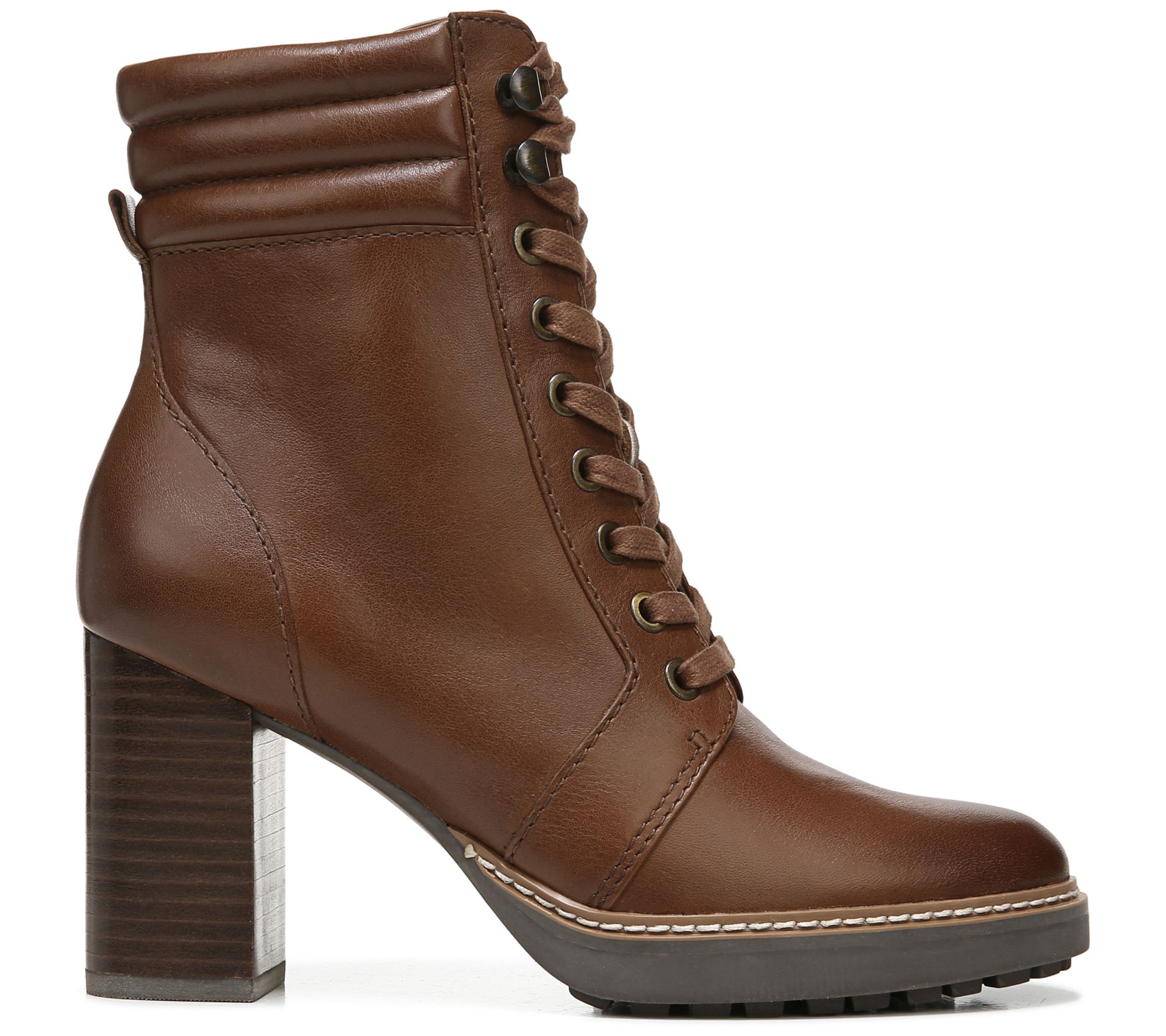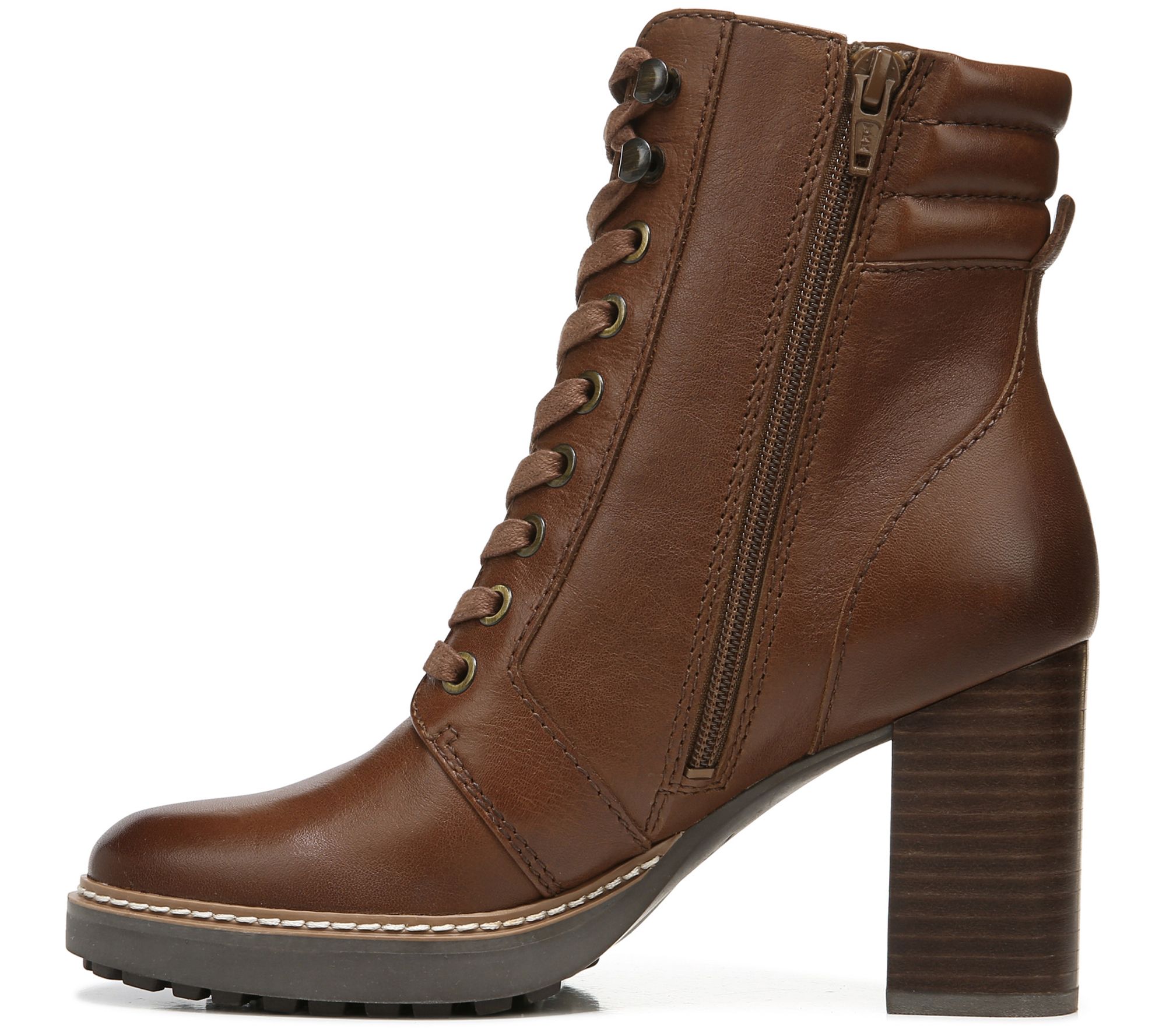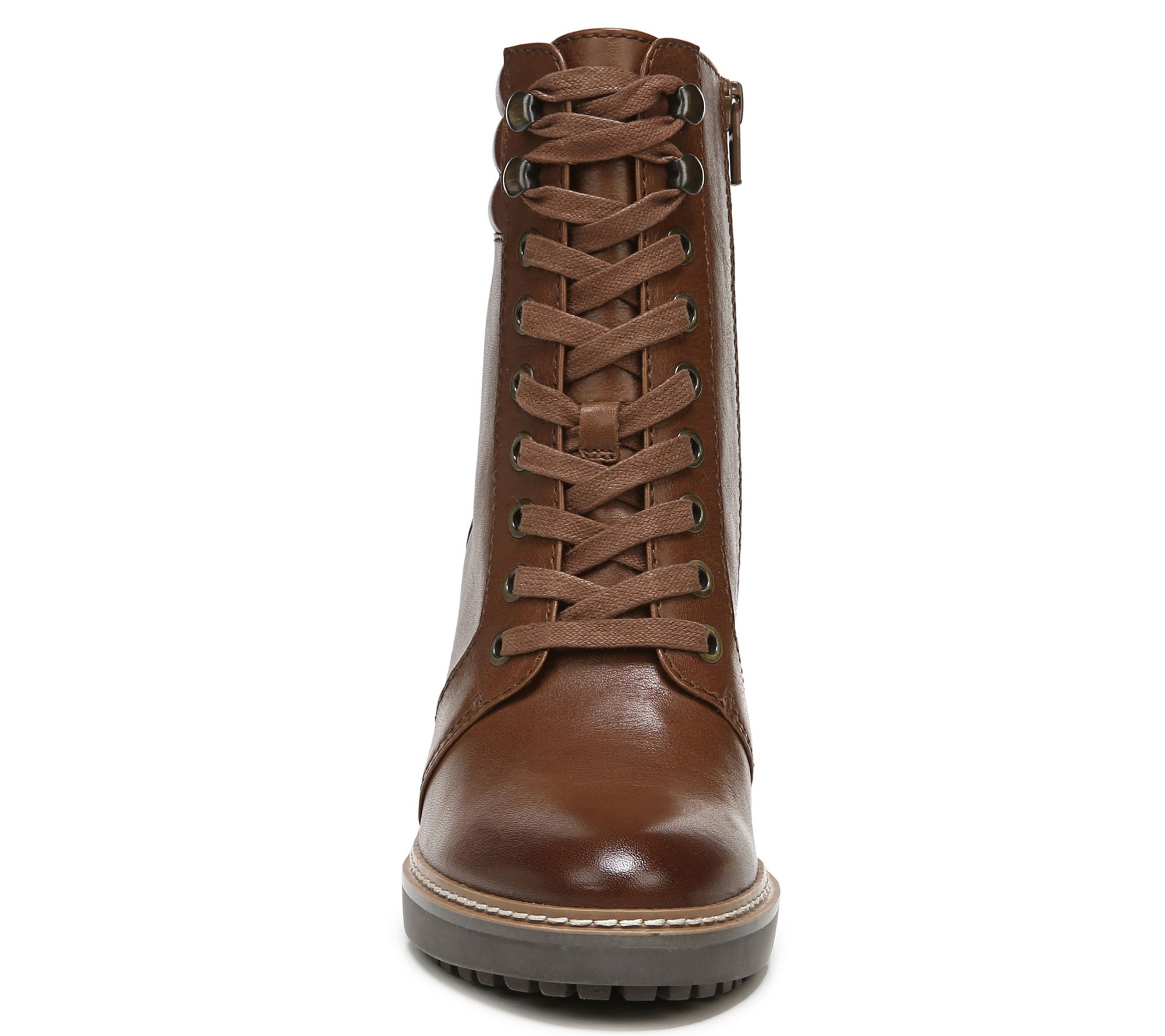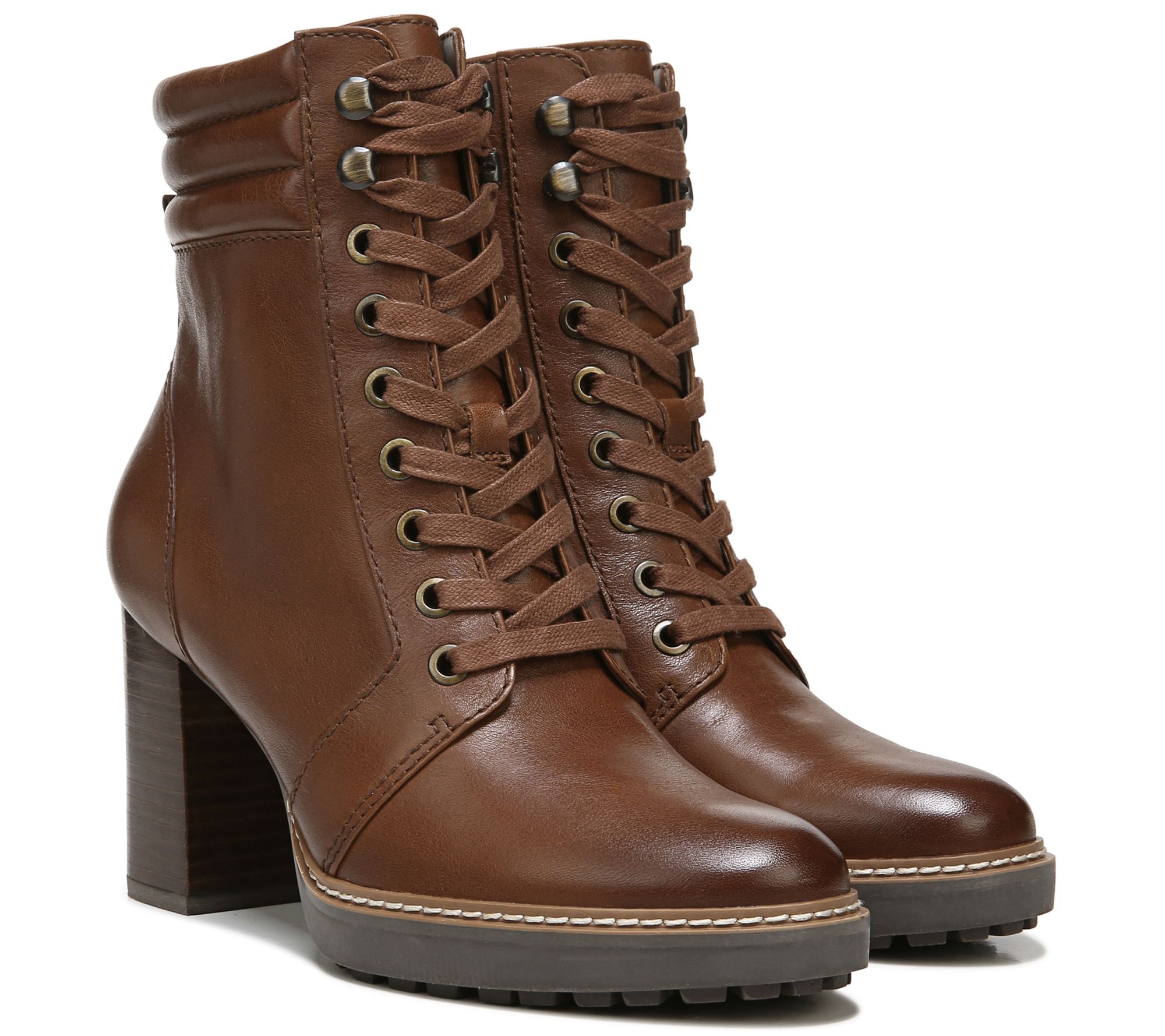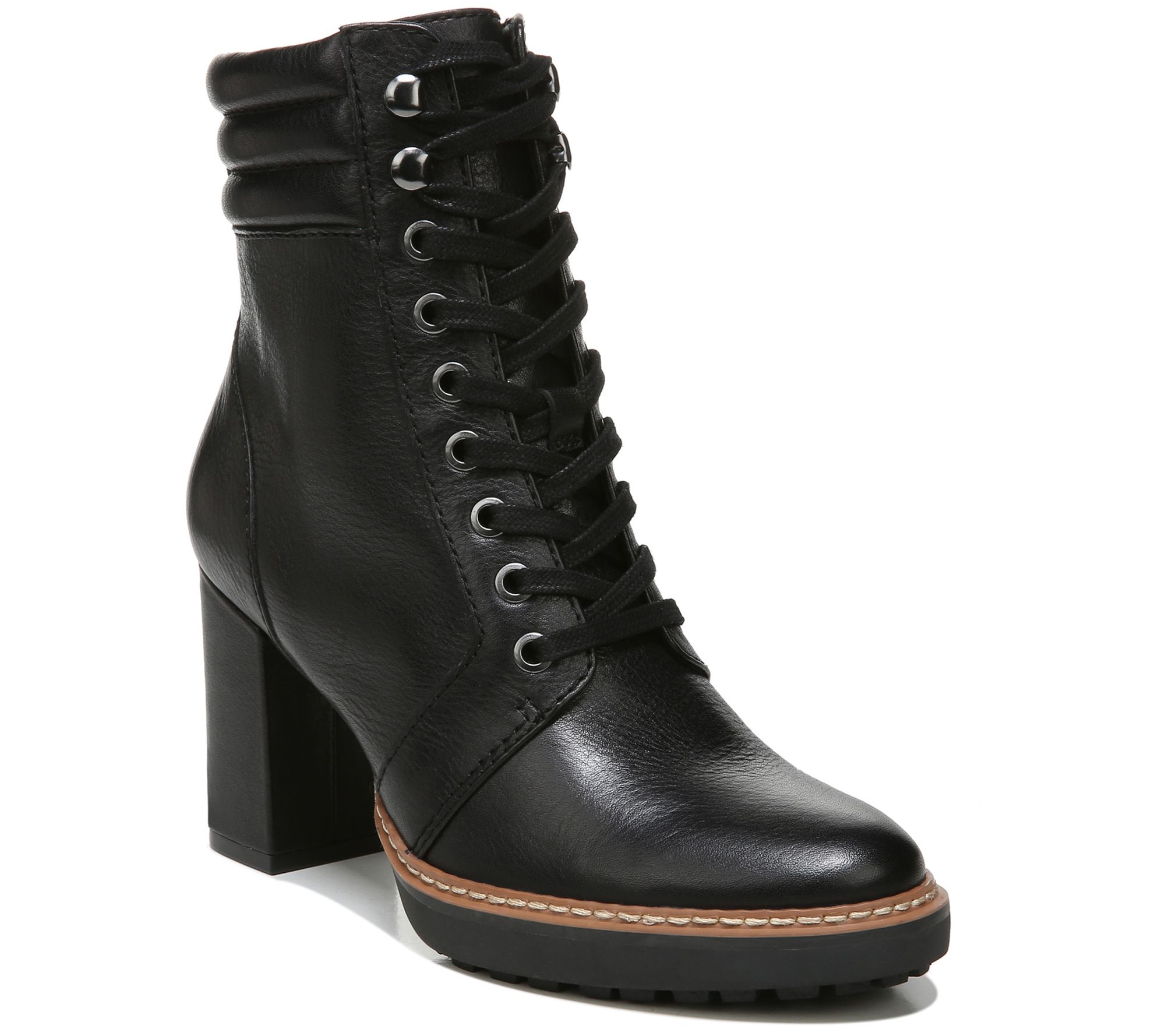 This modern lace-up bootie does it all: keeps you secure with sky-high lace-up styling, ensures an easy entrance with a full-length side zipper and elevates your look with its bold block heel. From Naturalizer.
