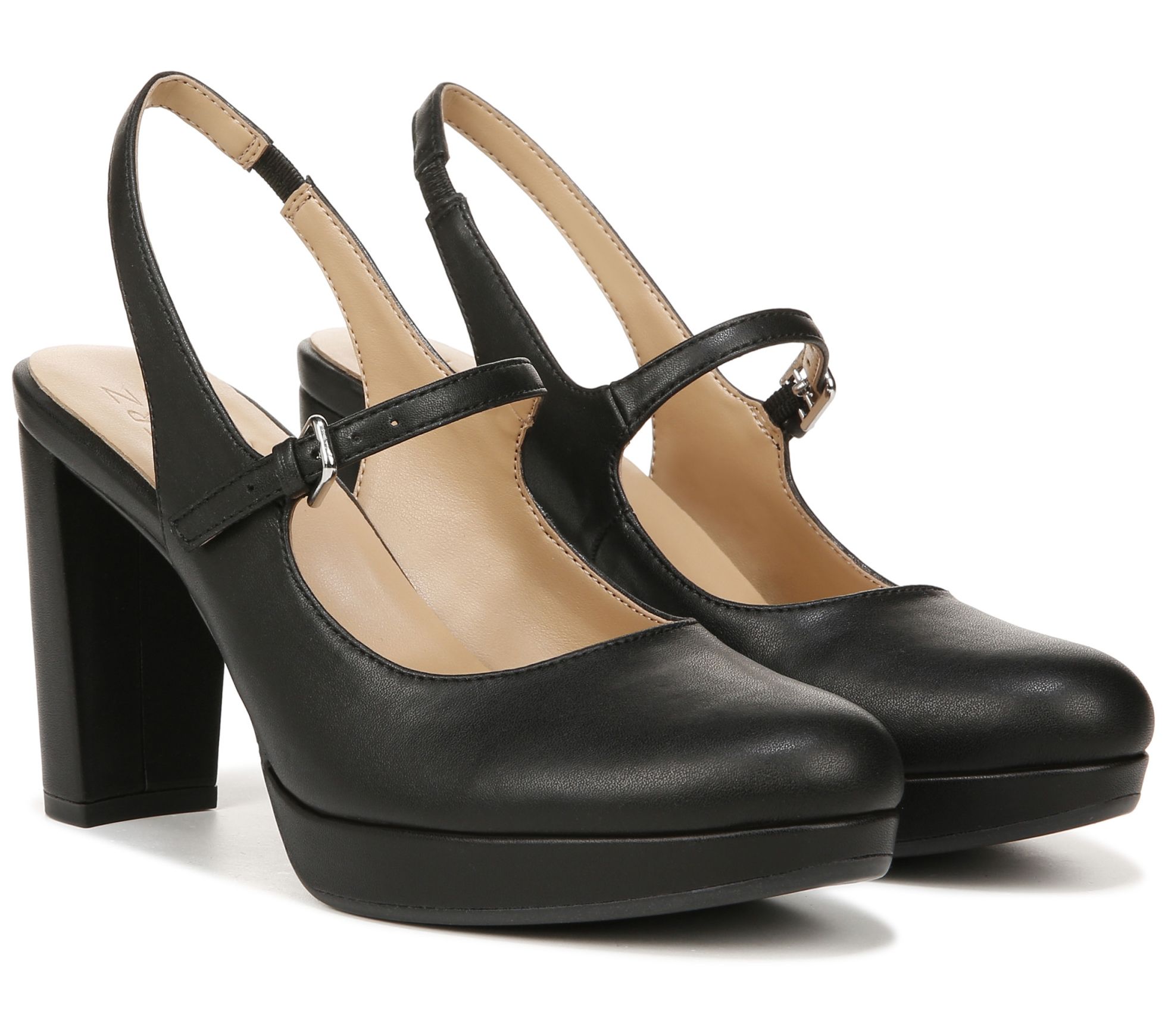 Stride through your day with trend-setting panache wearing this Mary Jane-inspired pump that combines a sleek slingback profile with a height-boosting platform toe. From Naturalizer.