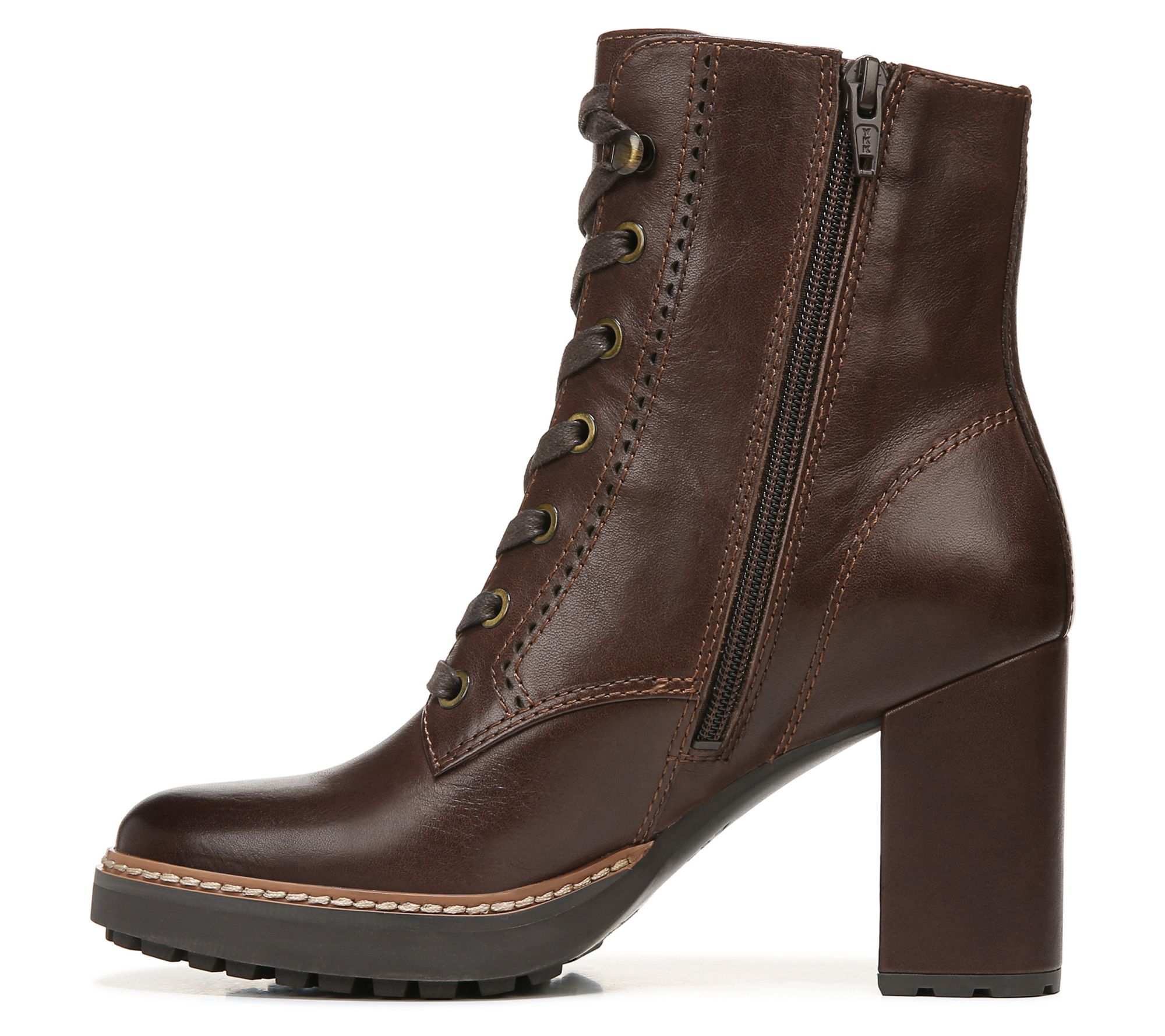 This modern lace-up bootie does it all: gives you a snug fit with sky-high lace-up styling, ensures an easy entrance with a full-length side-zip closure, and elevates your look with its bold block heel. Ingenious elegant utility. From Naturalizer.