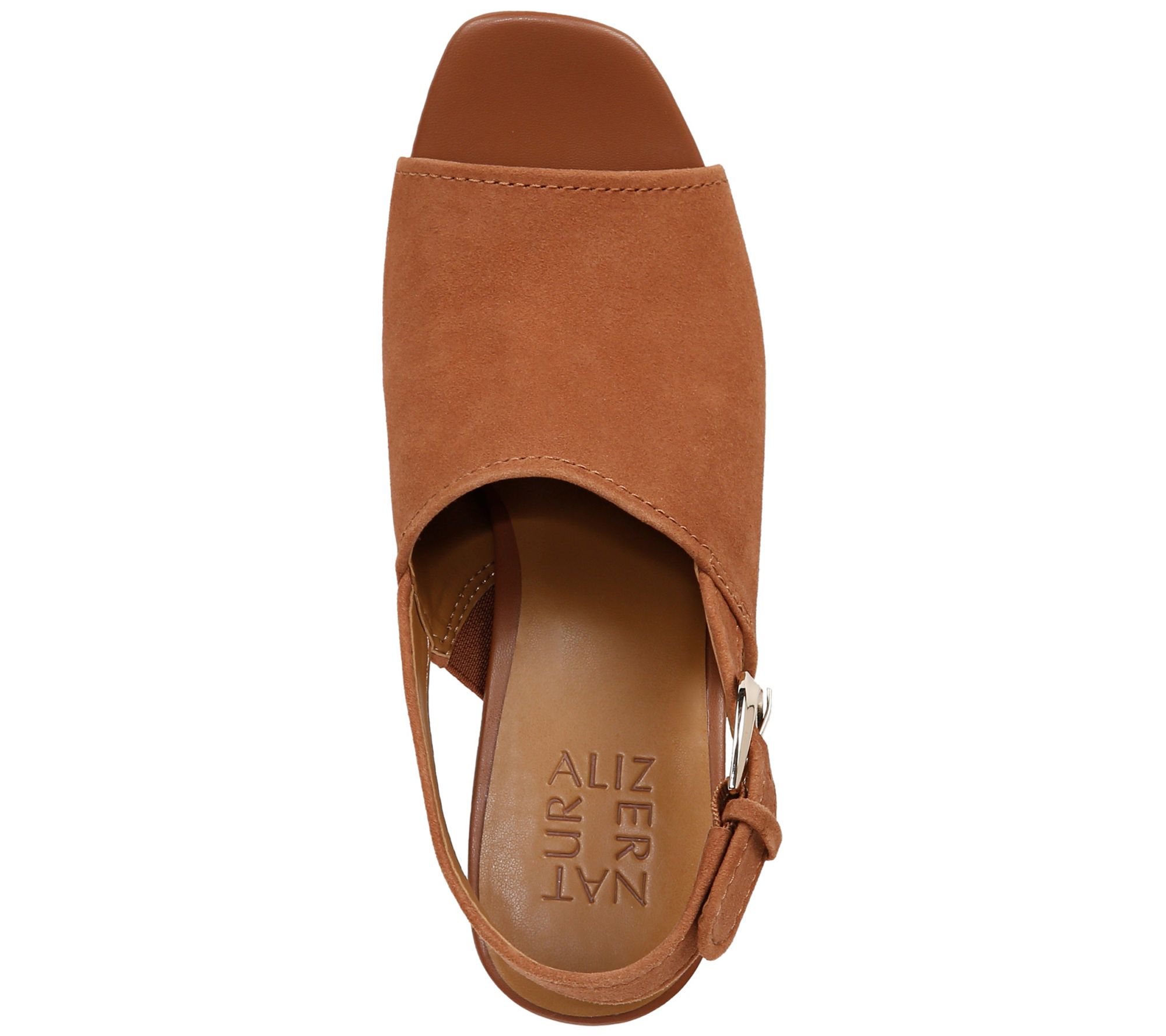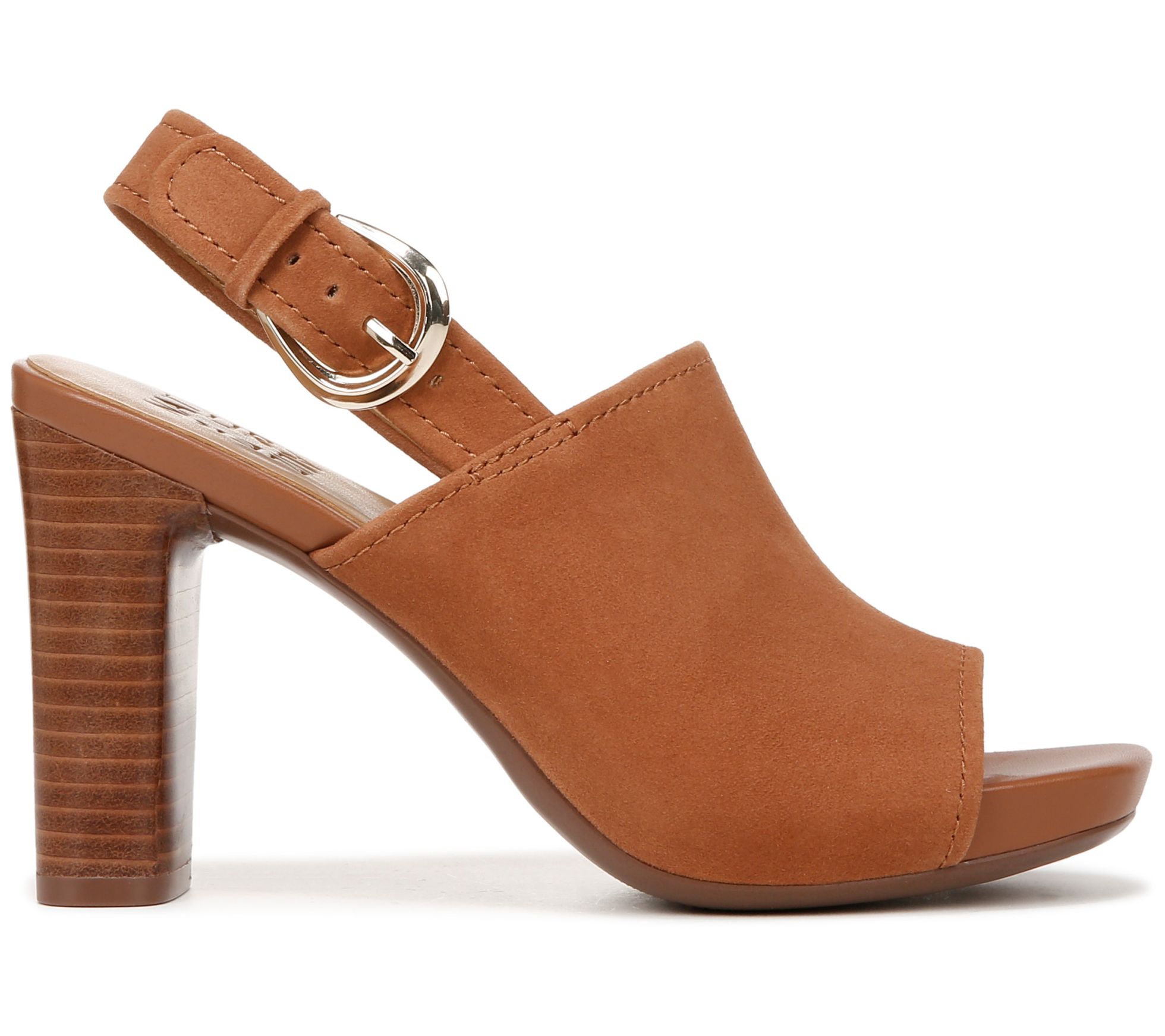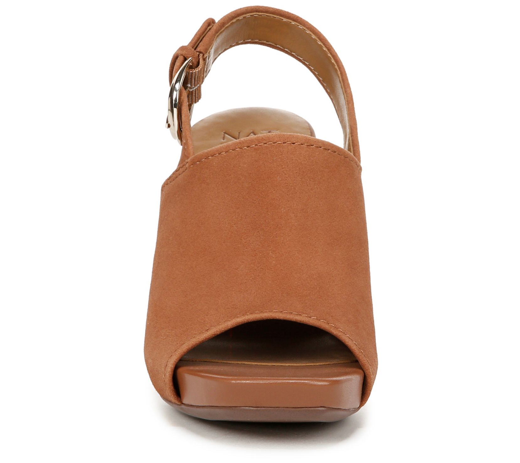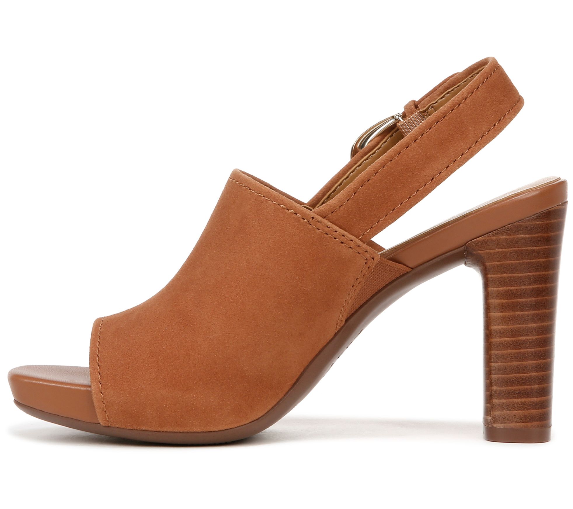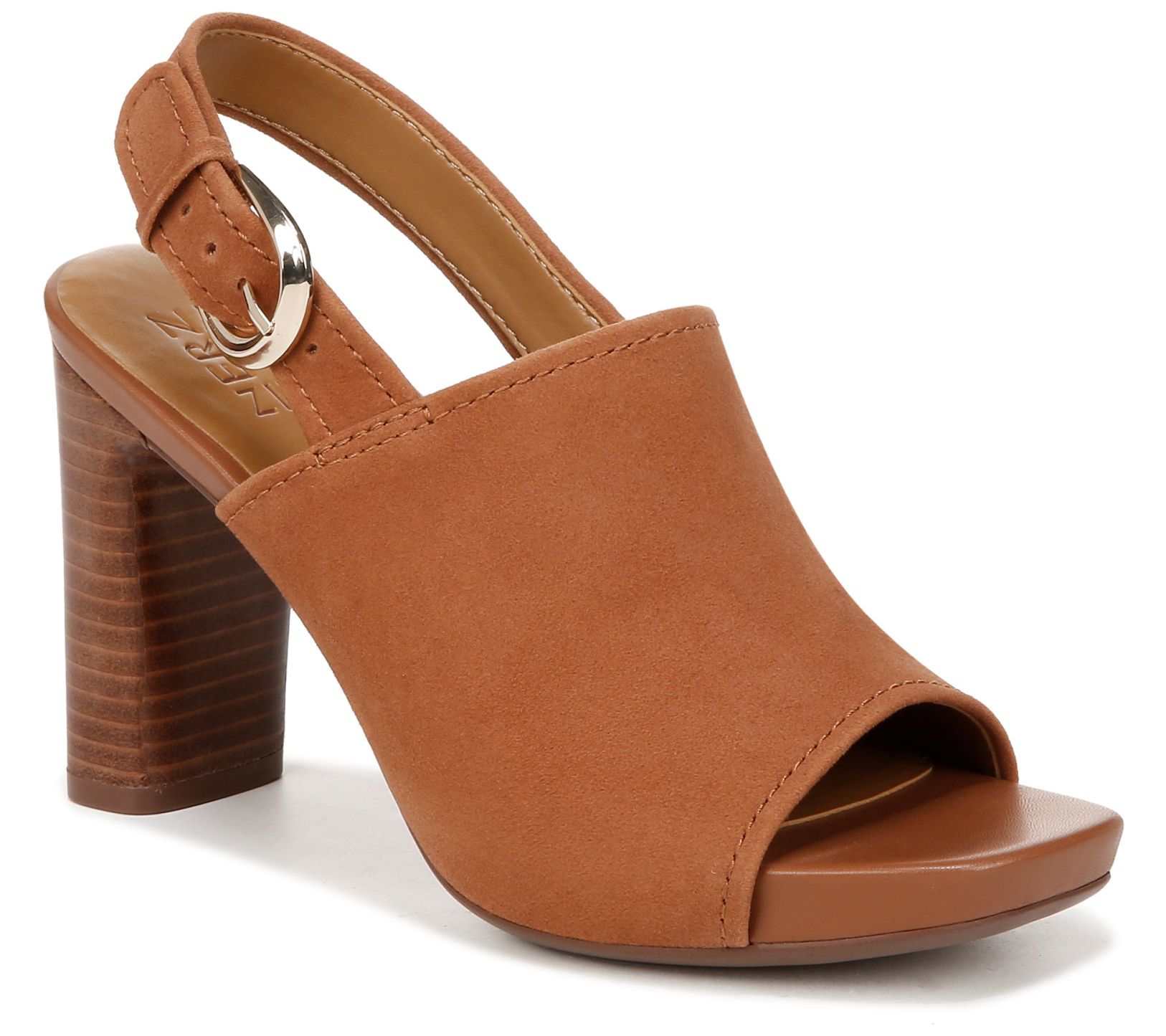 Flaunt your fabulous taste in footwear with this snazzy open-toe pair of slingbacks featuring adjustable buckled straps and sturdy stacked heels. From Naturalizer.