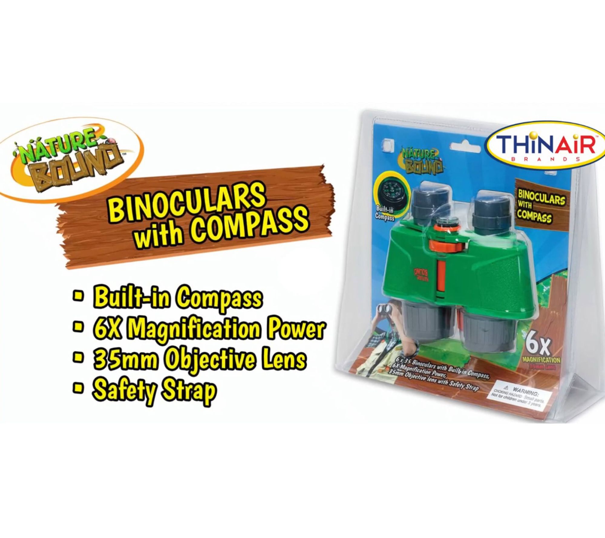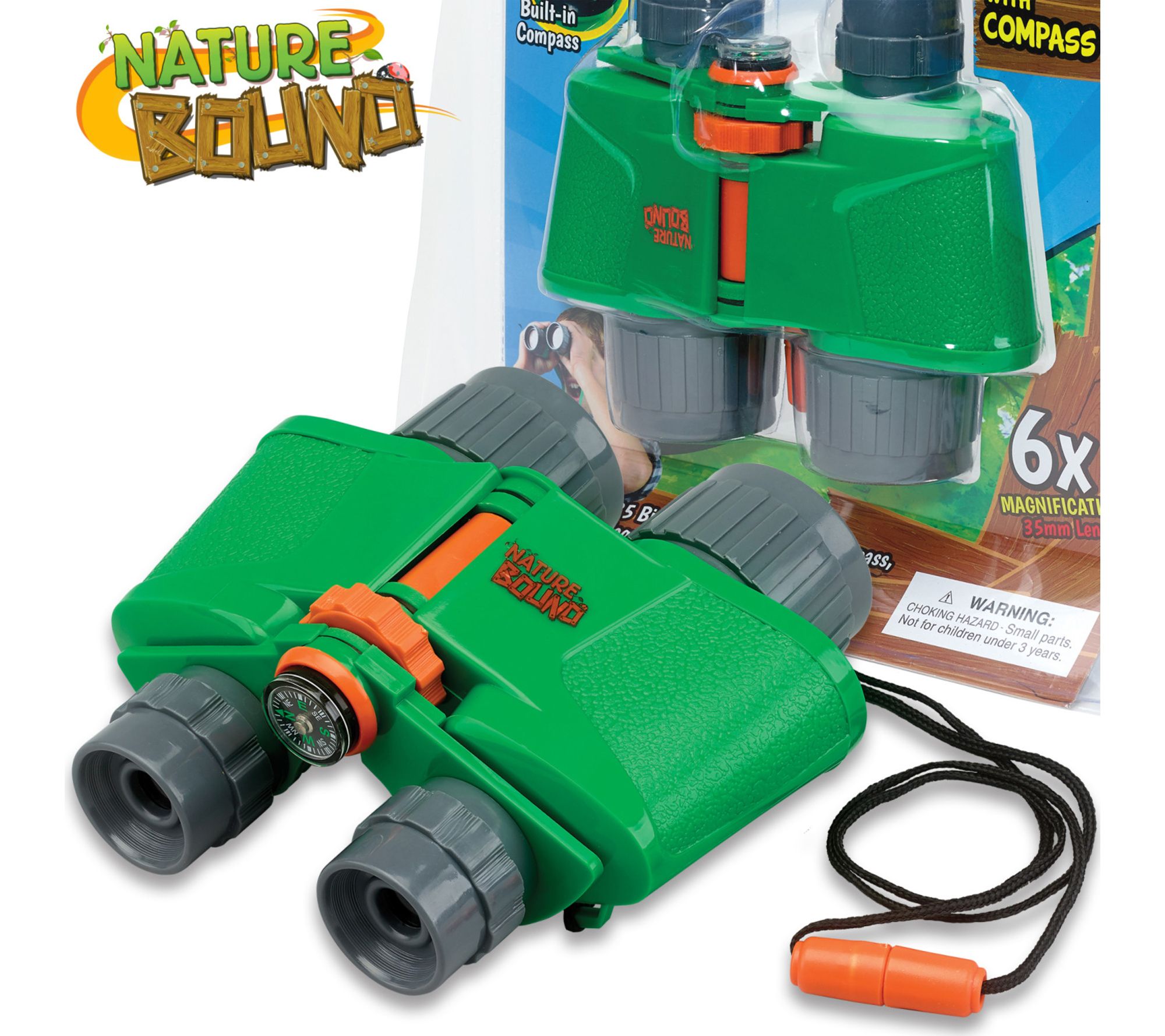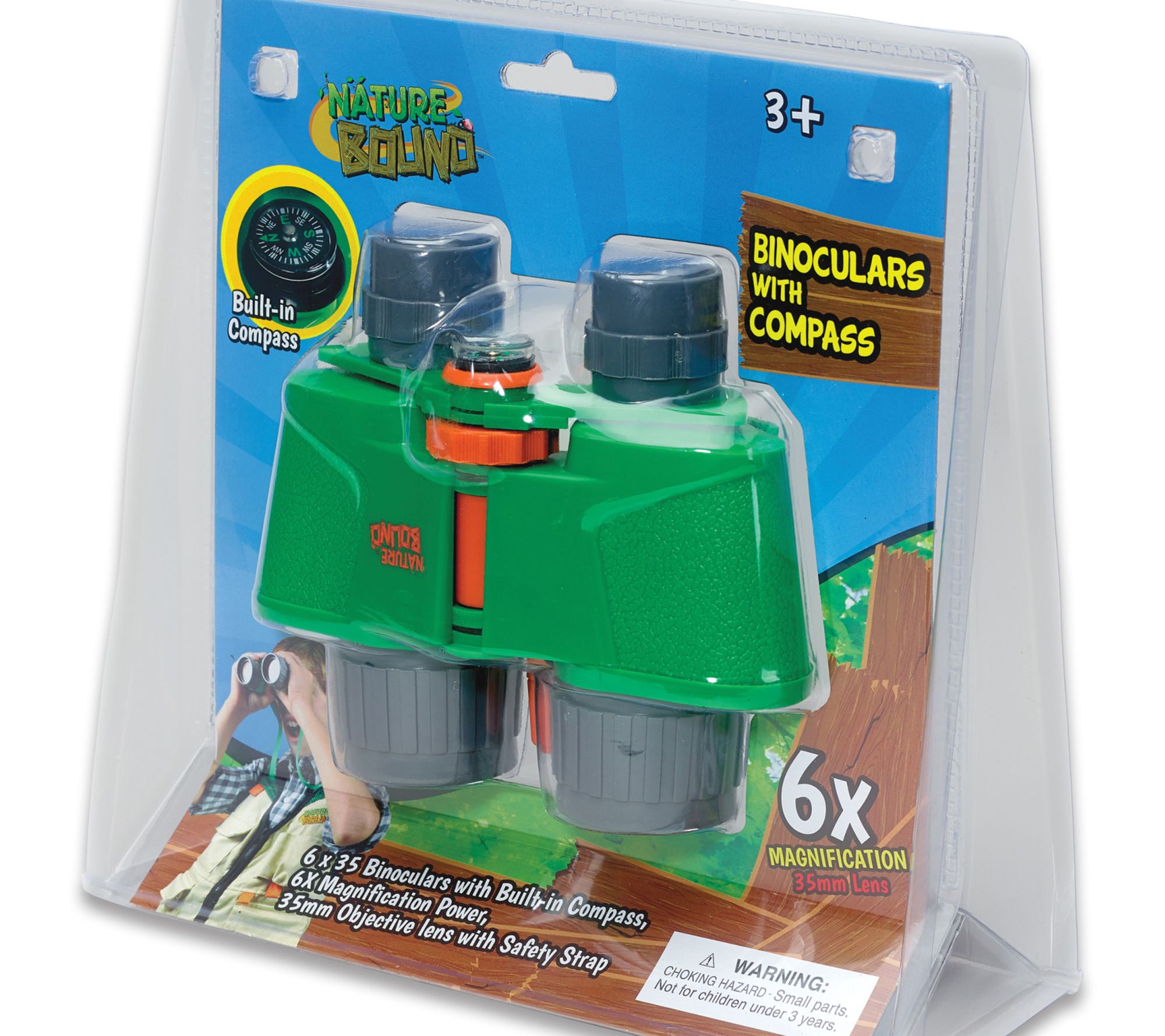 Spark curiosity and adventure with these educational binoculars featuring a built-in compass -- perfect for teaching little explorers about nature and navigation. Outings to the backyard, hikes, and family trips become exciting opportunities to spot wildlife and learn about direction, all while enjoying time outdoors together. From Nature Bound Toys.