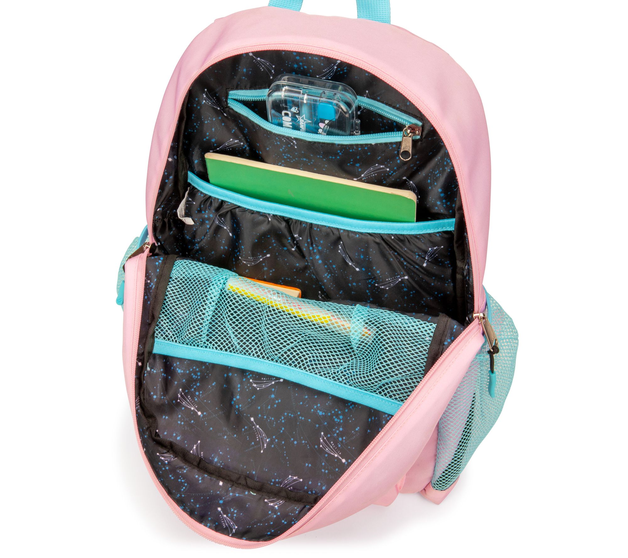 Make school days exciting and organized with this convenient backpack. Crafted from durable fabric, this stylish backpack features a padded back and adjustable double straps for ultimate comfort. From Nautica.