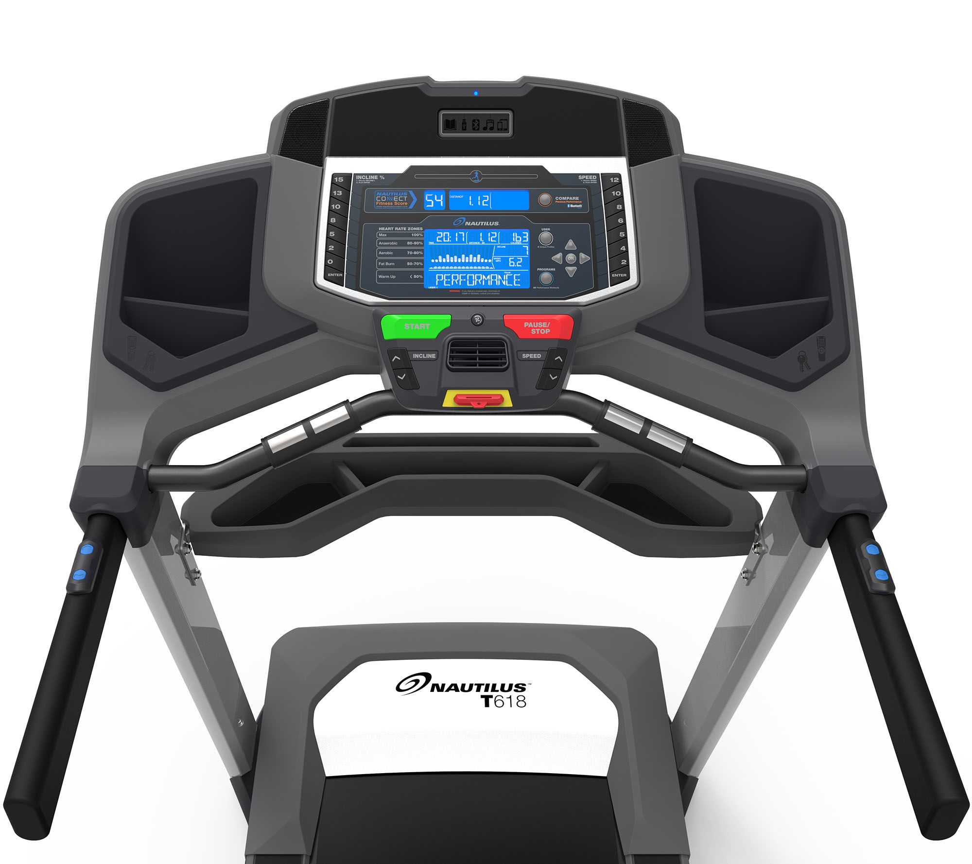 Make a run towards better fitness atop the heavy-duty Nautilus T618 treadmill. The rebound cushioning system provides a soft running surface, while the DualTrack display system keeps your stats in clear view. From Nautilus.