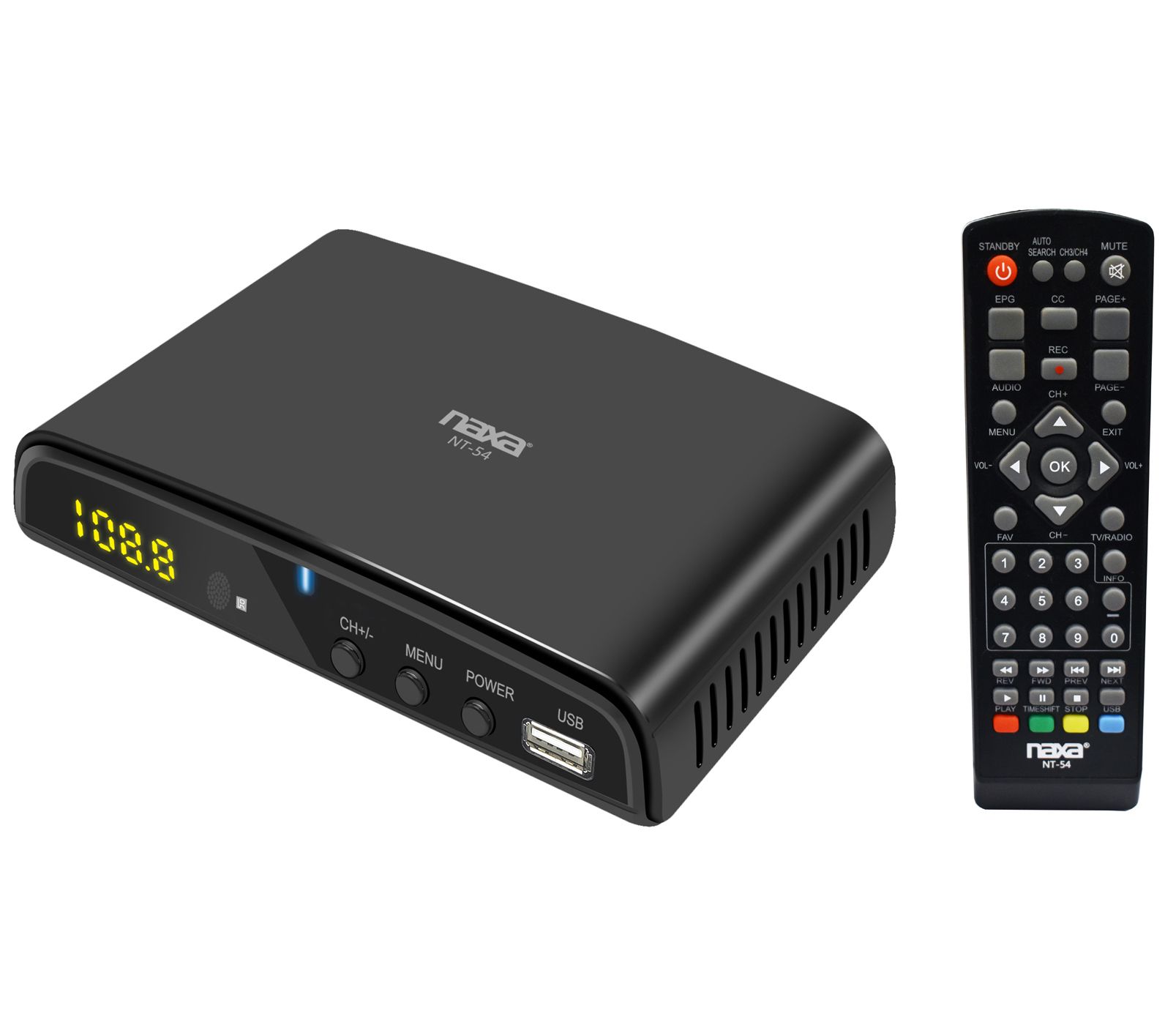 Update your viewing experience with the Naxa digital HDTV converter that receives over-the-air TV broadcasts and lets you watch TV when and how you want it with time-shift recording. From Naxa.