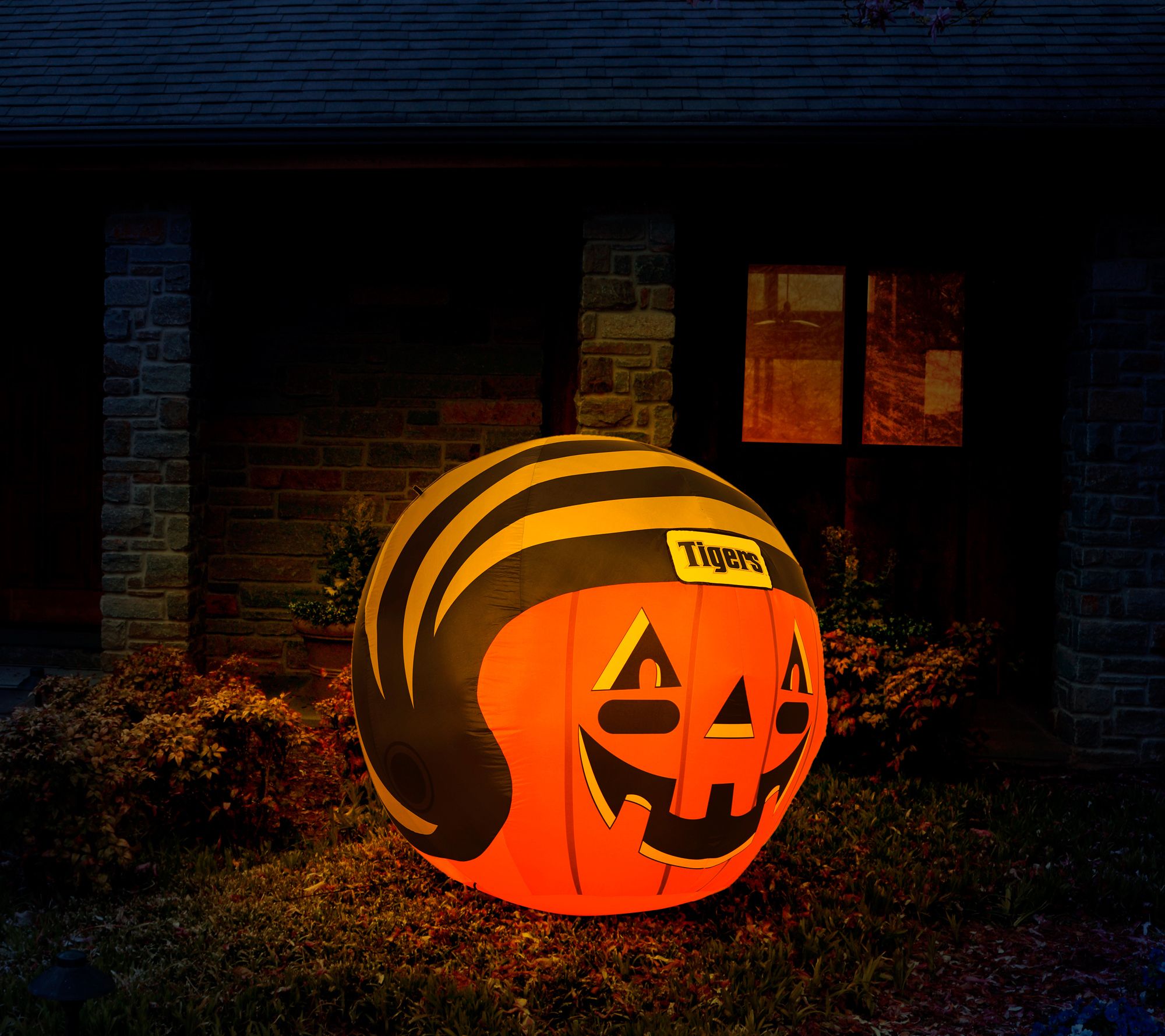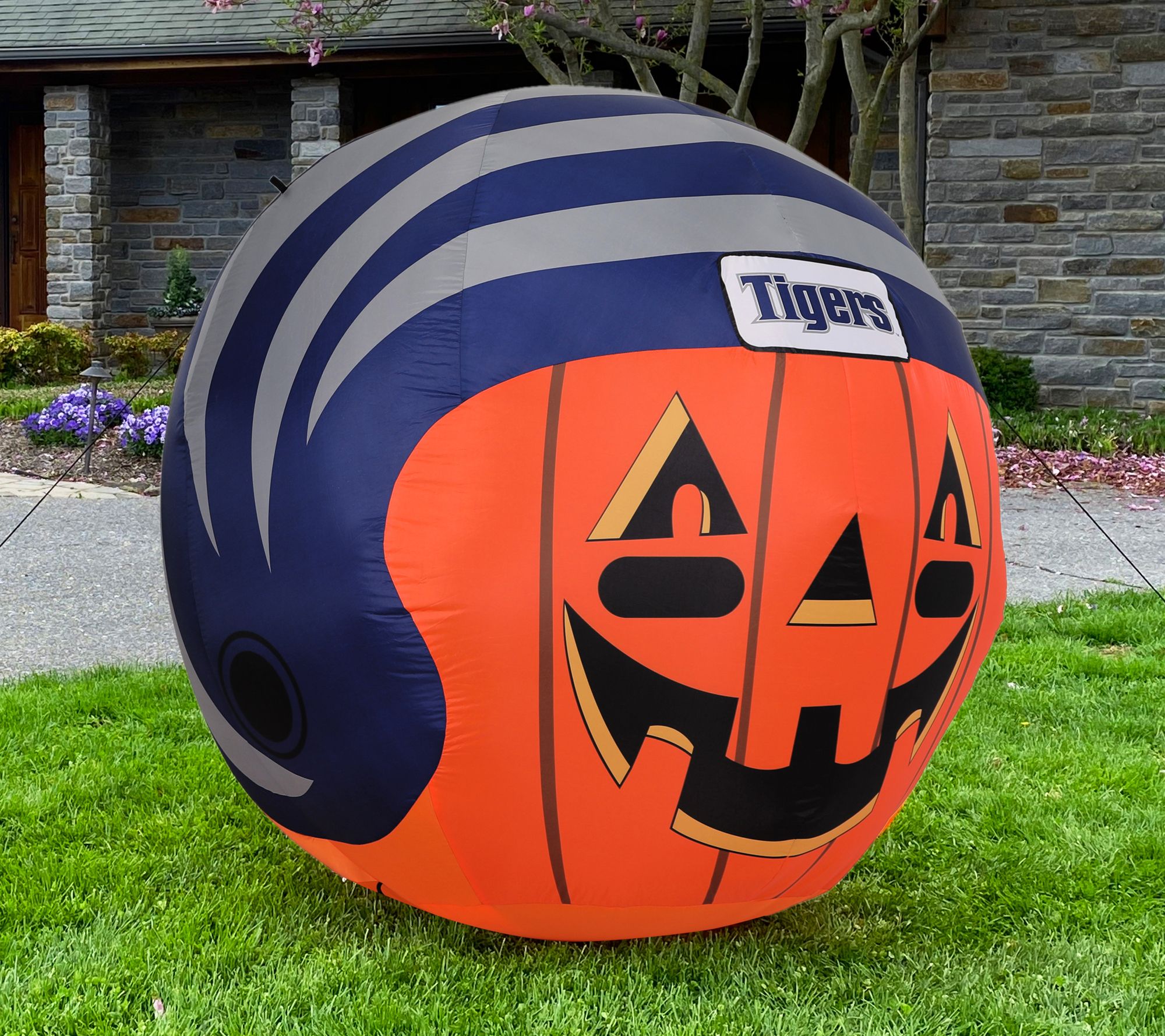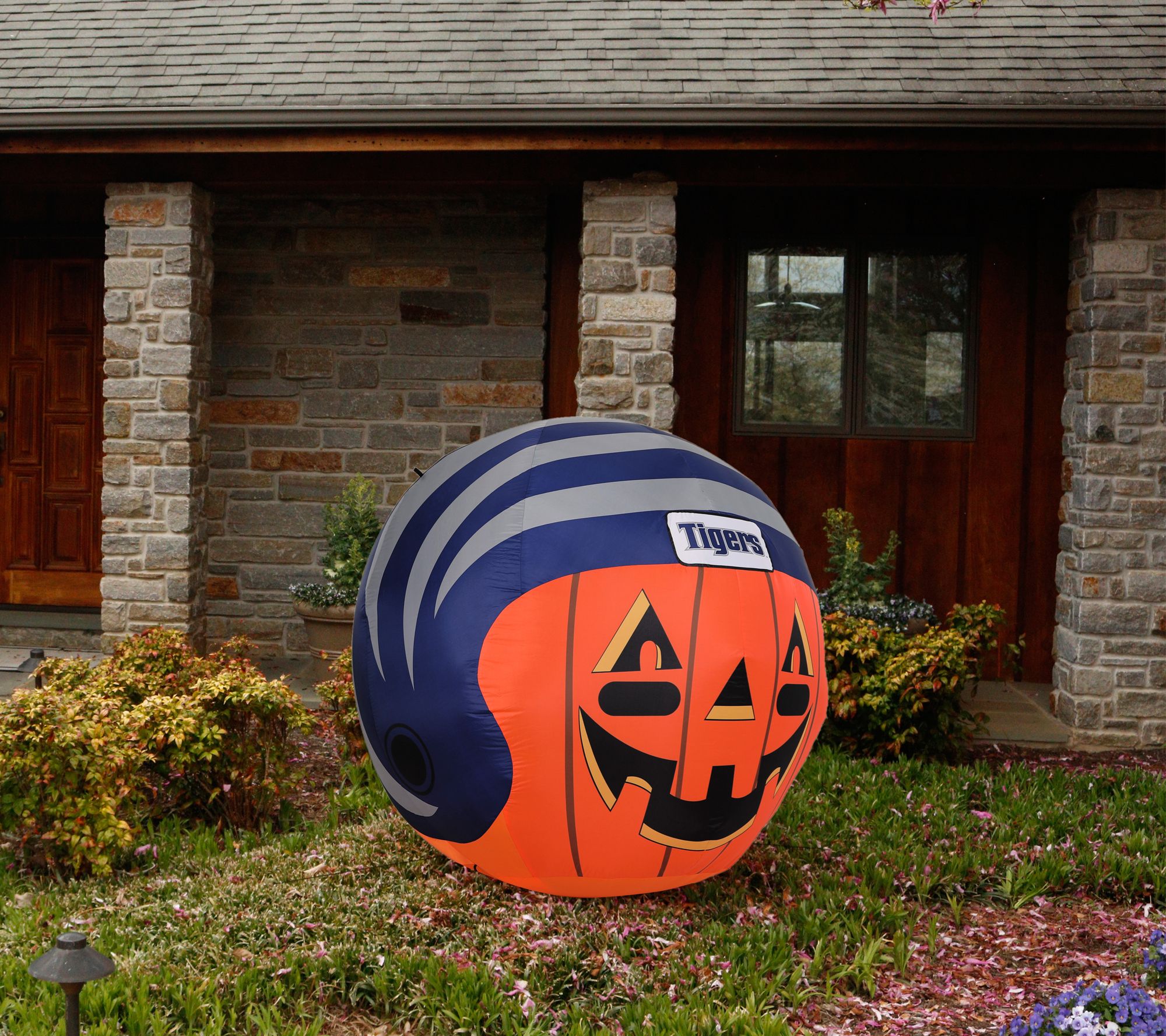 Two of your favorite fall traditions rolled into one fun yard display! This jack-'o-lantern is all decked out in a helmet, and ready to help celebrate your favorite college team's big game. From Sporticulture Team Pride.