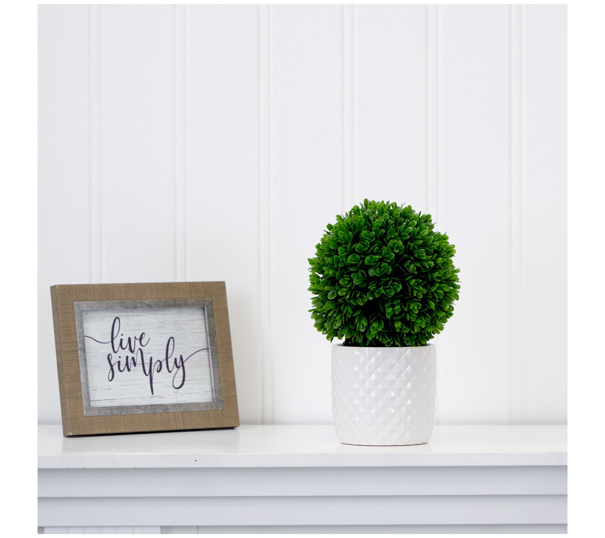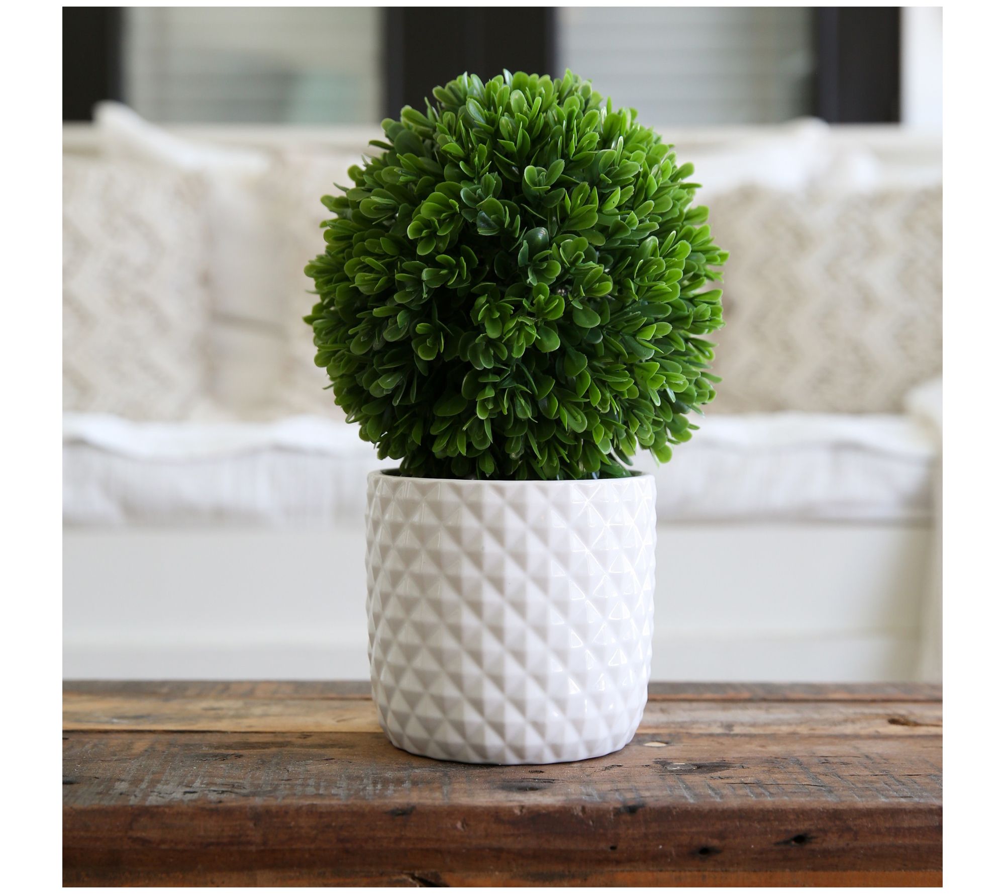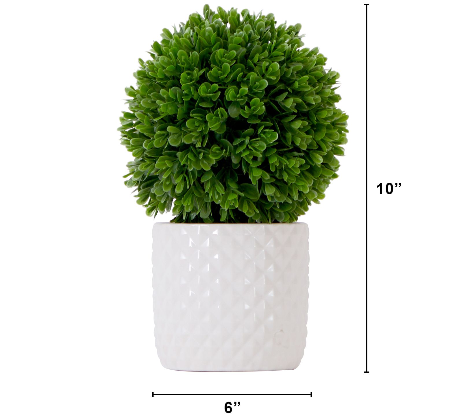 • Includes artifcial boxwood topiary plant and decorative planter