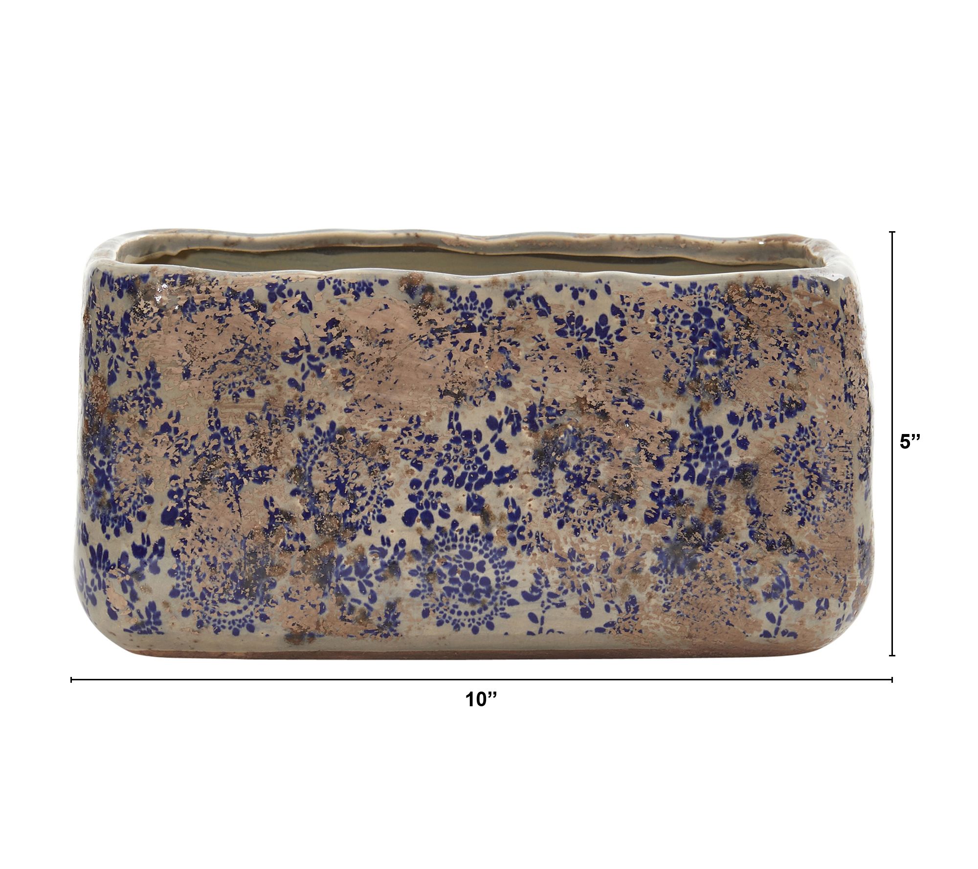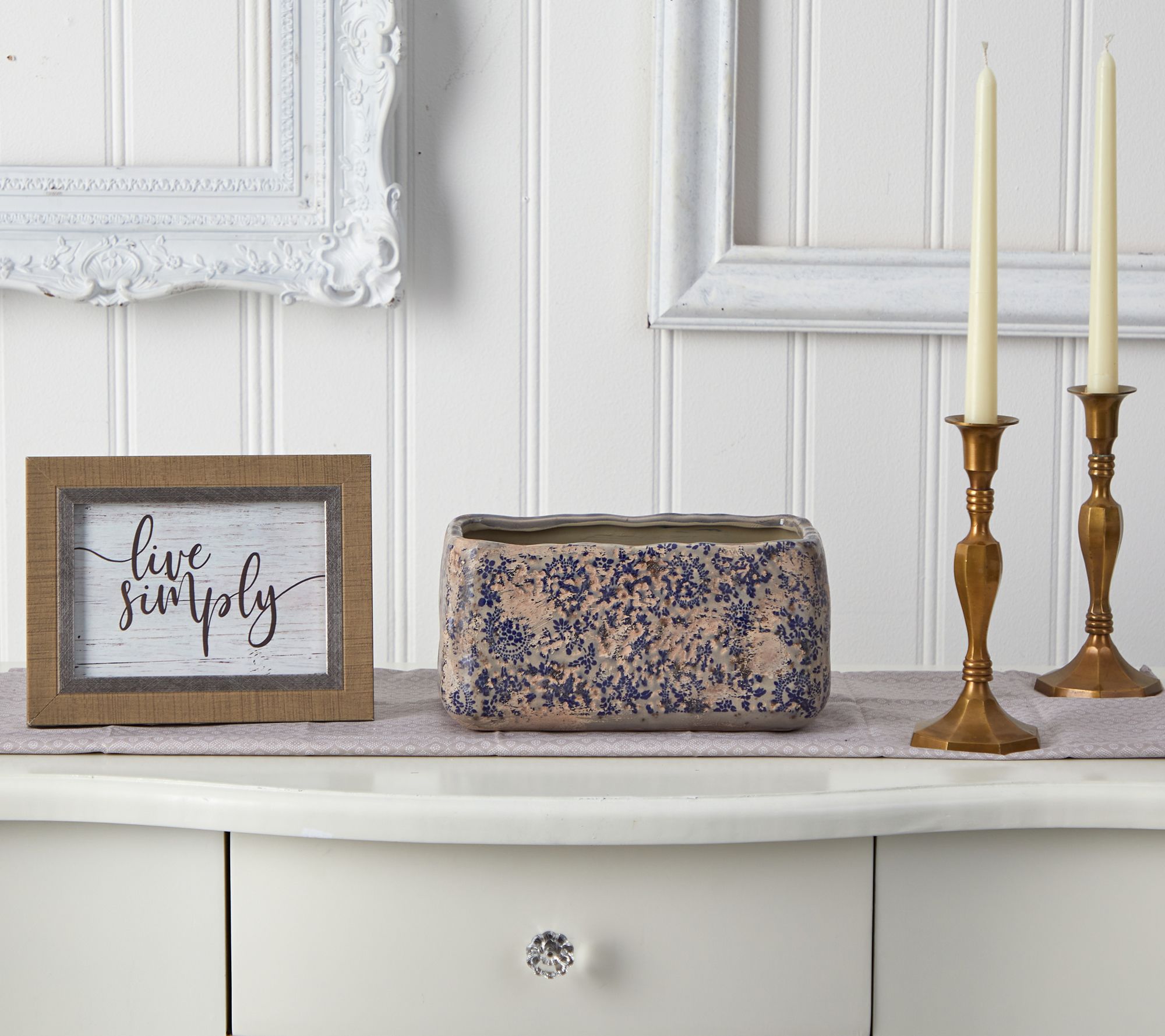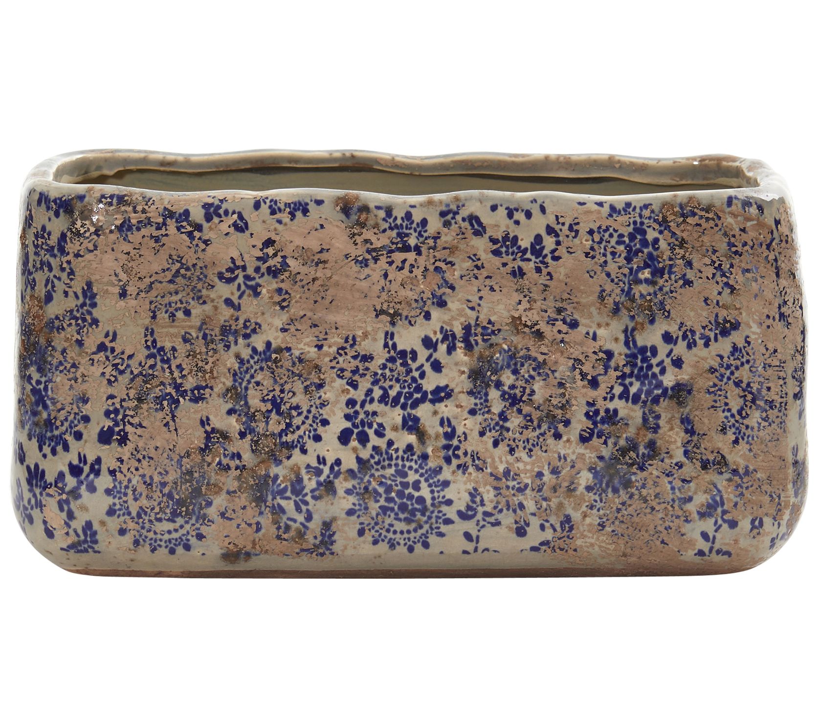 Arrange your fabulous faux flowers in this Tuscan ceramic rectangle planter. The vintage floral print and rugged backdrop create a homey feel, perfect for a country chic look. From Nearly Natural.