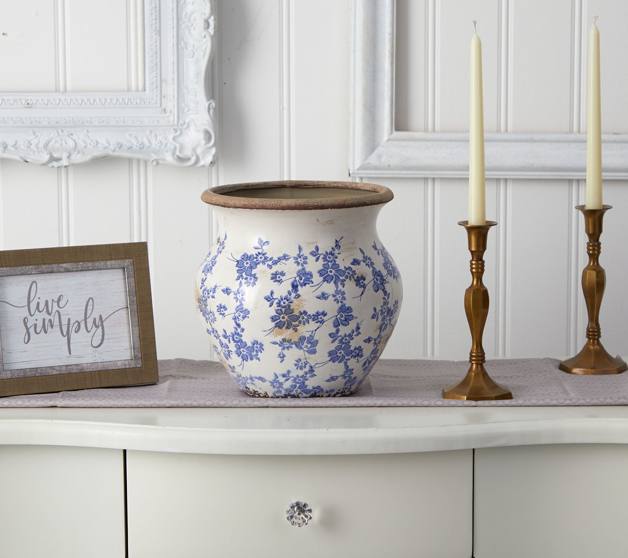 Transform any room with the Nearly Natural Tuscan Ceramic Blue Scroll Urn Vase, perfect for showcasing your lifelike floral arrangements. Its vintage-inspired design features a charming floral print, creating a cozy, country chic vibe that enhances your home's aesthetic. From Nearly Natural.