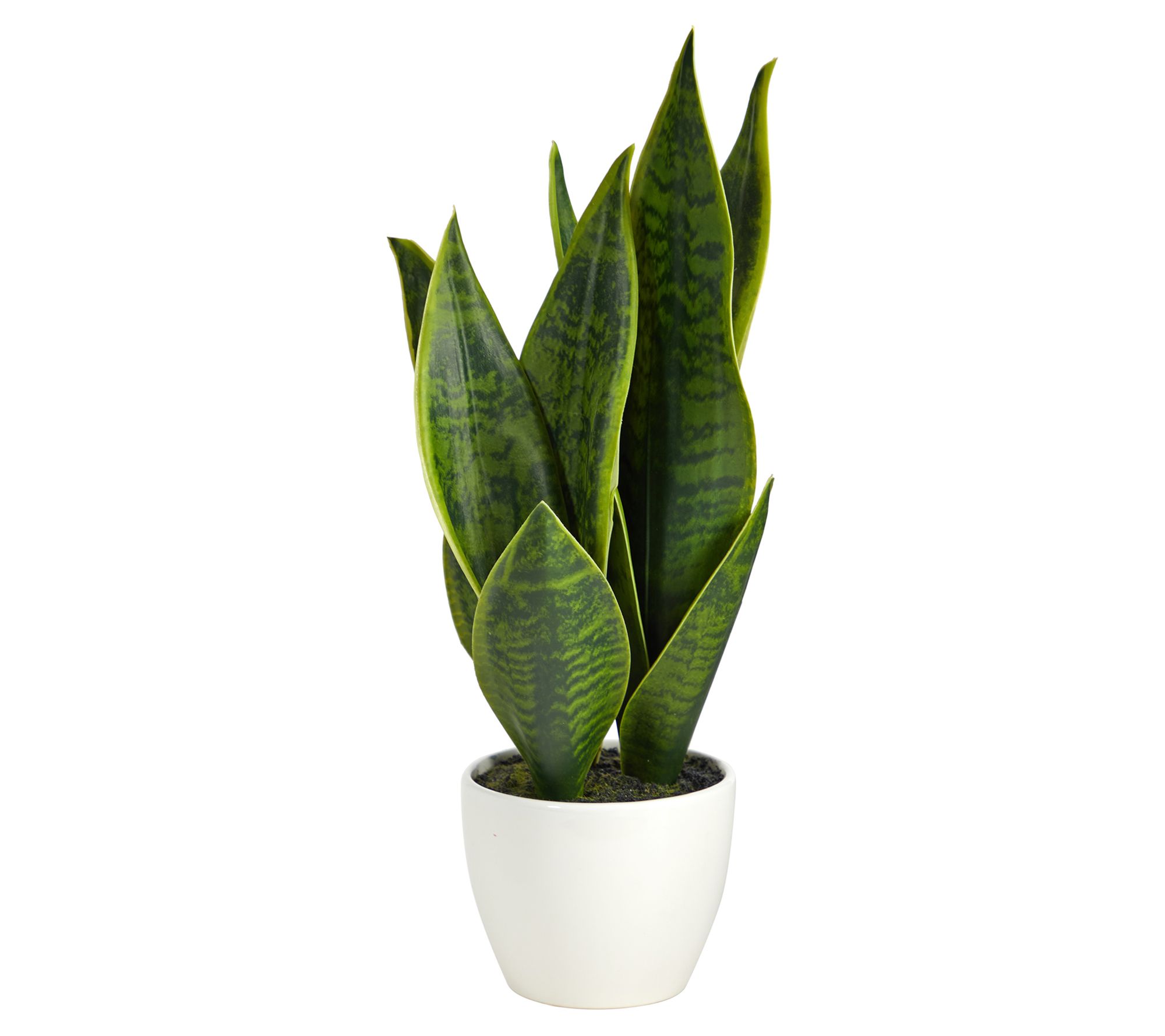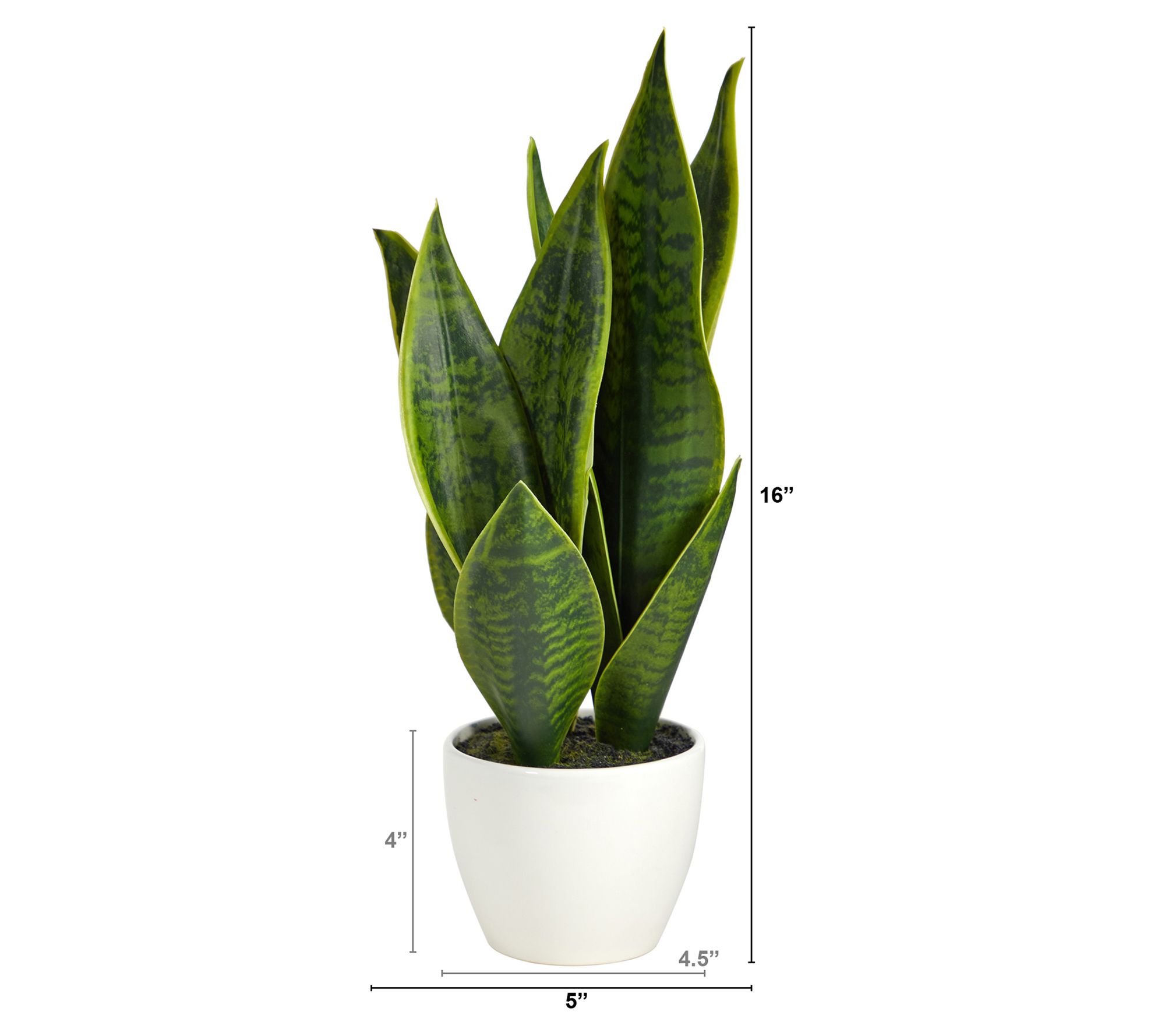 • Includes lifelike Sansevieria plant and white planter
