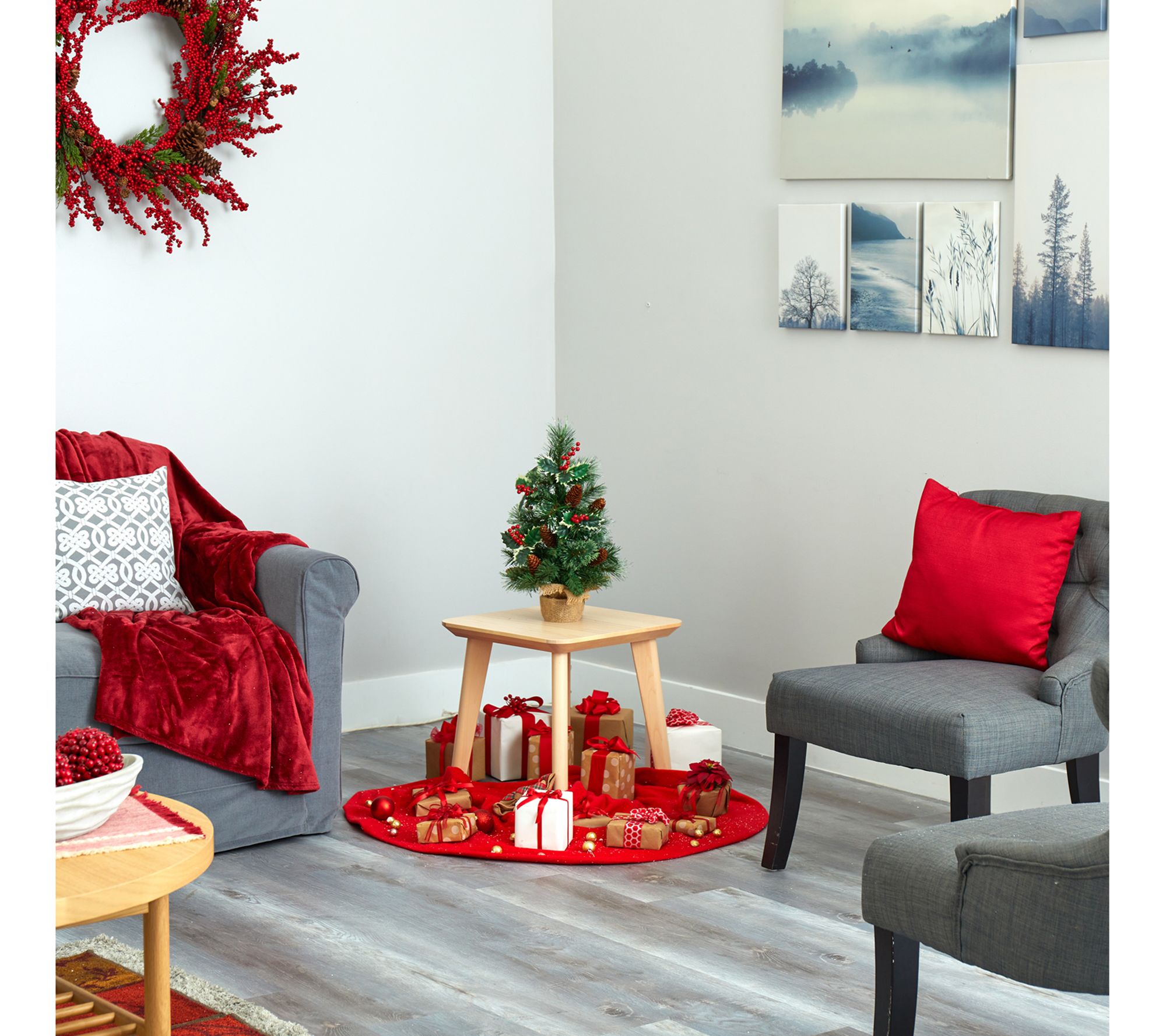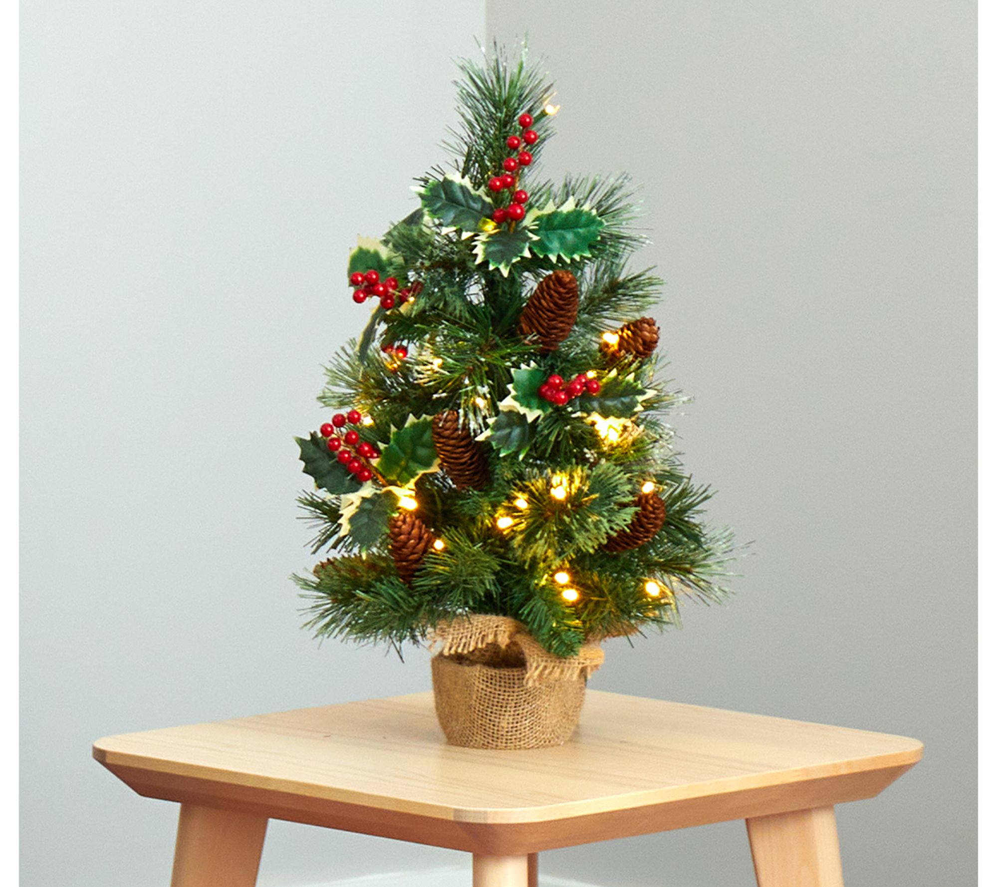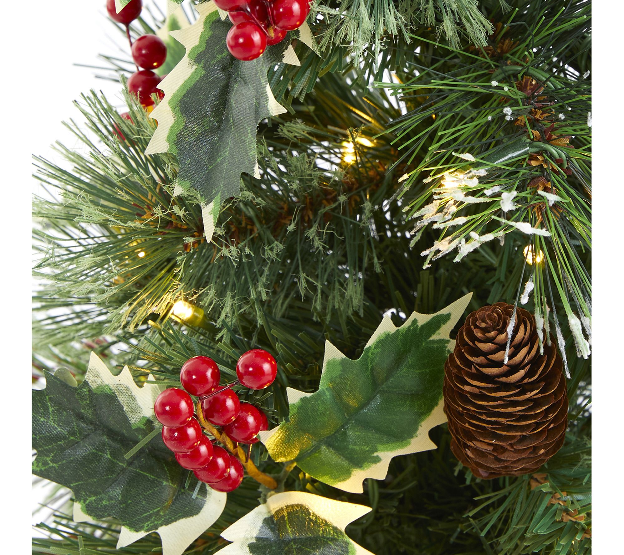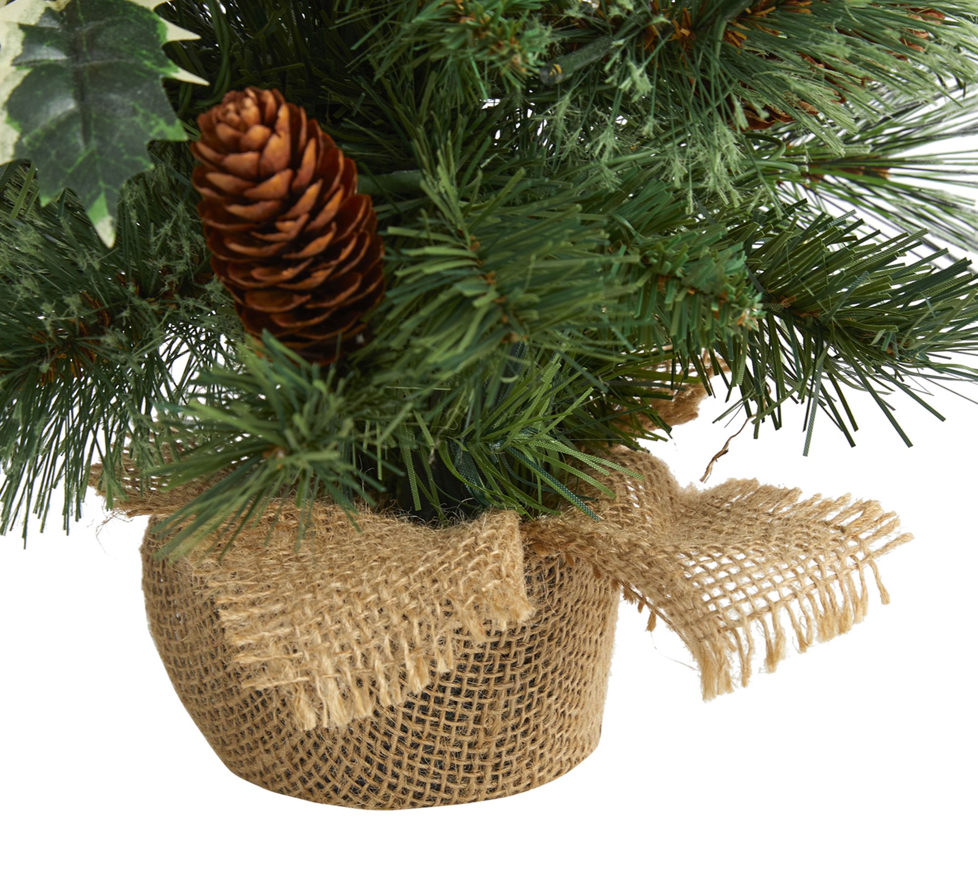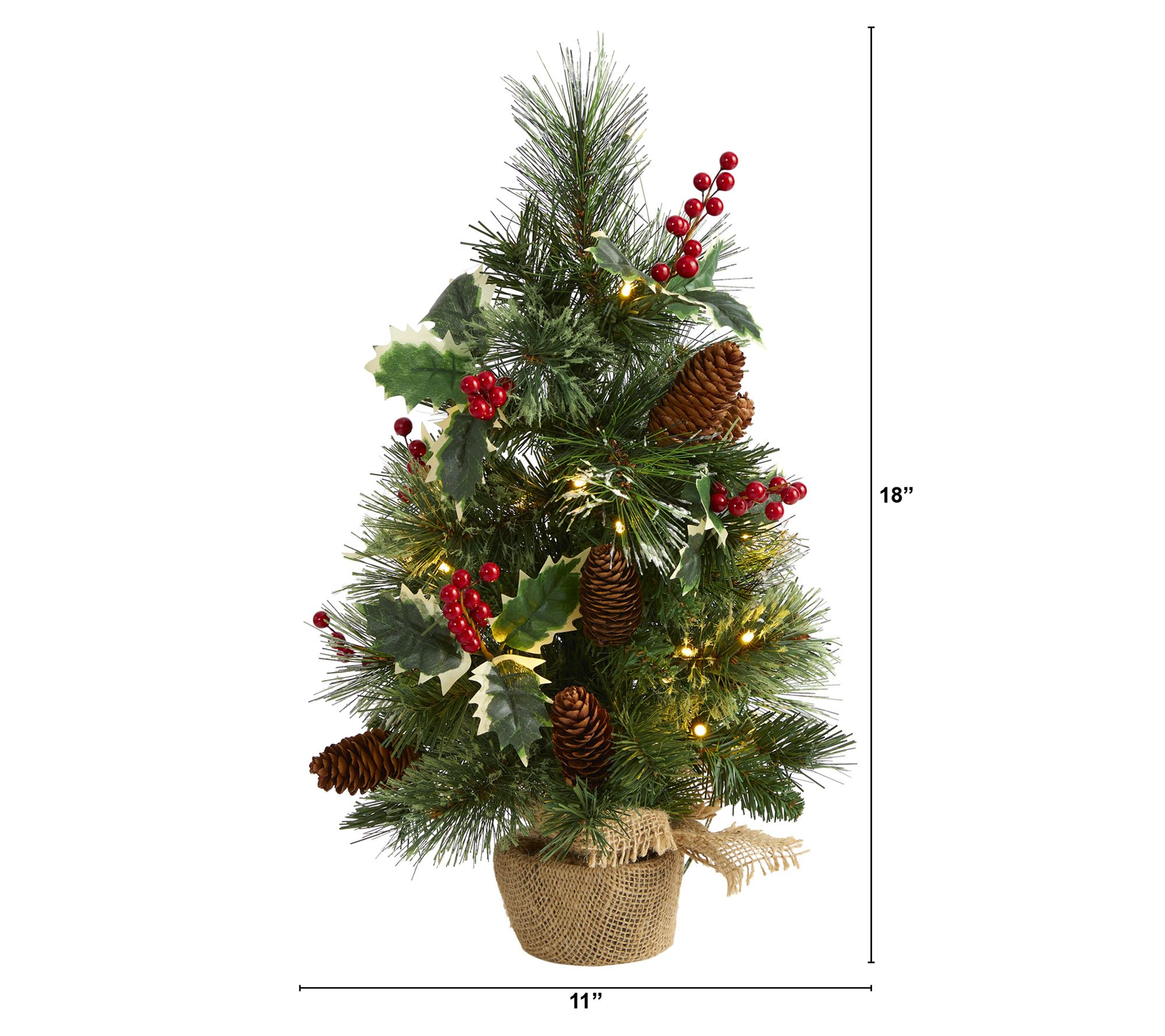 Transform any small space into a festive holiday haven with this faux tree. Pre-strung with clear LED lights, this charming miniature tree features a lush mix of evergreen foliage, accented with realistic pinecones and berries, all dusted with snow for a true winter wonderland vibe. Perfectly housed in a decorative container, it offers a stress-free, maintenance-free way to celebrate the season year after year. From Nearly Natural.