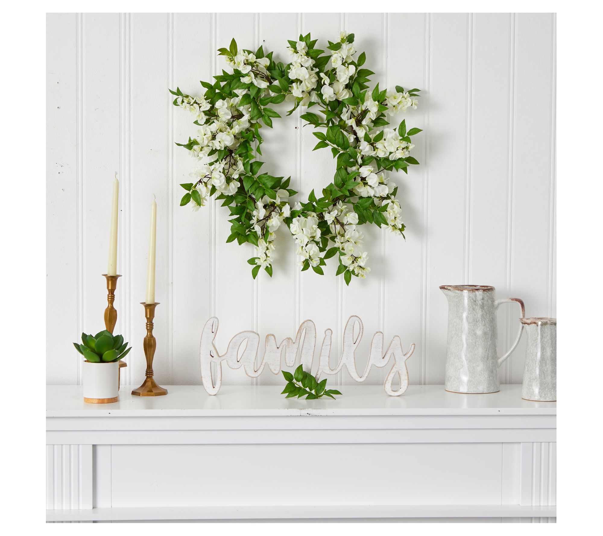 With its lush, lifelike design and simple color palette, this artificial wisteria wreath is a gorgeous accent in any season. From Nearly Natural.