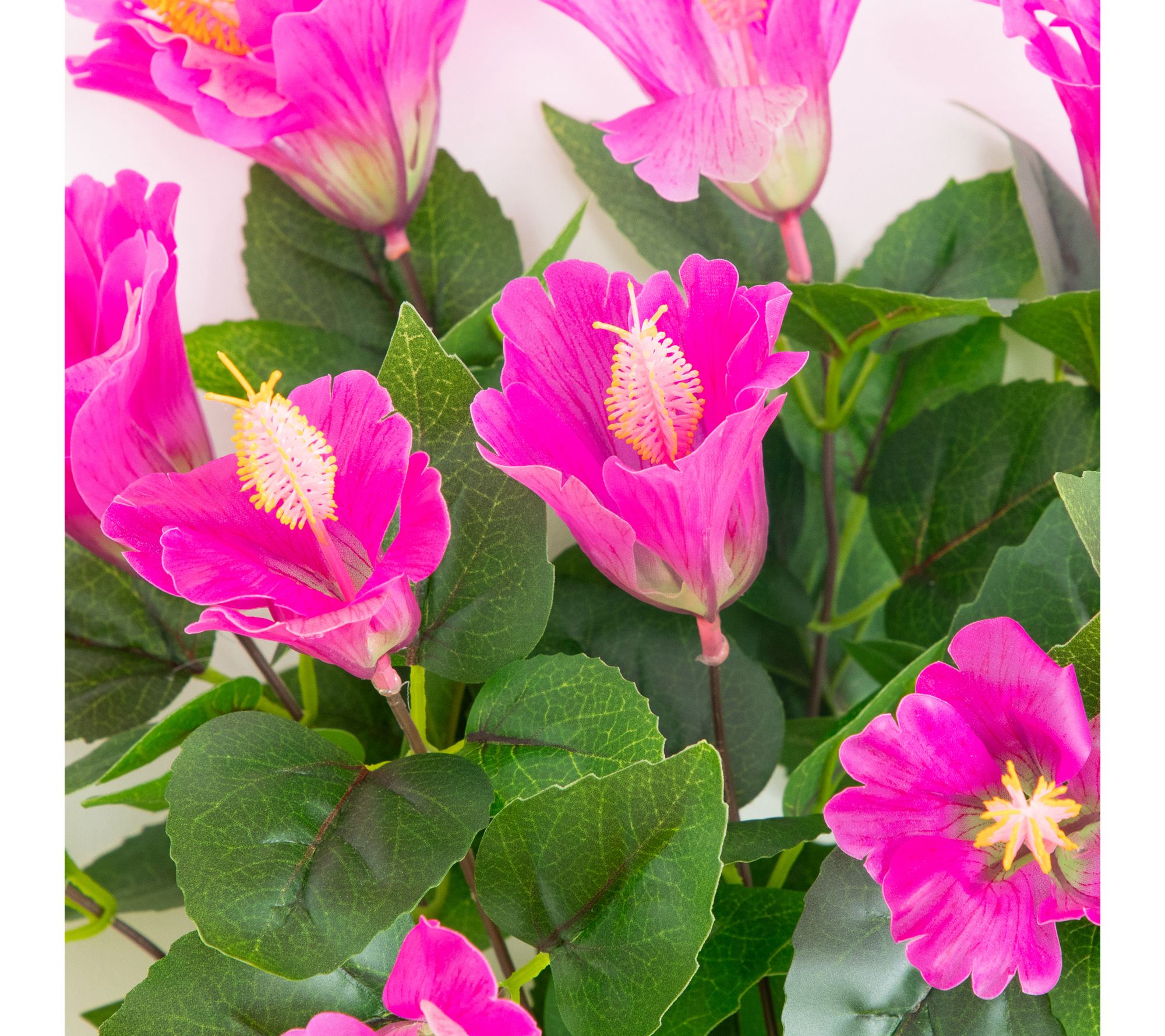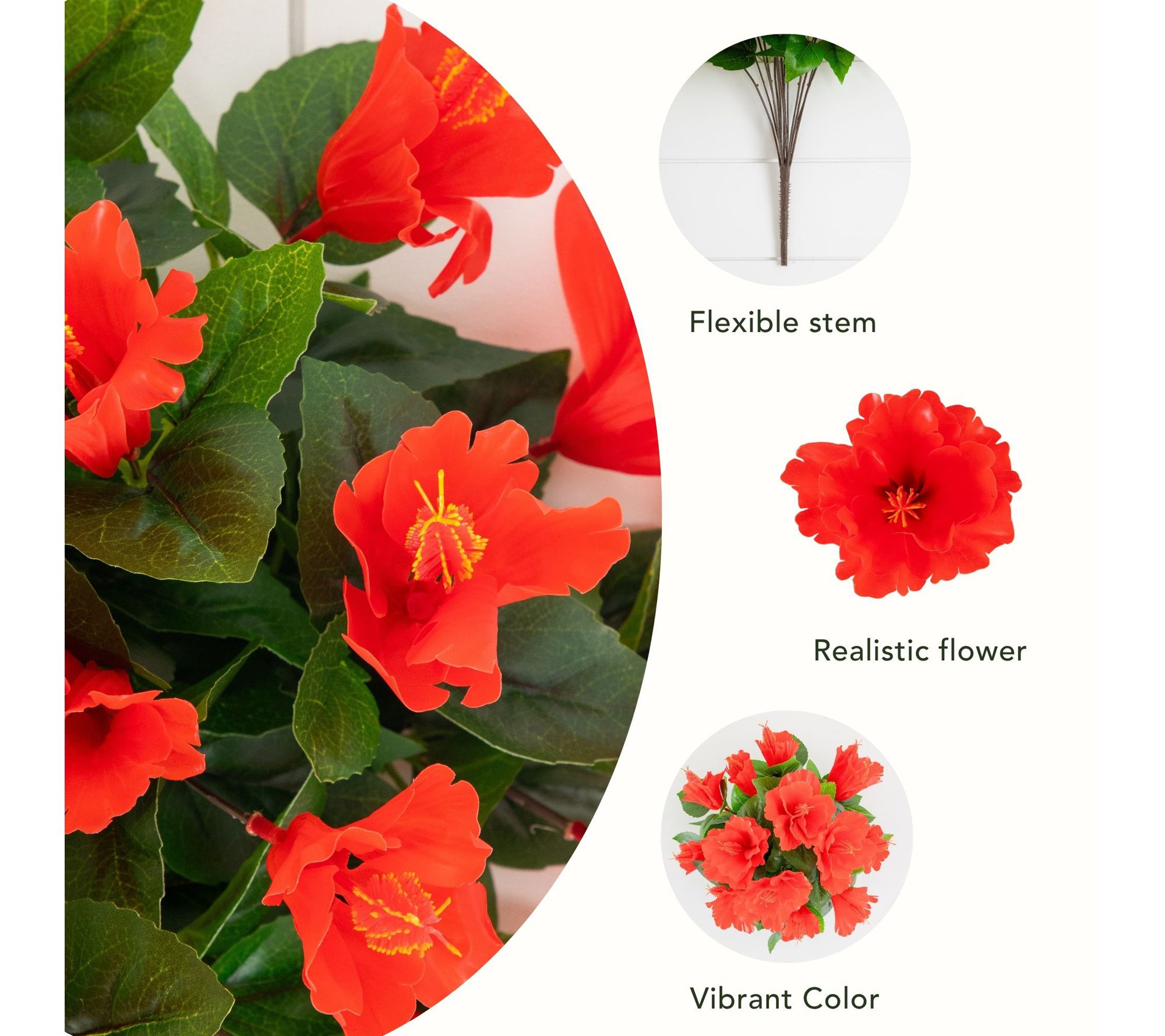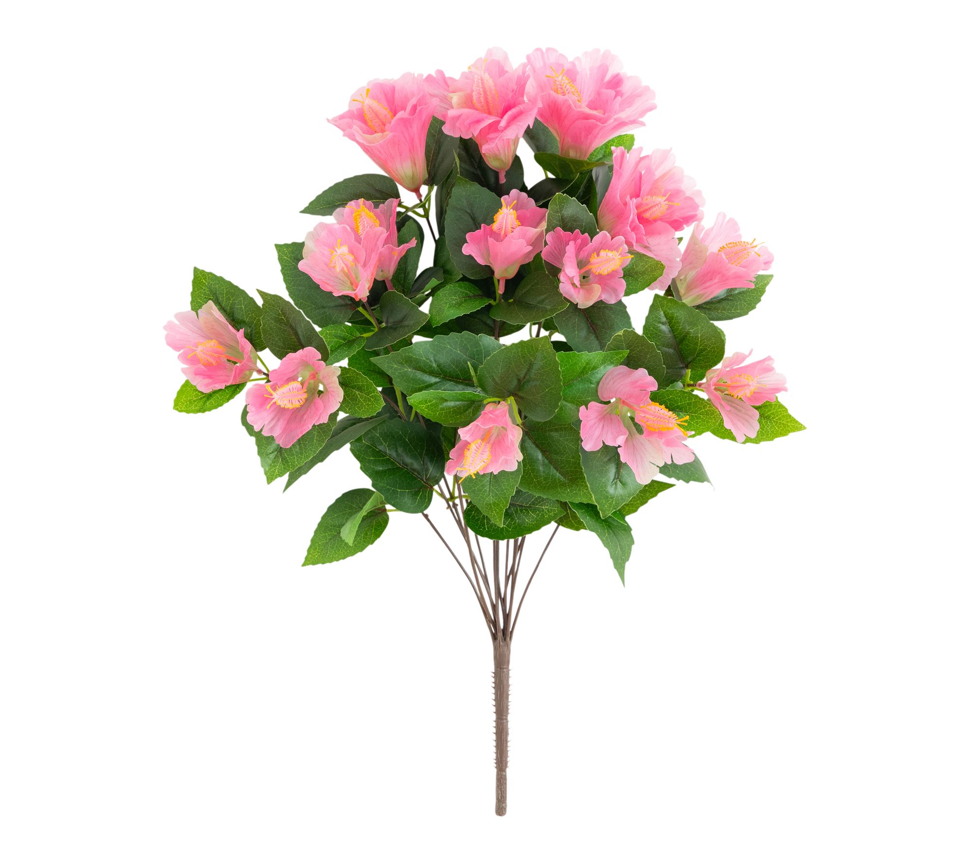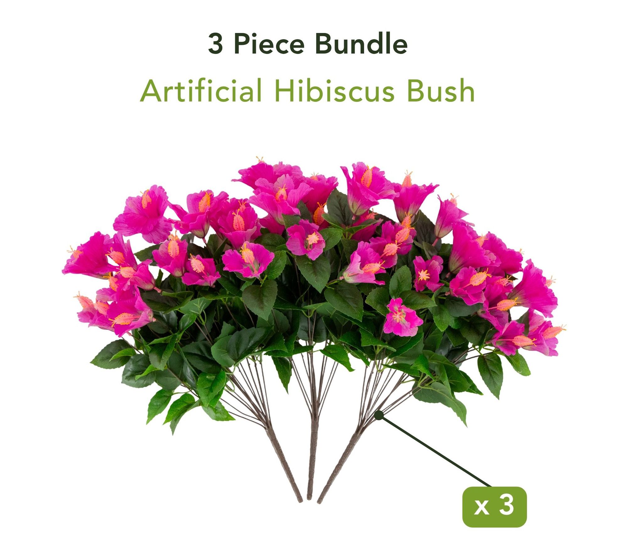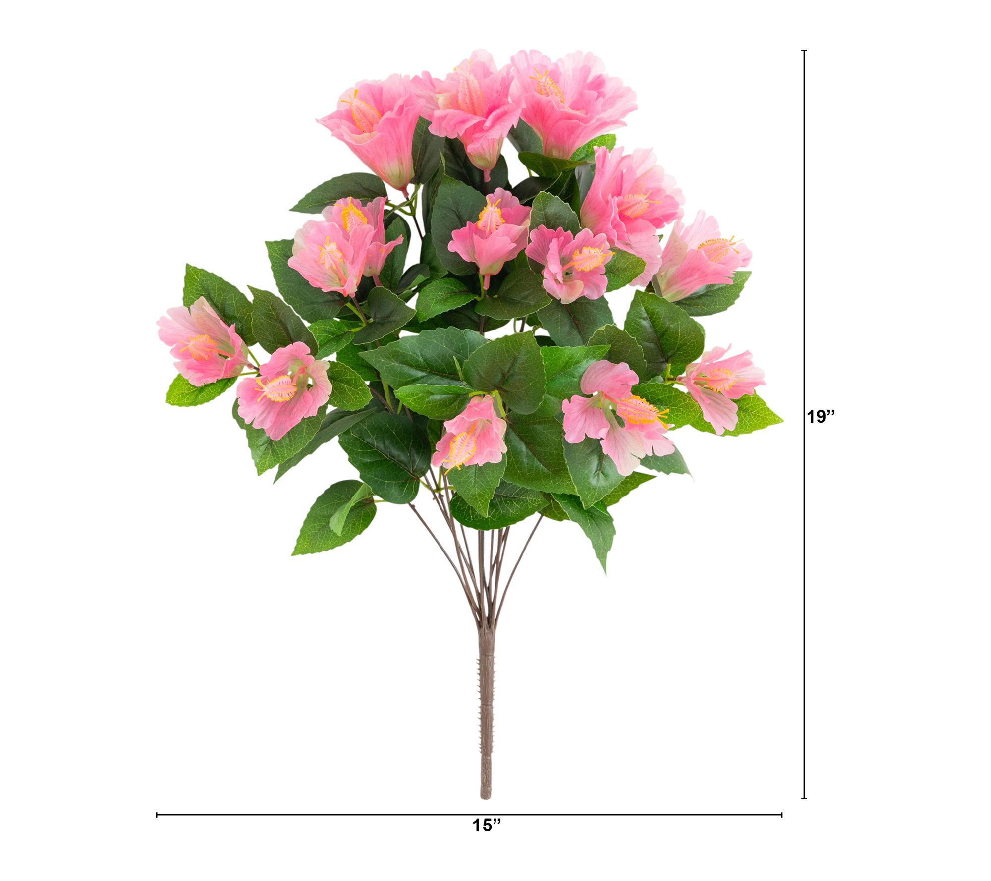 Includes three faux hibiscus stem bunches