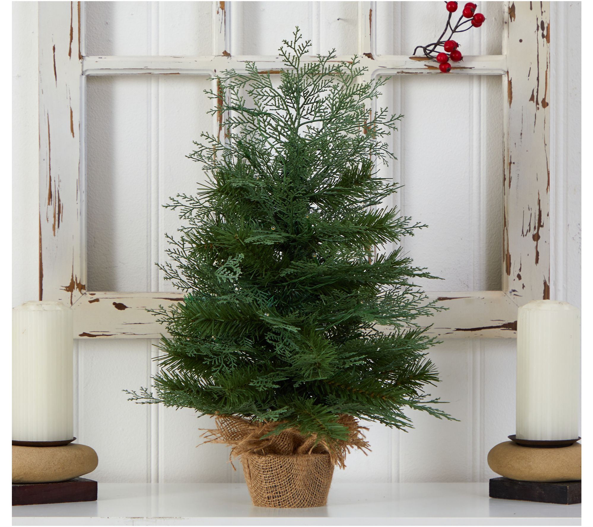 Nearly Natural 2' Christmas Tree in Burlap Basewith 35 Lights