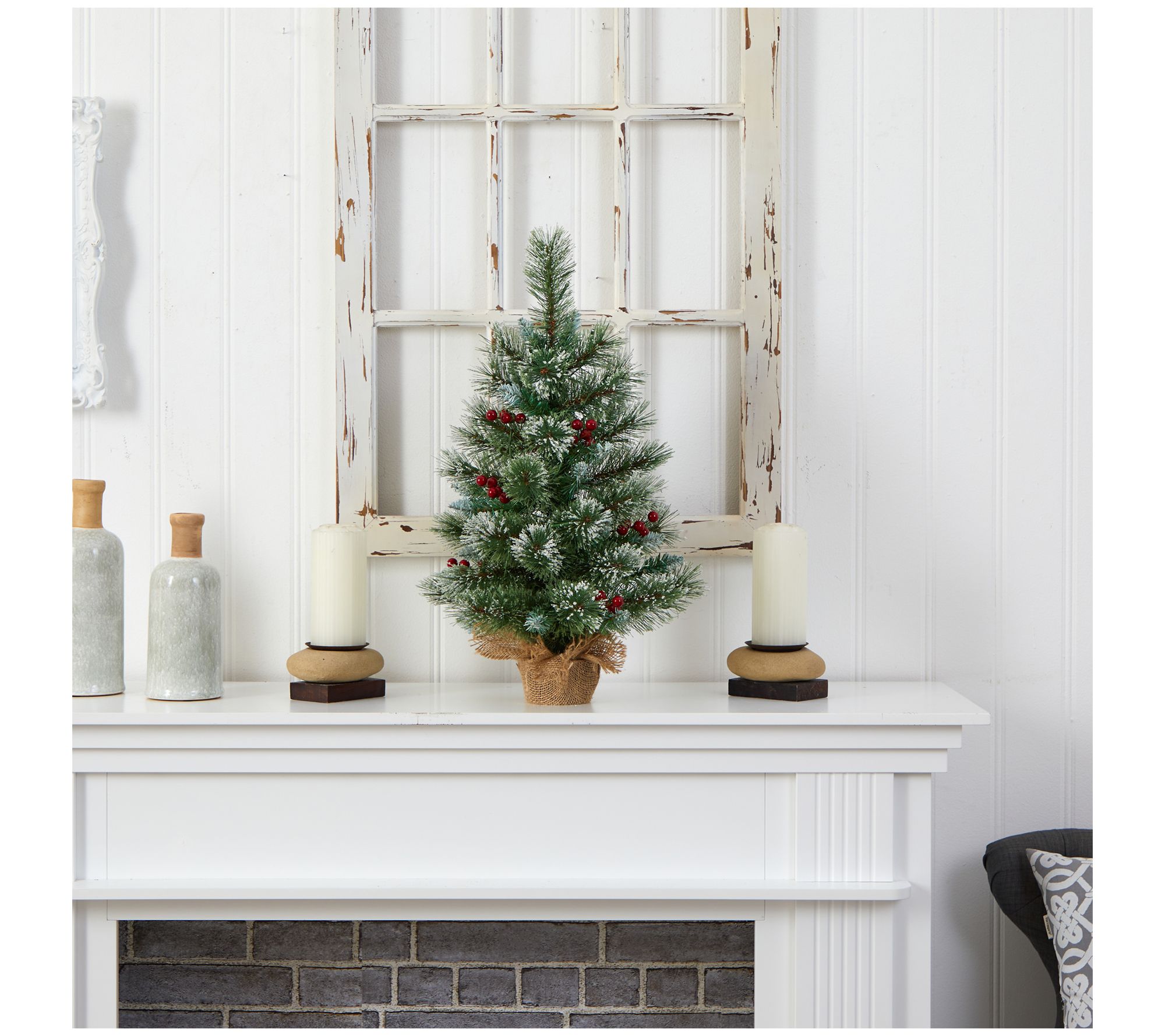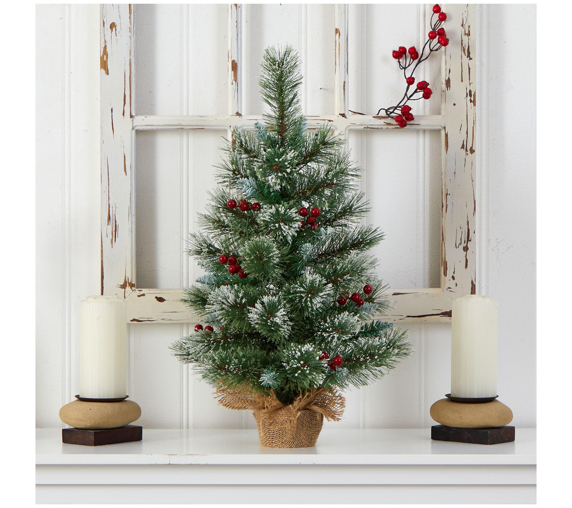 Nearly Natural 2' Snow Tipped Pine and Berry Christmas Tree