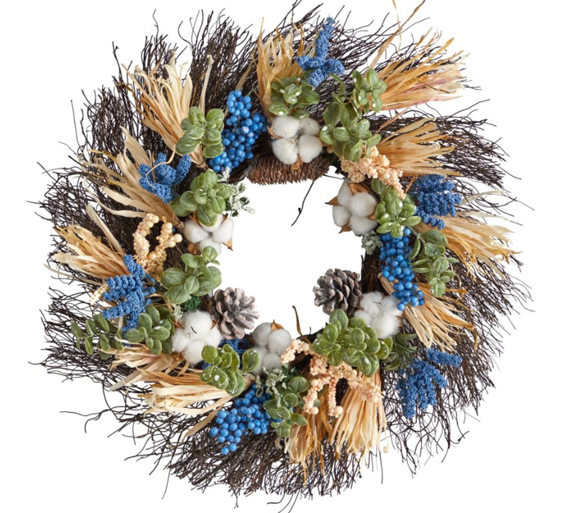 Welcome your guests to your home by hanging up this lush, leafy wreath adorned with detailed berries and pinecones. From Nearly Natural.