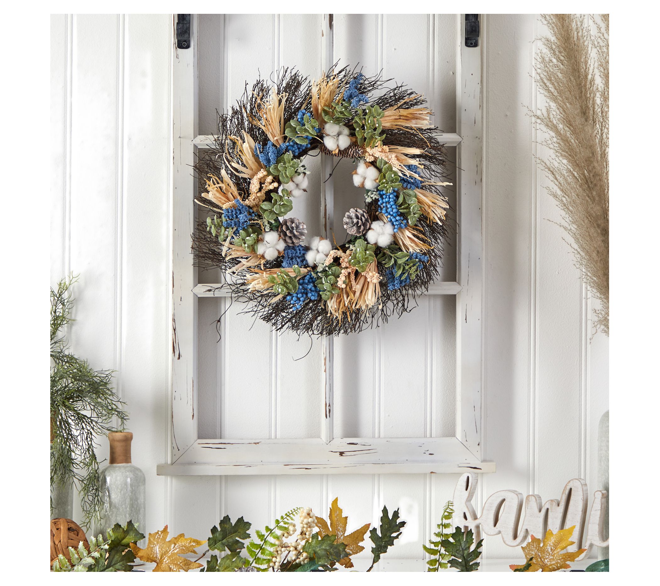 Nearly Natural 22" Eucalyptus, Berries and Pineones Wreath