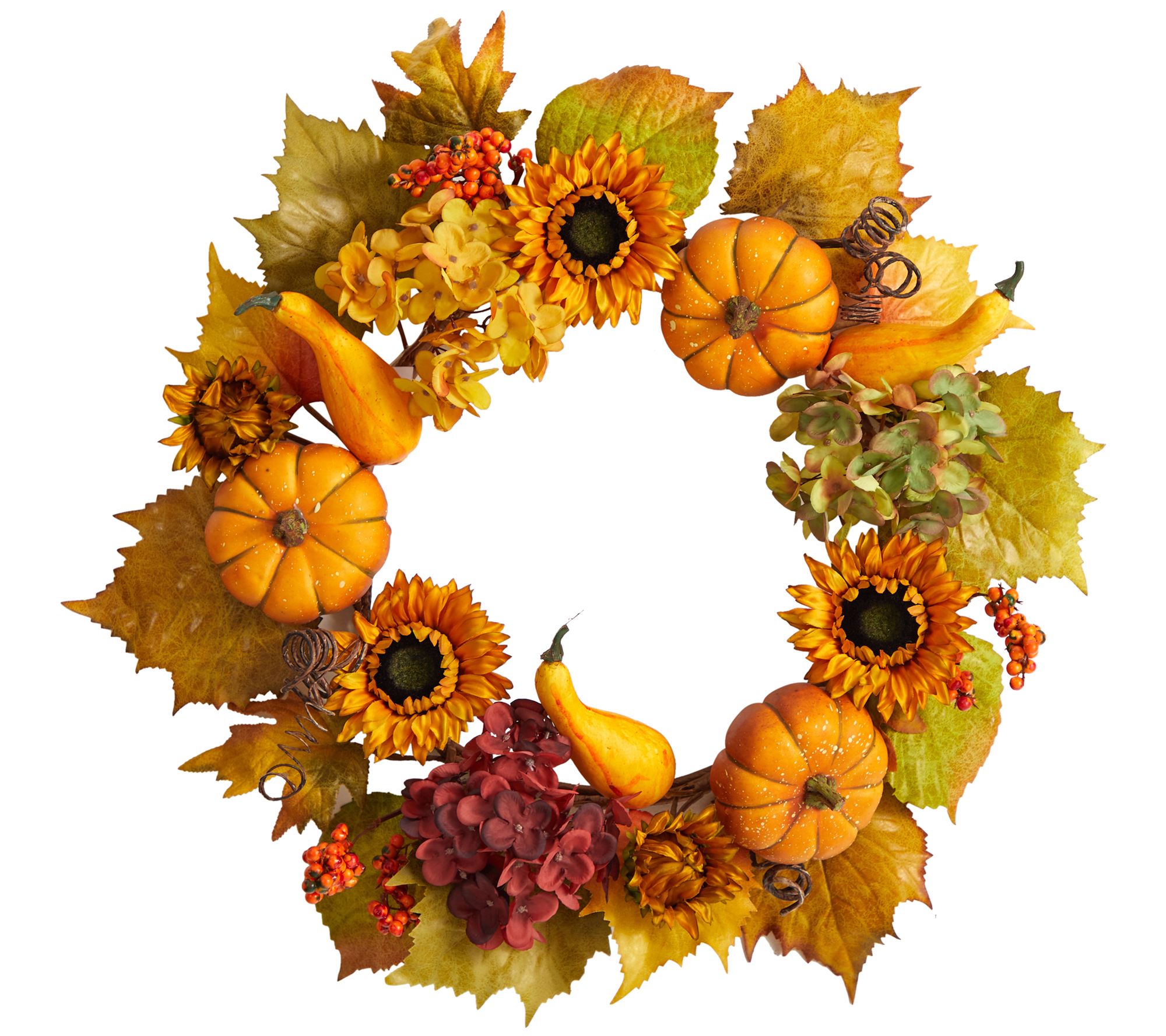 Nearly Natural 22" Hydrangea, Pumpkin & Sunflower Wreath
