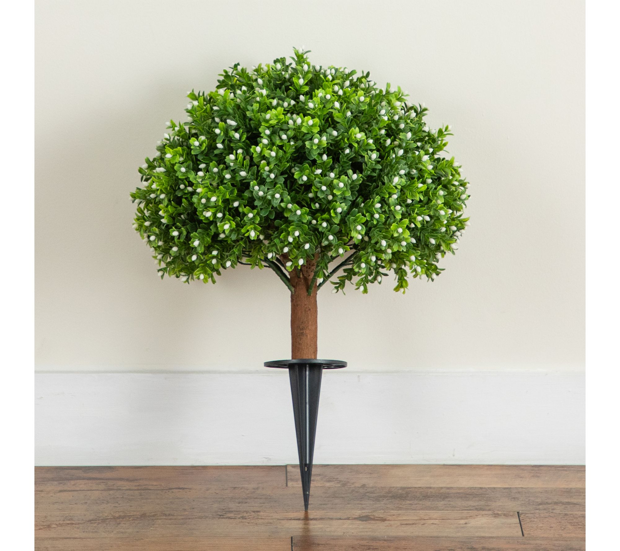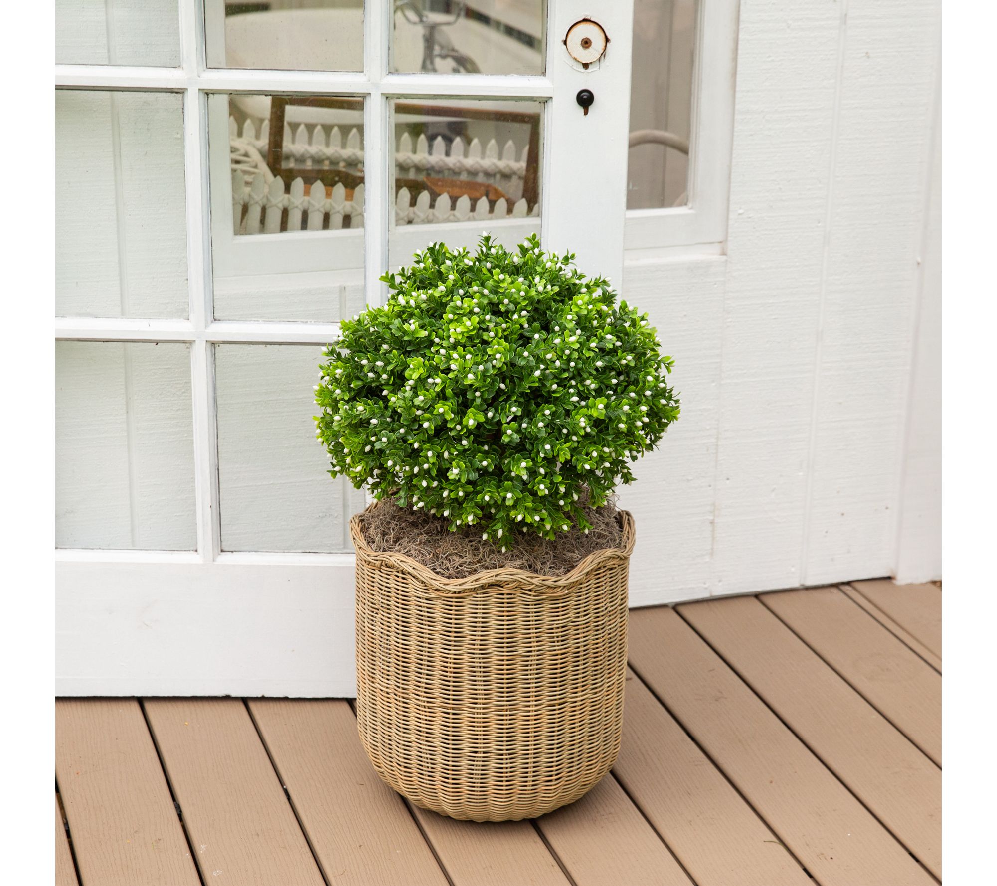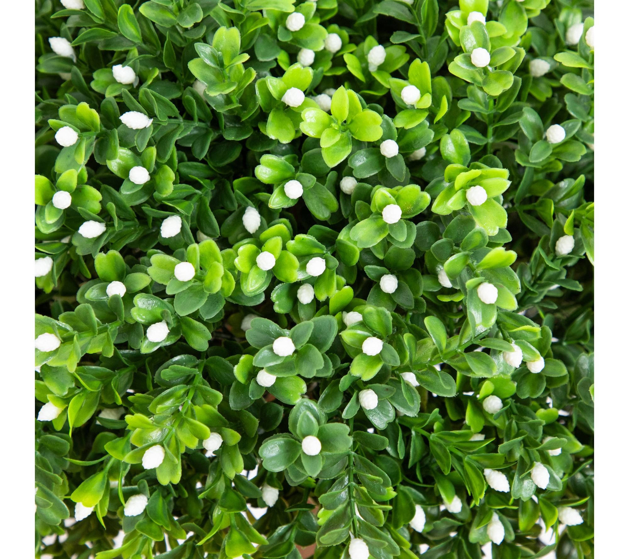 • Lifelike boxwood bush features vibrant foliage and delicate white flowers for a fresh look