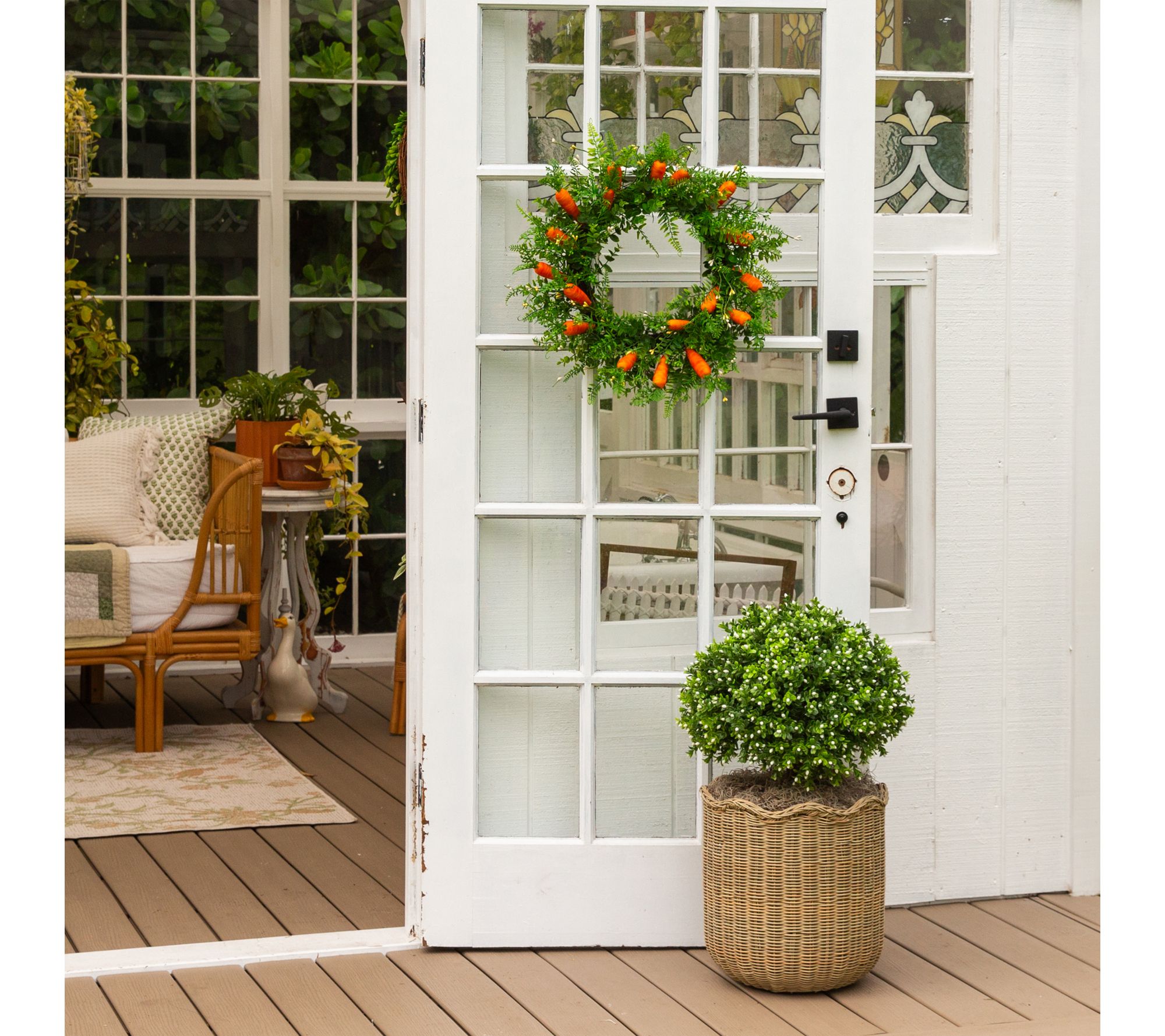 Breathe new life into your outdoor spaces with this lush 23" faux boxwood bush, bursting with vibrant green leaves and charming white blooms. Effortlessly add structure and year-round color to your garden or patio -- no watering or pruning needed. From Nearly Natural.