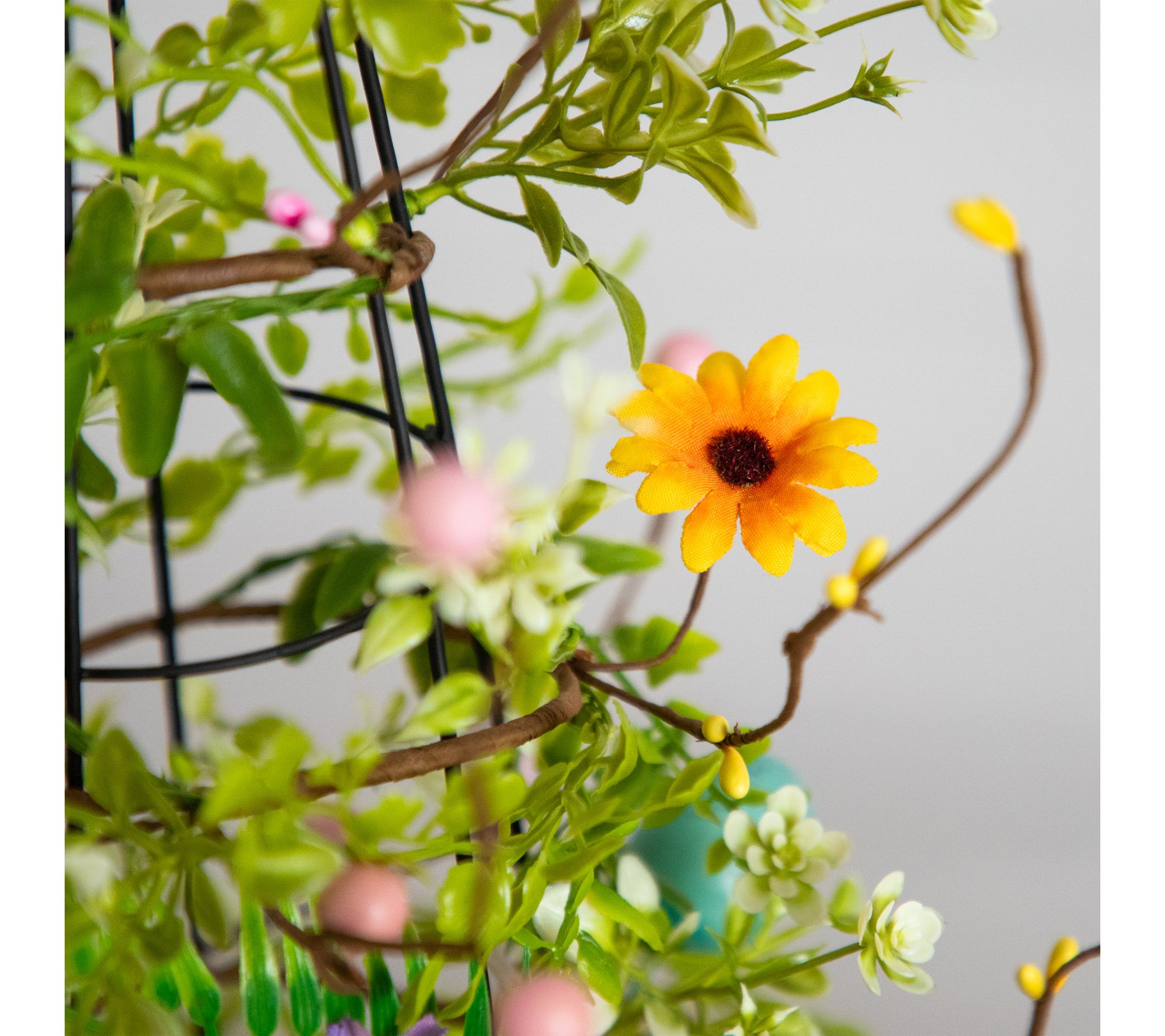 Bring springtime cheer into your home with this delightful Easter eggs cone tree, aglow with 30 warm LED lights nestled among pastel eggs and wildflowers. Whether brightening your entryway or accenting a festive tablescape, this potted tree brings a meadow-fresh vibe and joyful glow to any celebration. From Nearly Natural.