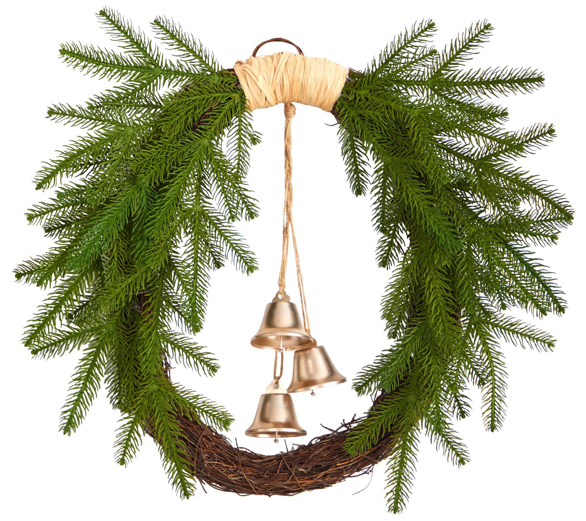 Nearly Natural 24" Holiday Christmas Pine & Bells Wreath