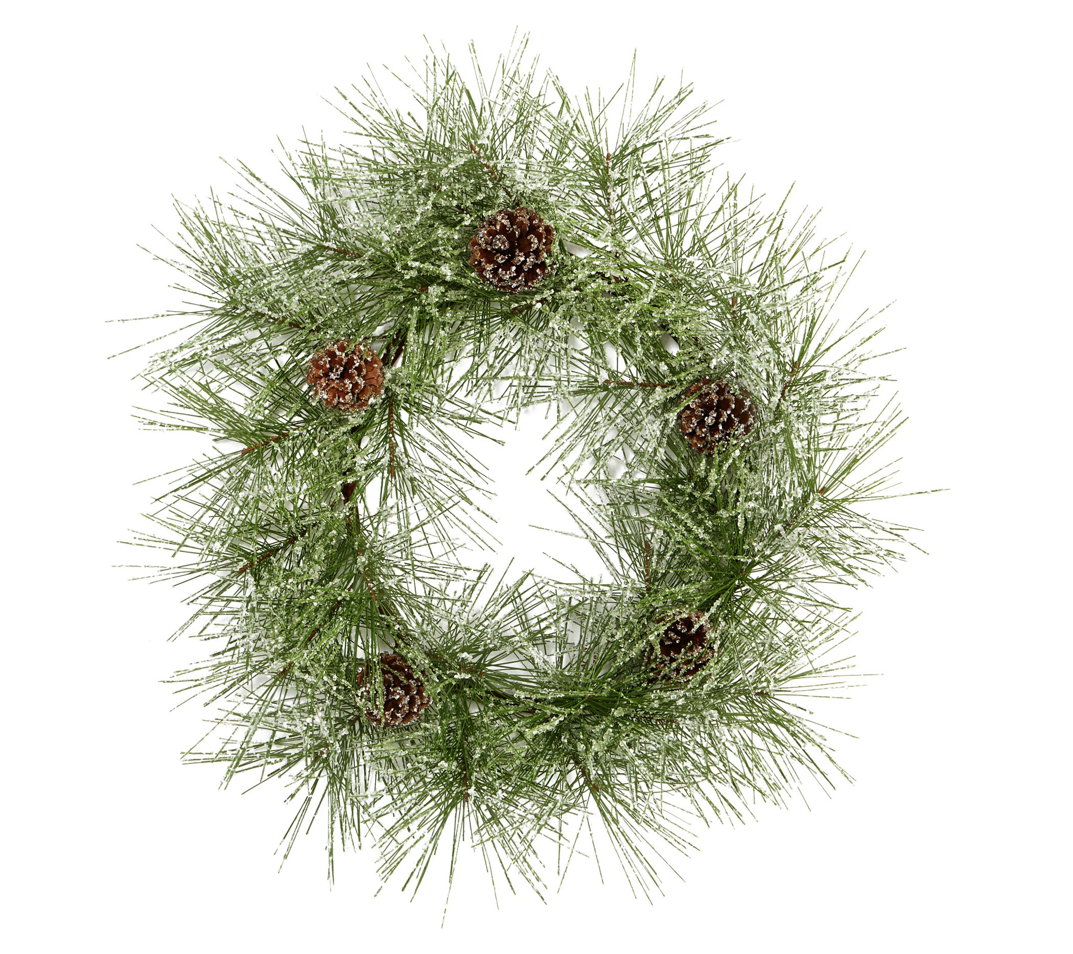 Nearly Natural 24" Iced Pine Wreath w/Pine Cones