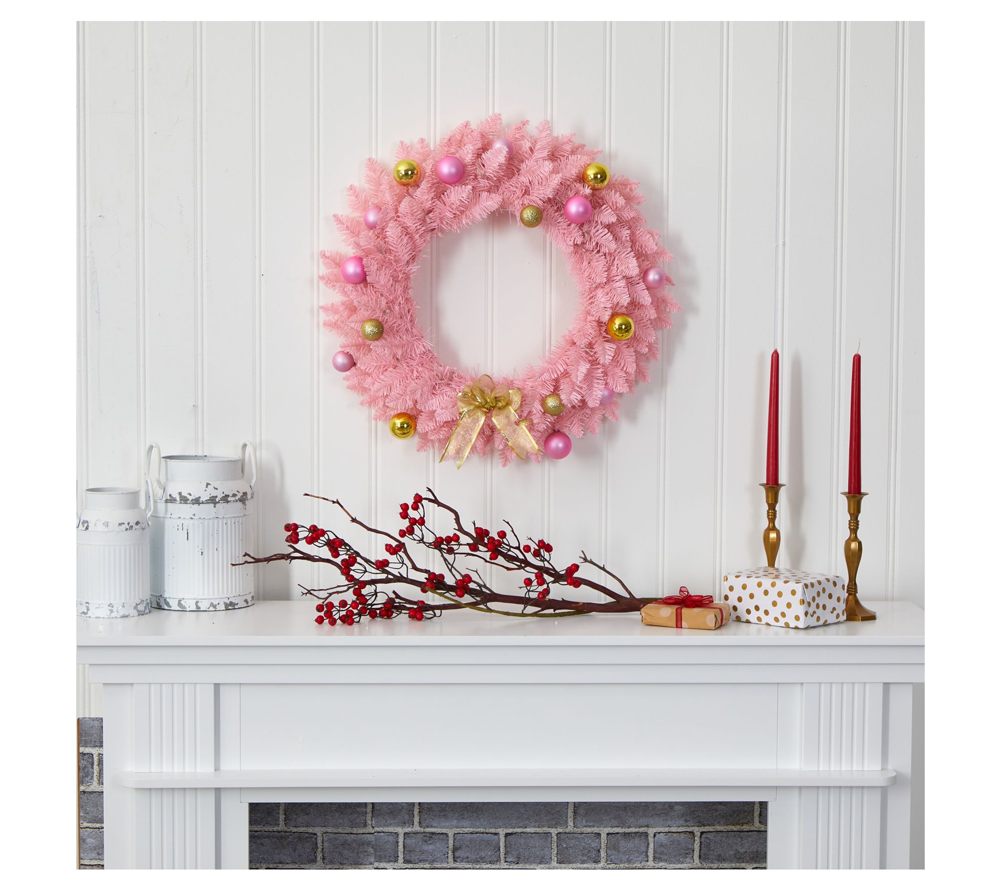 Nearly Natural 24" Pink Christmas Wreath with 35 Lights