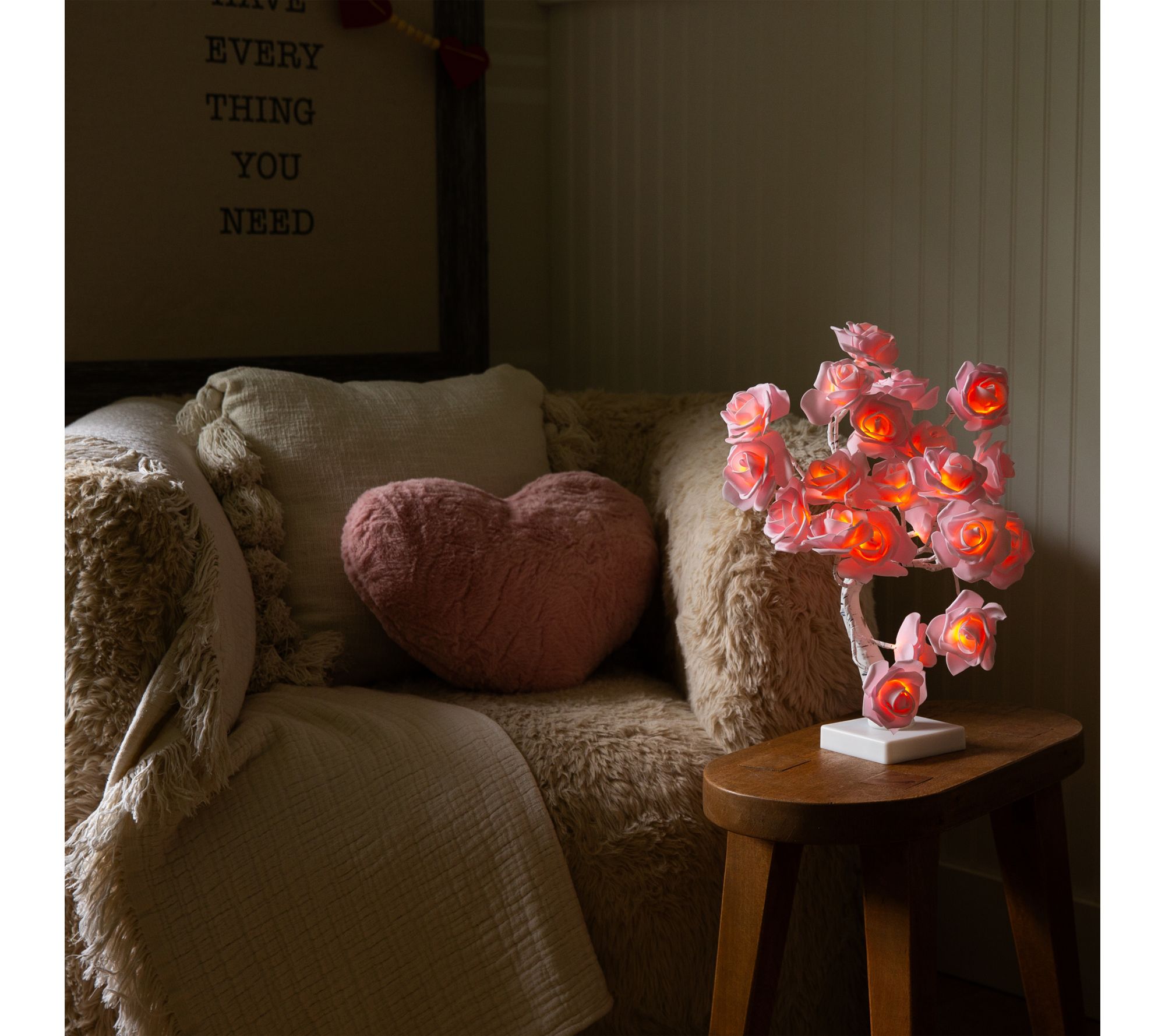 Let the soft glow of rose-shaped LED lights set the scene for a cozy Valentine's Day gathering or a romantic evening in. This lifelike pre-lit twig tree adds charm and warmth to mantels, entryways, or tabletops with its birch-style branches and delicate light. From Nearly Natural.
