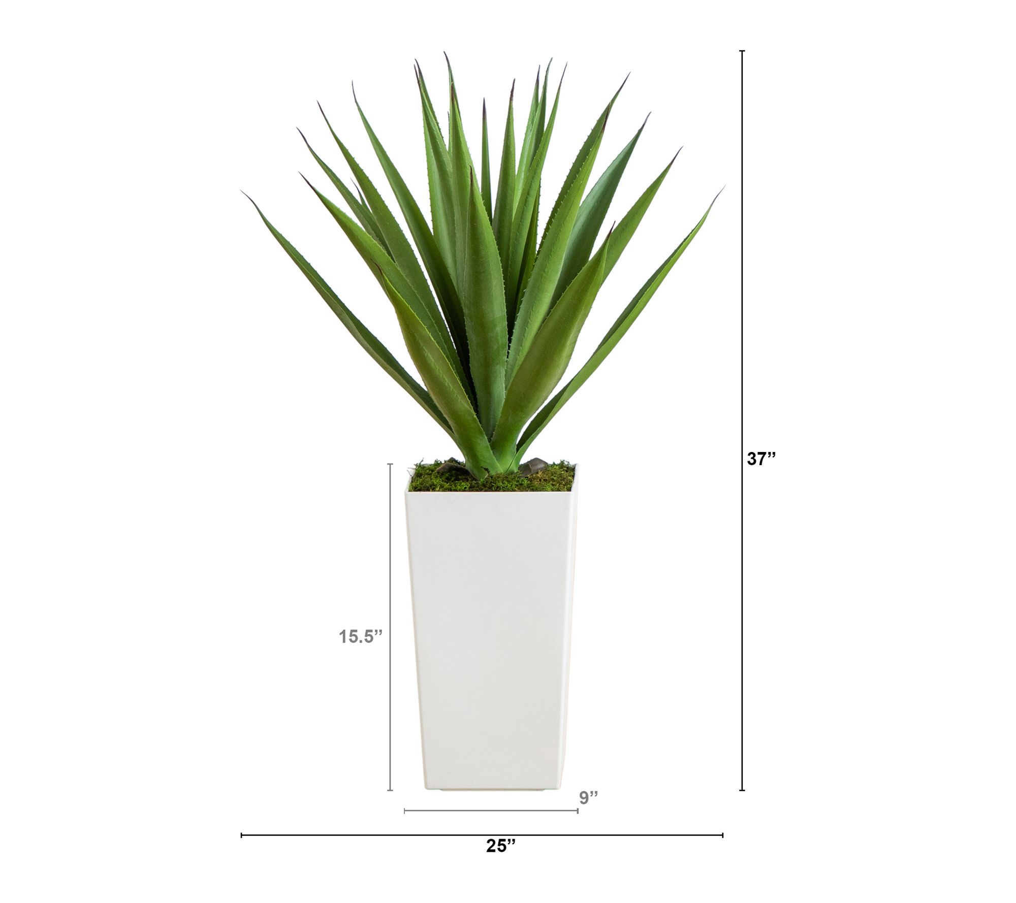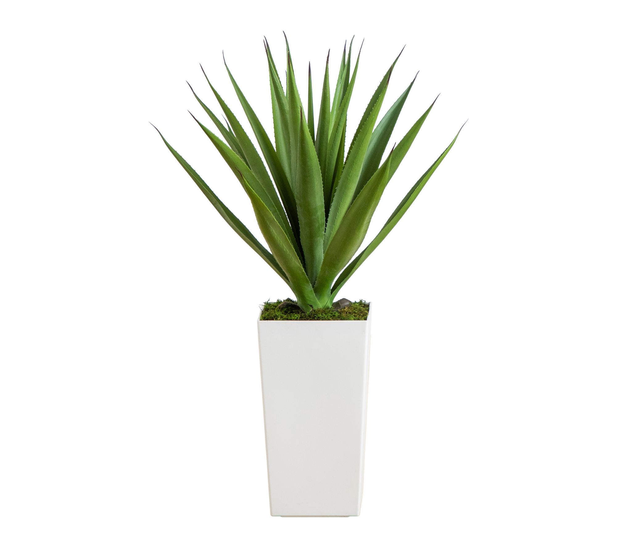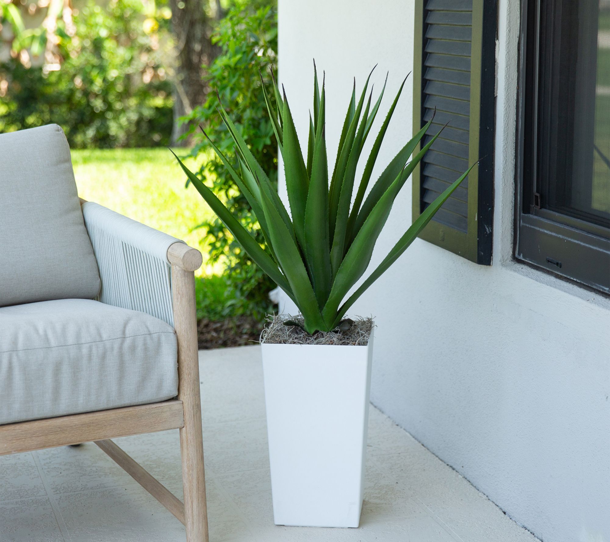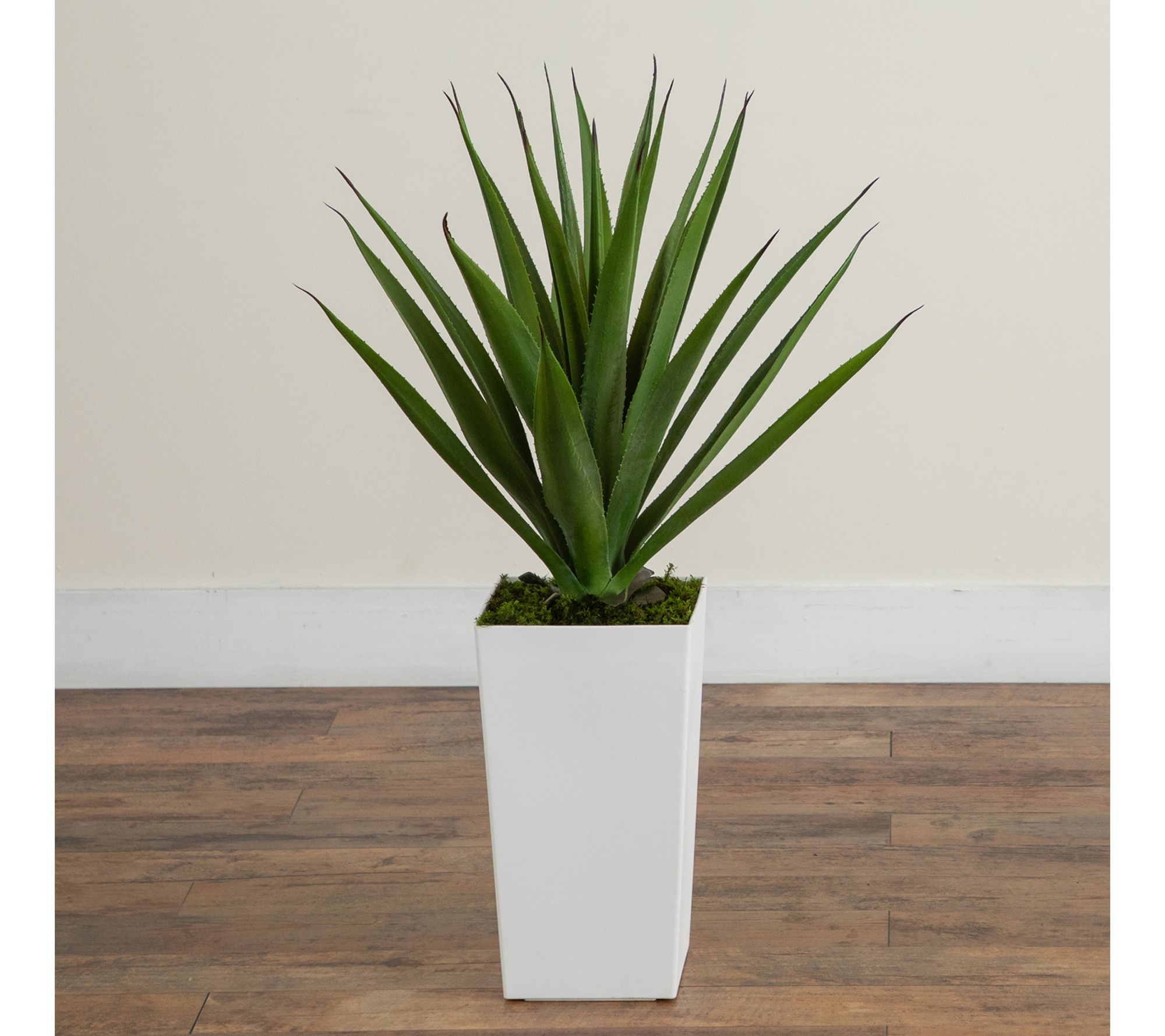 Bring the spirit of the Southwest to your space with this lifelike agave plant, artfully designed with vibrant leaves and housed in a sleek white planter. Whether you're refreshing your patio or adding a touch of sculptural greenery to your entryway, this faux agave offers lasting beauty and zero upkeep -- just shape the branches for your own style. From Nearly Natural.