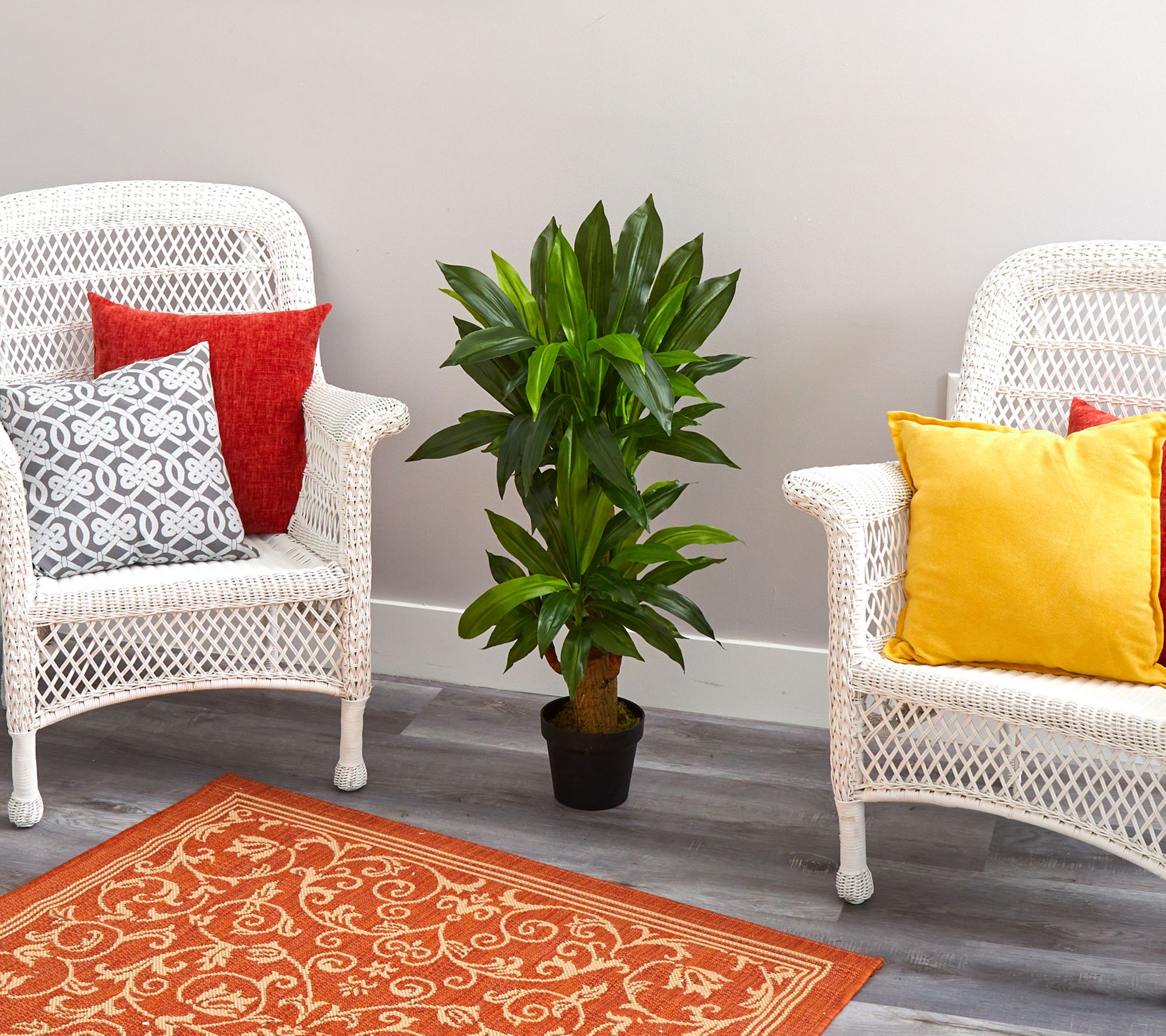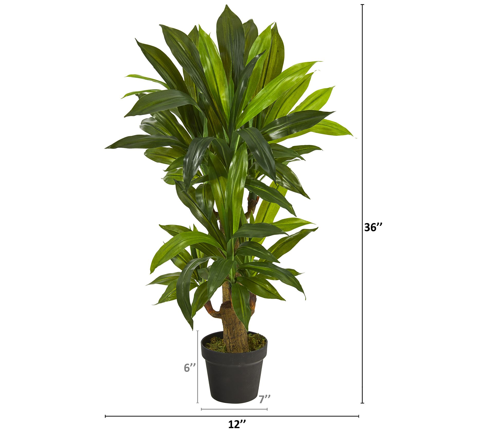 Bring the beauty of nature indoors without the upkeep with this artificial Corn Stalk Dracaena plant. Its lifelike leaves and textured trunks create a realistic and exotic touch to any space, standing 3-feet tall in a nursery planter for easy display. From Nearly Natural.
