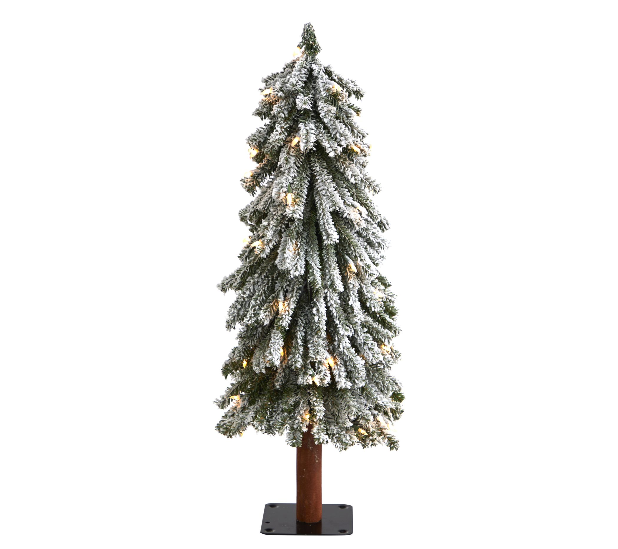 • Prelit 3' flocked faux Grand Alpine tree with metal stand