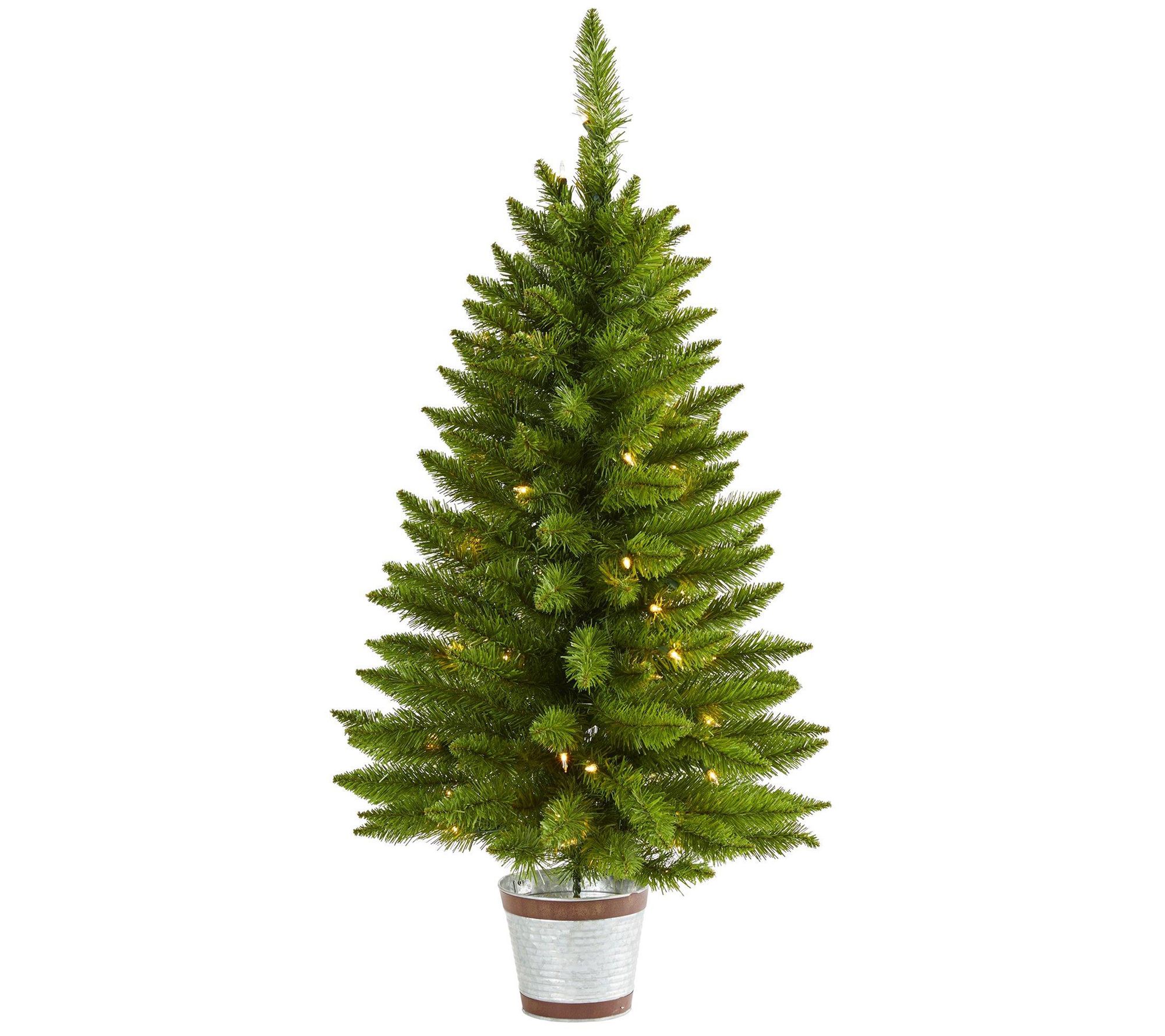 A compact faux tree that offers big style, the Providence pine features realistic branches accented by warm white lights, and it's tucked neatly into a metal pot that brings on the rustic charm. From Nearly Natural.