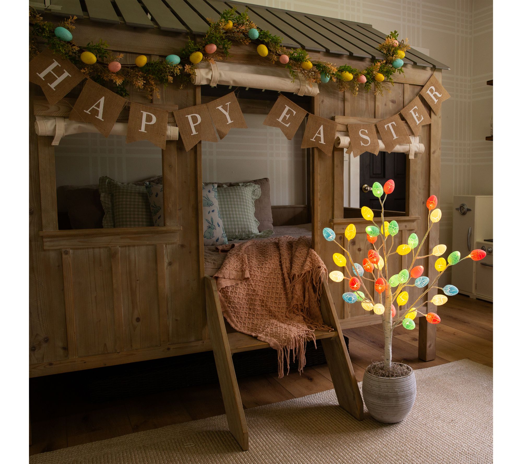 Add a whimsical twist to your seasonal decor with this pre-lit twig tree, featuring pastel egg-shaped LED lights that bring a gentle glow to any space. Whether brightening the entryway for Easter brunch or adding a festive flair to your kitchen counter, its playful design and woodsy inspiration invite smiles all spring long. From Nearly Natural.