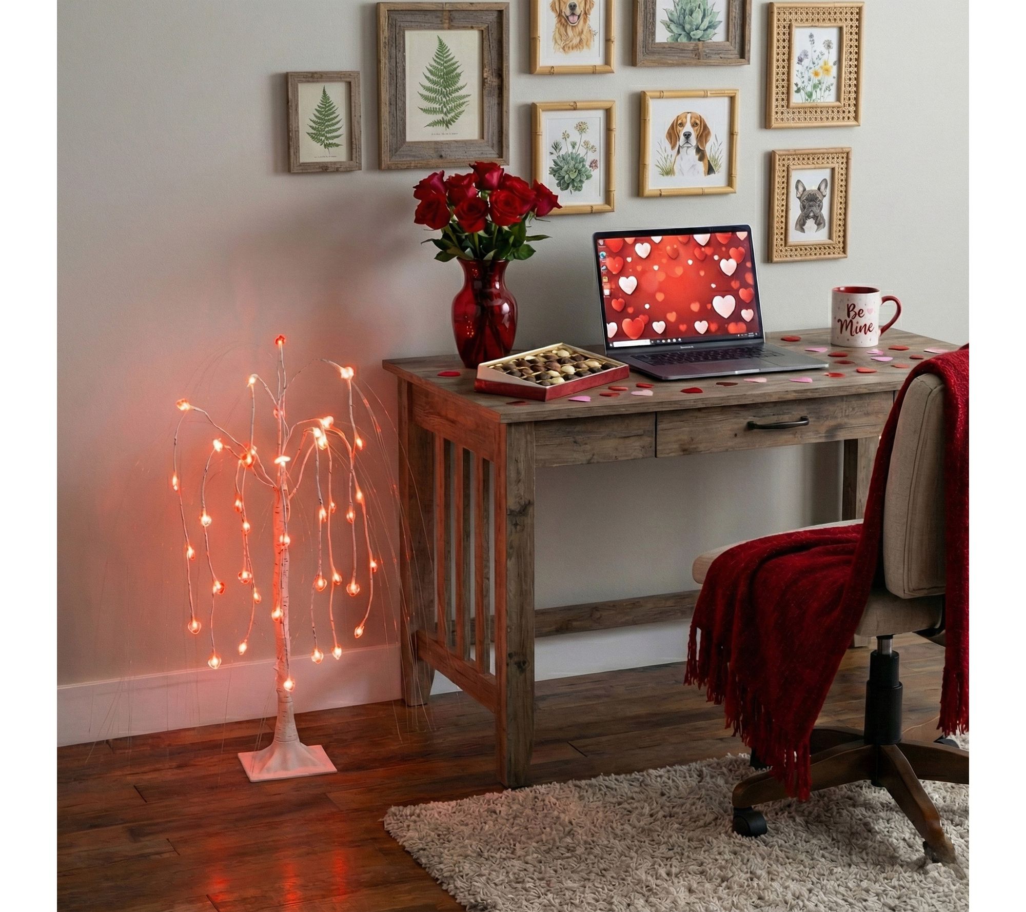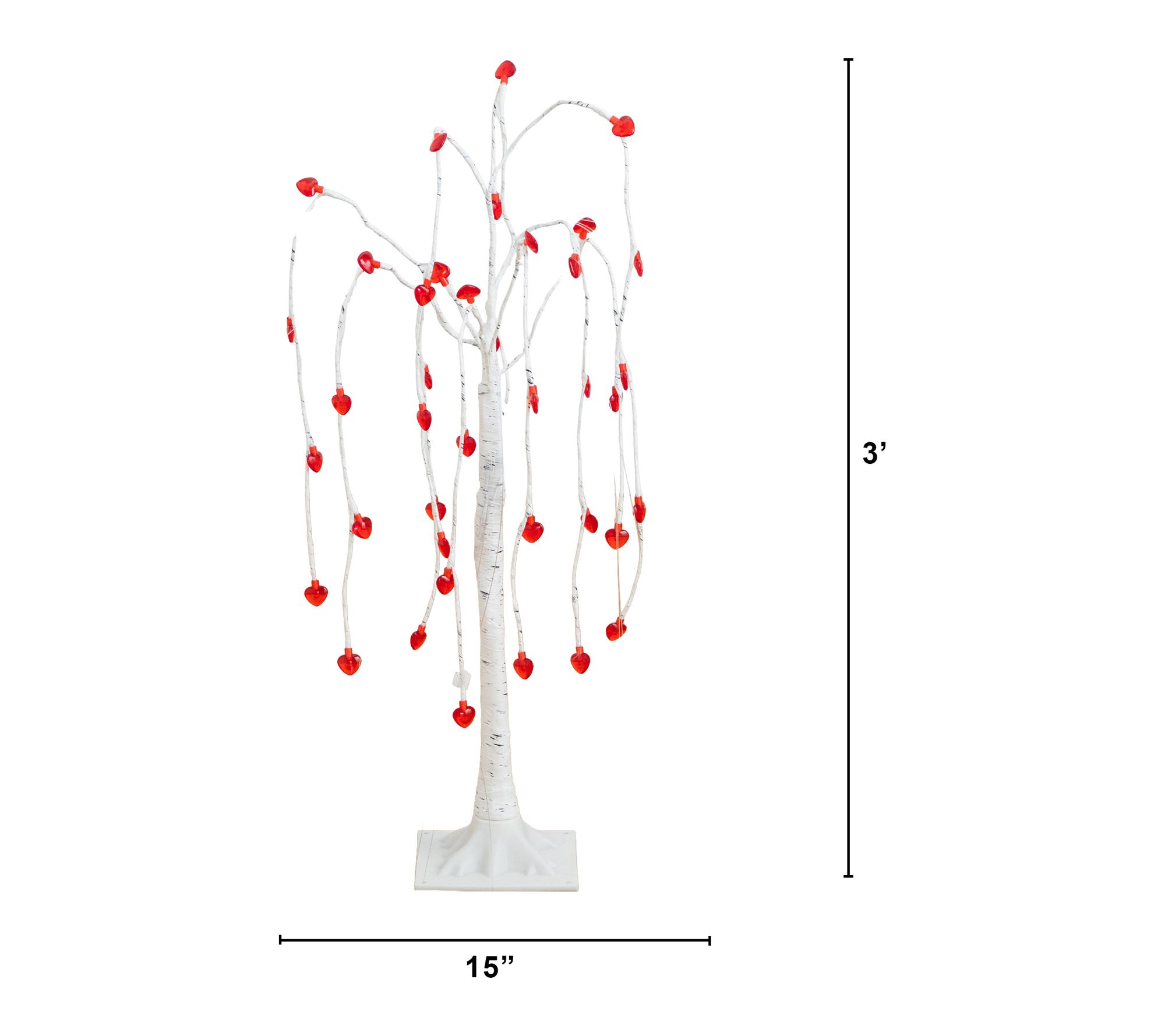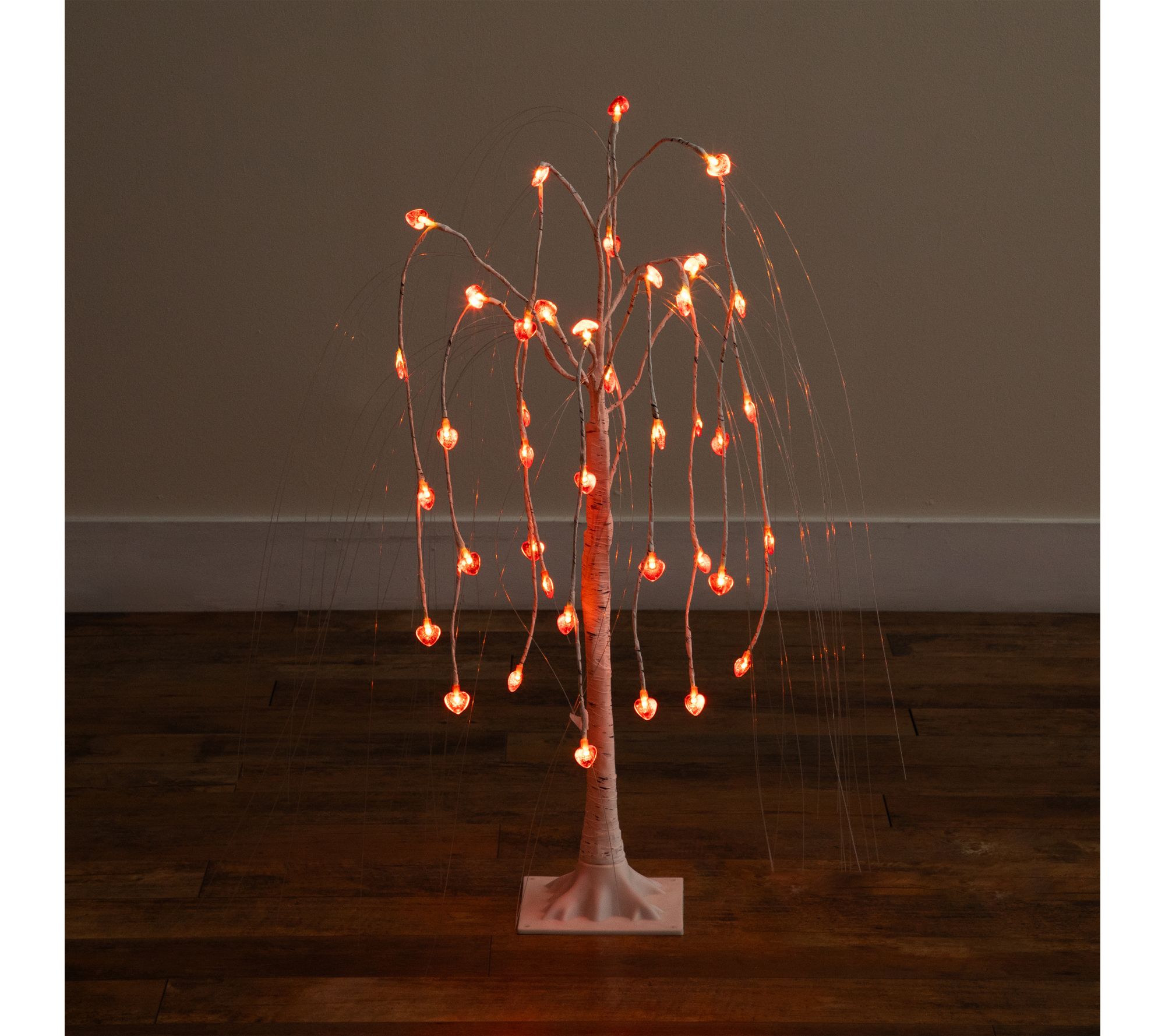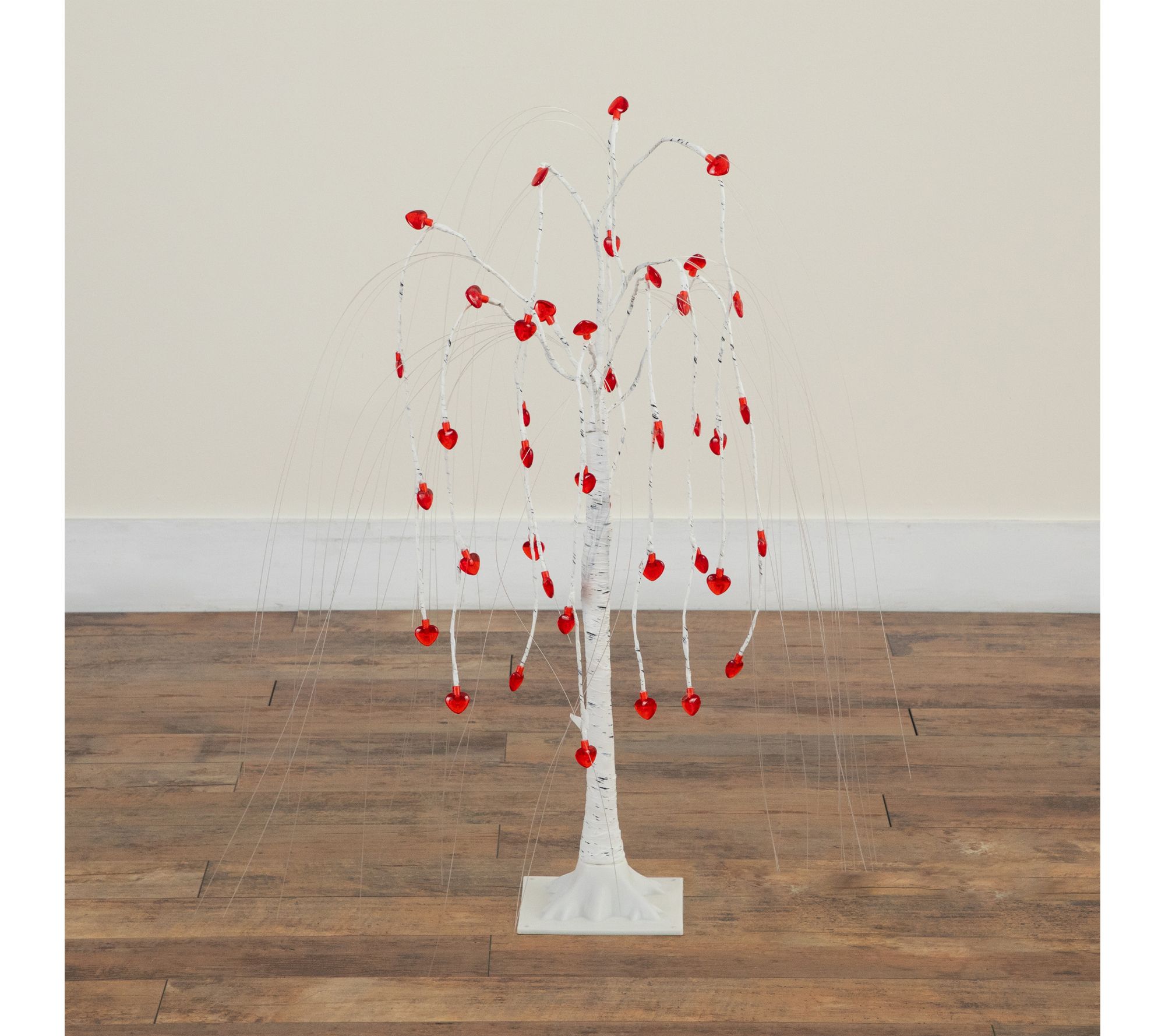 Set the mood for celebration or romance with this pre-lit willow tree, adorned with glowing heart-shaped LED lights that gently cascade from willow-like branches. Whether displayed on a tabletop or in an entryway, the warm illumination and contemporary white birch-style trunk bring an inviting sense of love to your home -- just plug in and let the magic begin. From Nearly Natural.