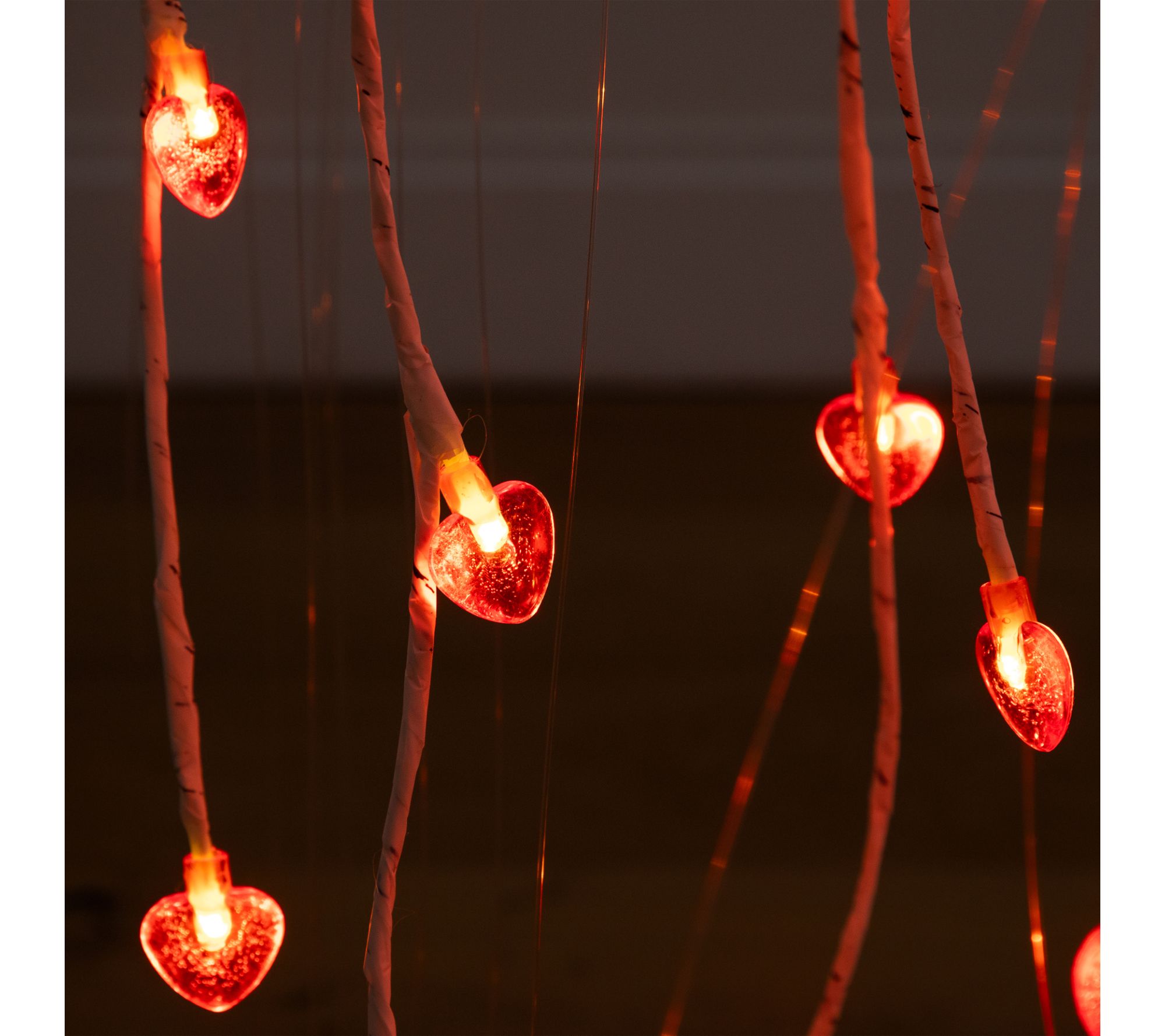 Features willow-like branches with soft, heart-shaped LED lights for a romantic touch