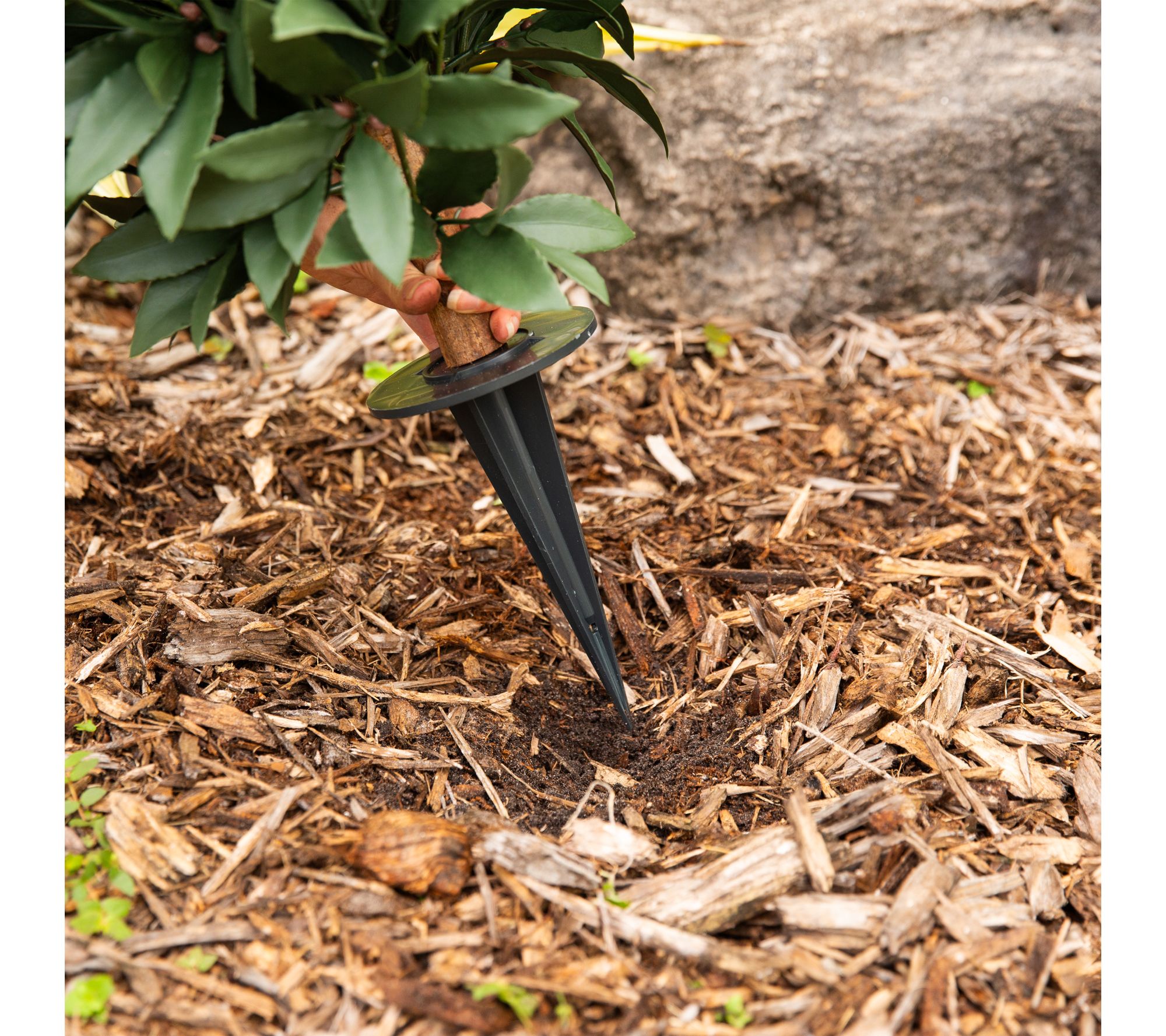 • Integrated ground stake allows effortless placement in soil, gravel, or decorative planters