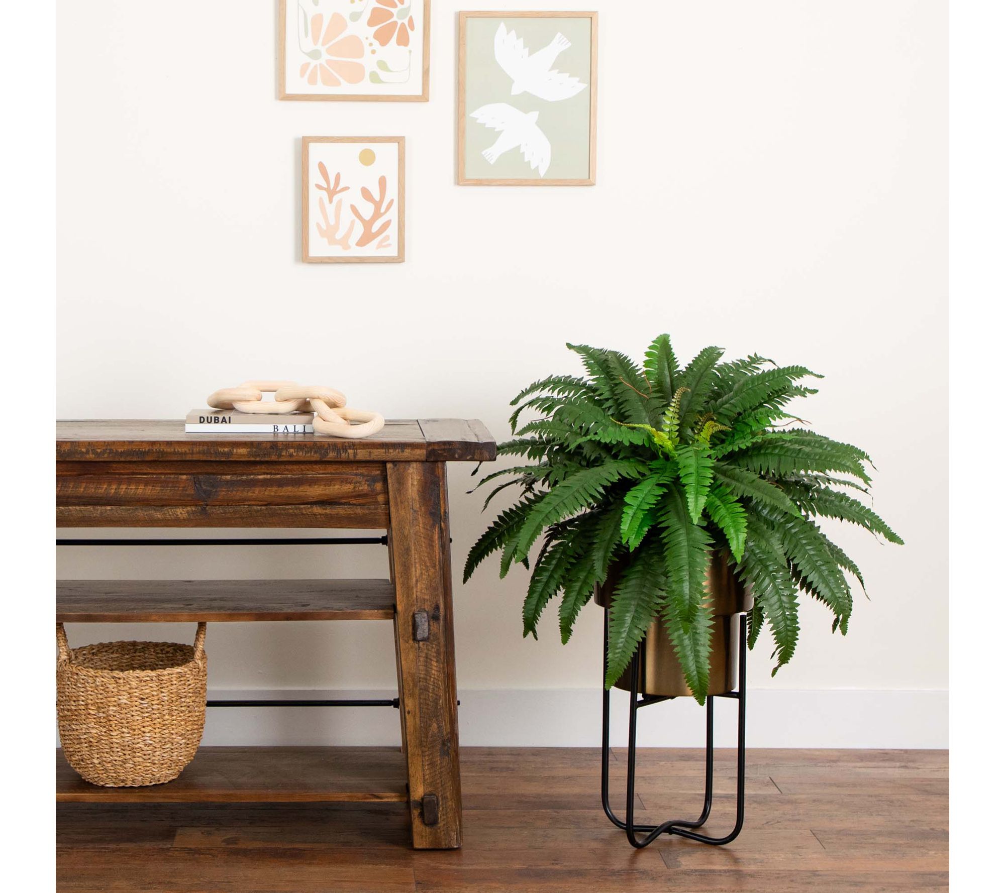 Bring lush greenery to your home with this lifelike Boston fern, complete with ruffled leaves and textural details that catch the eye. The impressive height and removable stand offer flexible styling options, letting you display the faux plant wherever you need a pop of verdant charm -- from coffee tables to consoles. Shape the branches to fit your decor and invite nature-inspired beauty indoors. From Nearly Natural.