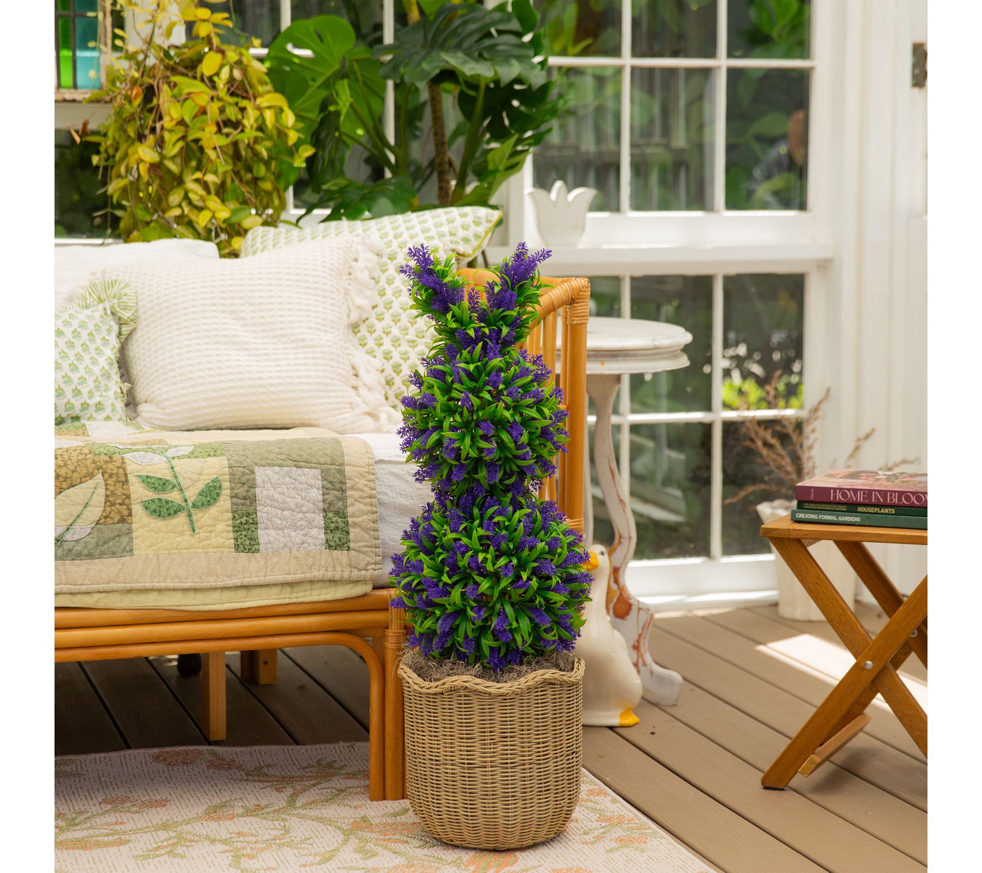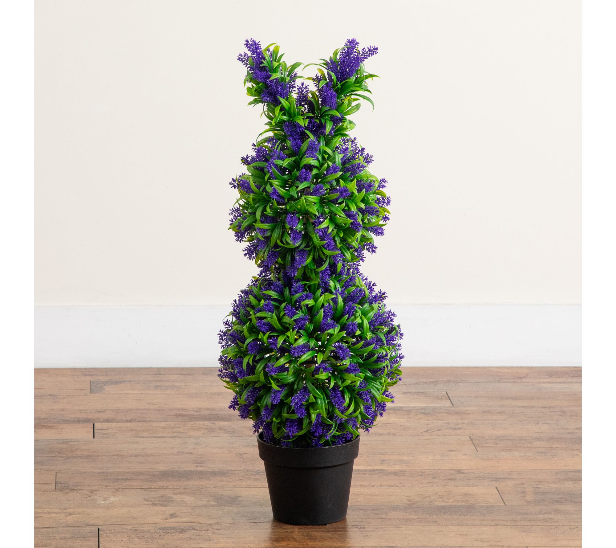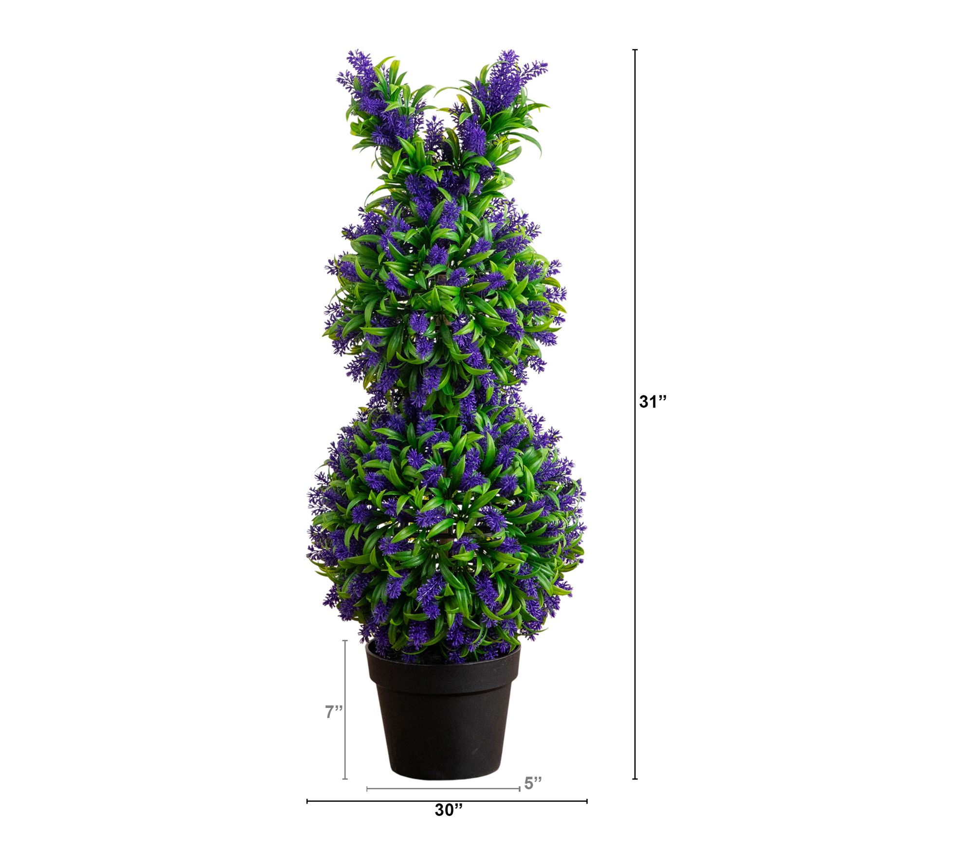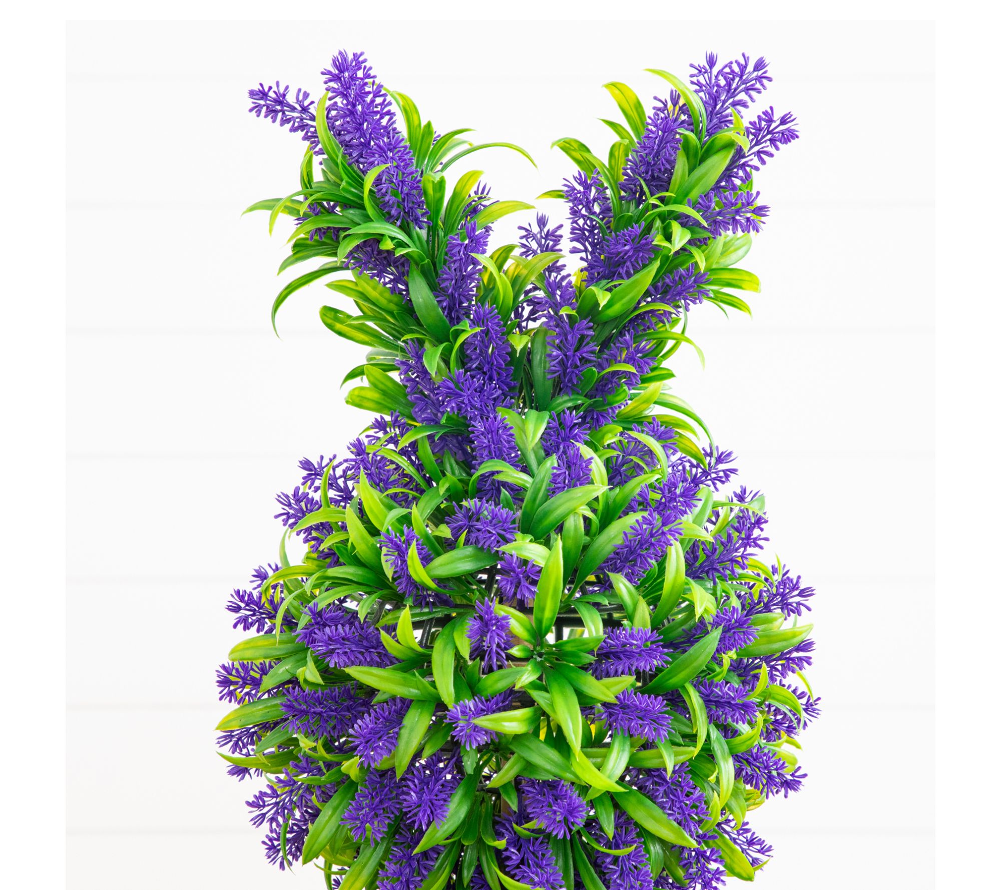 This adorable 31" bunny-shaped topiary brings a joyful twist to your seasonal display, featuring lush green leaves dotted with vibrant purple lavender. Its lifelike design instantly brightens your entryway, porch, or favorite planter, creating a whimsical focal point that delights guests and family alike -- indoors or outside. From Nearly Natural.