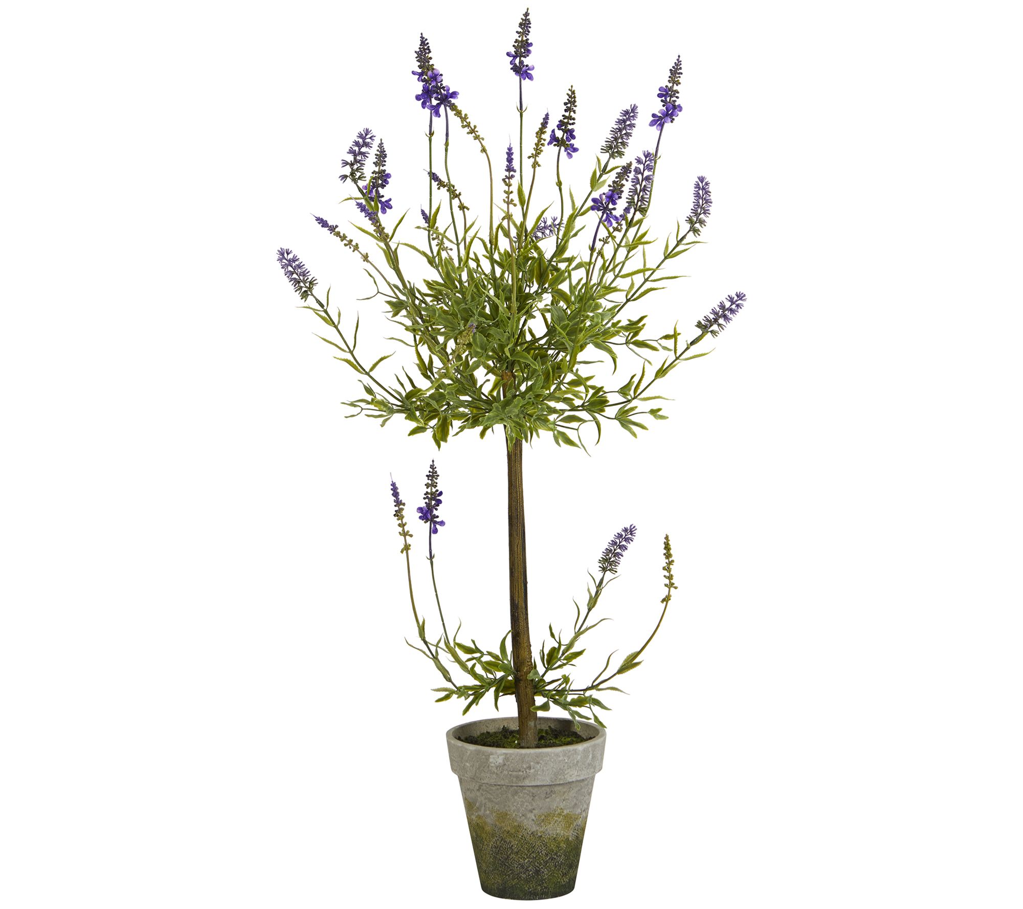 • Artificial lavender topiary tree with lavender blooms and greenery