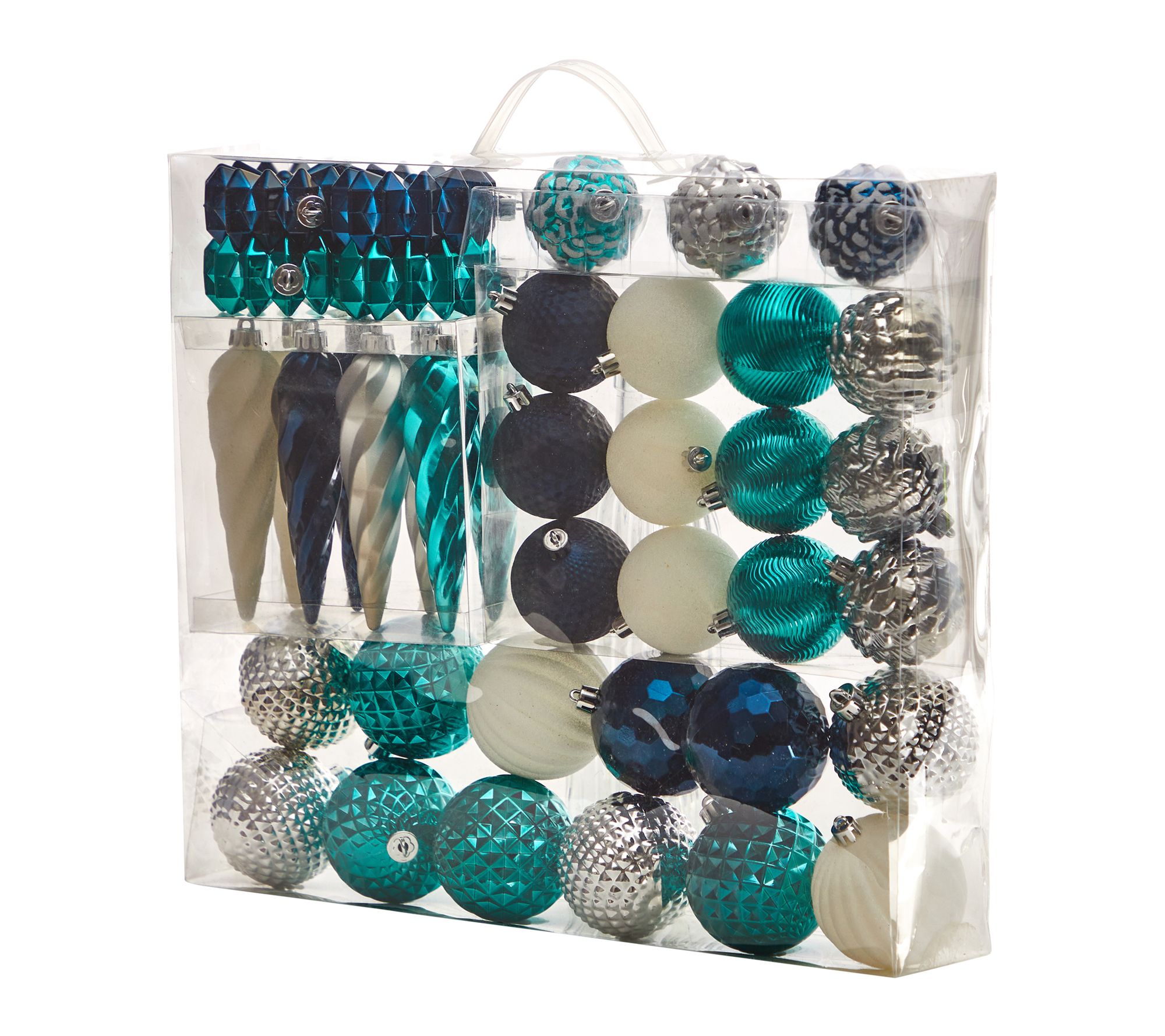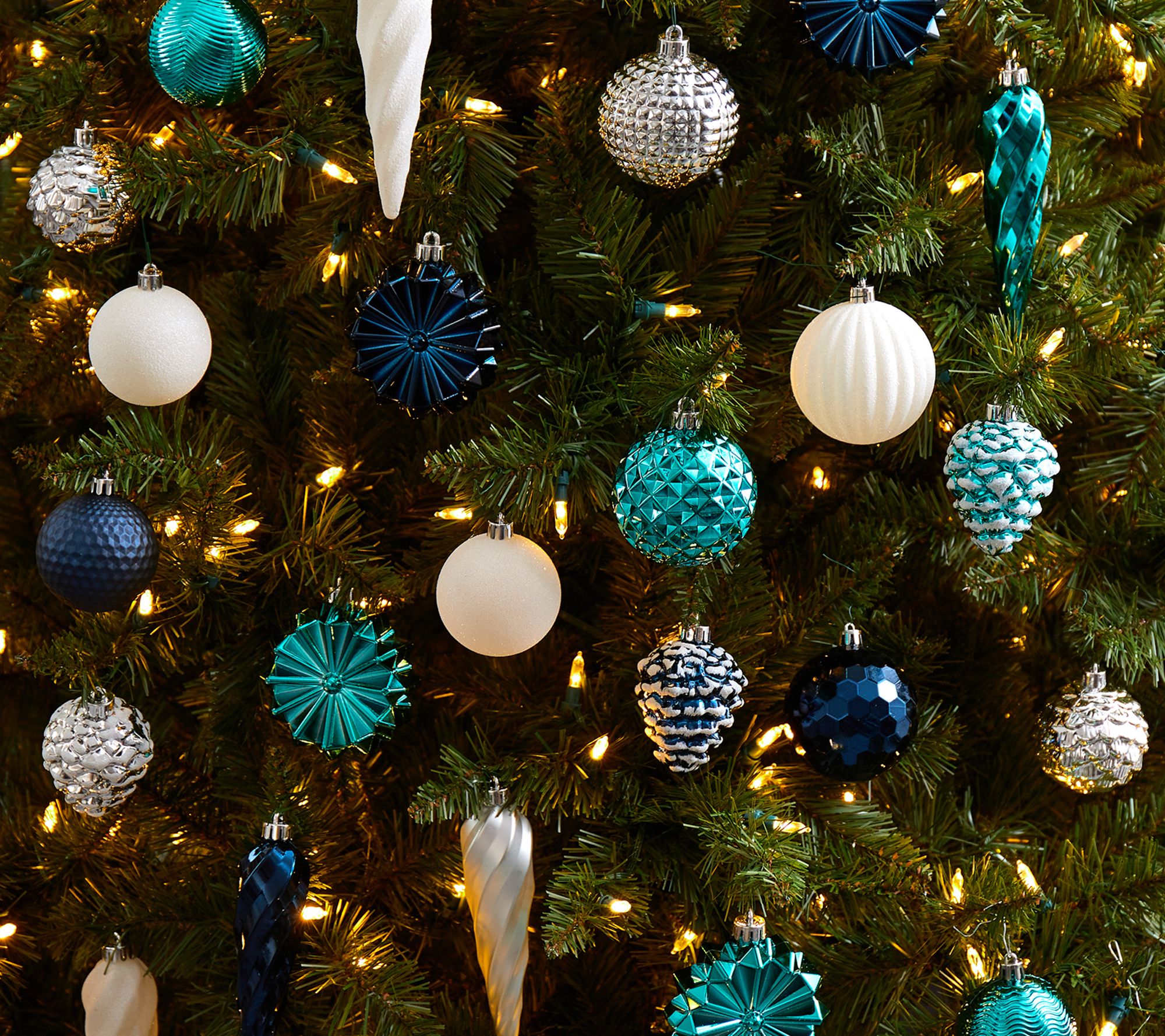 Holiday decorating gets easier with this set of ornaments that adds instant cheer to your tree. Bright seasonal colors and a glass-like shine bring a festive charm to every branch, while shatterproof construction means you can decorate with confidence -- even with kids and pets around. Arriving in a reusable tray, this ornament set is ready to make your holiday sparkle, year after year. From Nearly Natural.