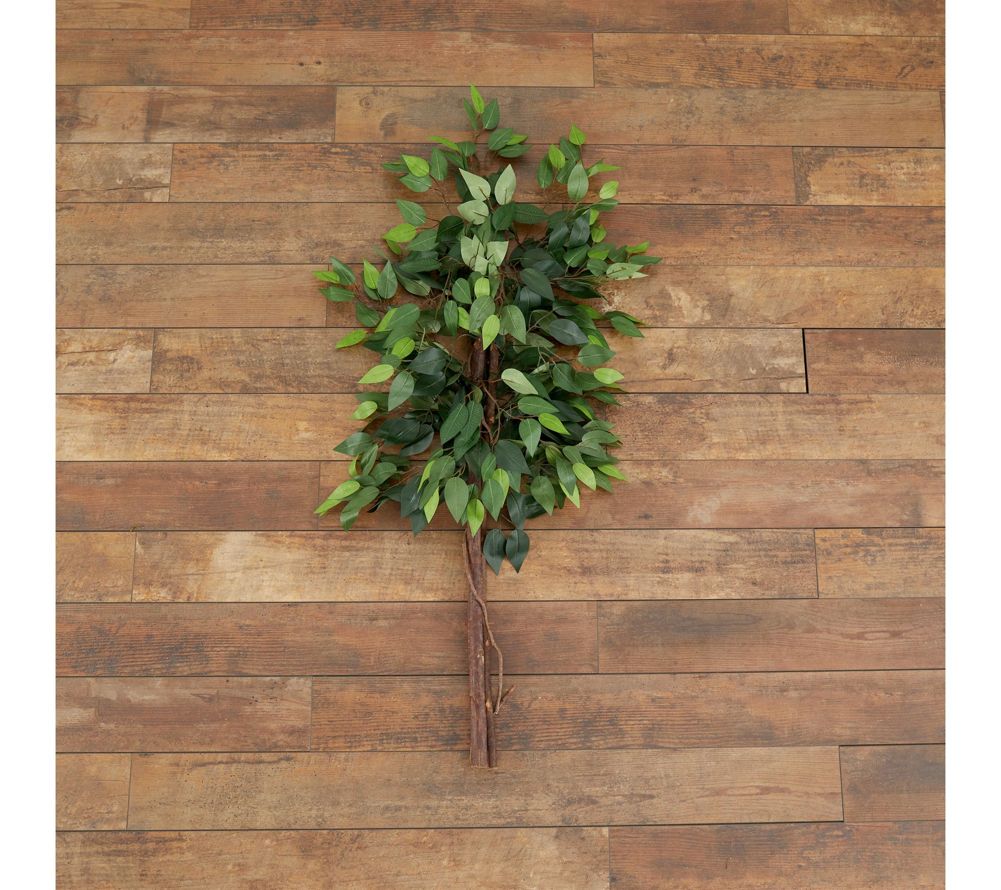 Grace any room with the lifelike charm of a silk Ficus tree. With its lush canopy in varied green hues and distinctive double trunks, this decorative accent instantly brings a calming, nature-inspired touch to your home or office. Add it to your favorite planter for a personalized flourish and enjoy lasting greenery that stays beautiful year-round. From Nearly Natural.