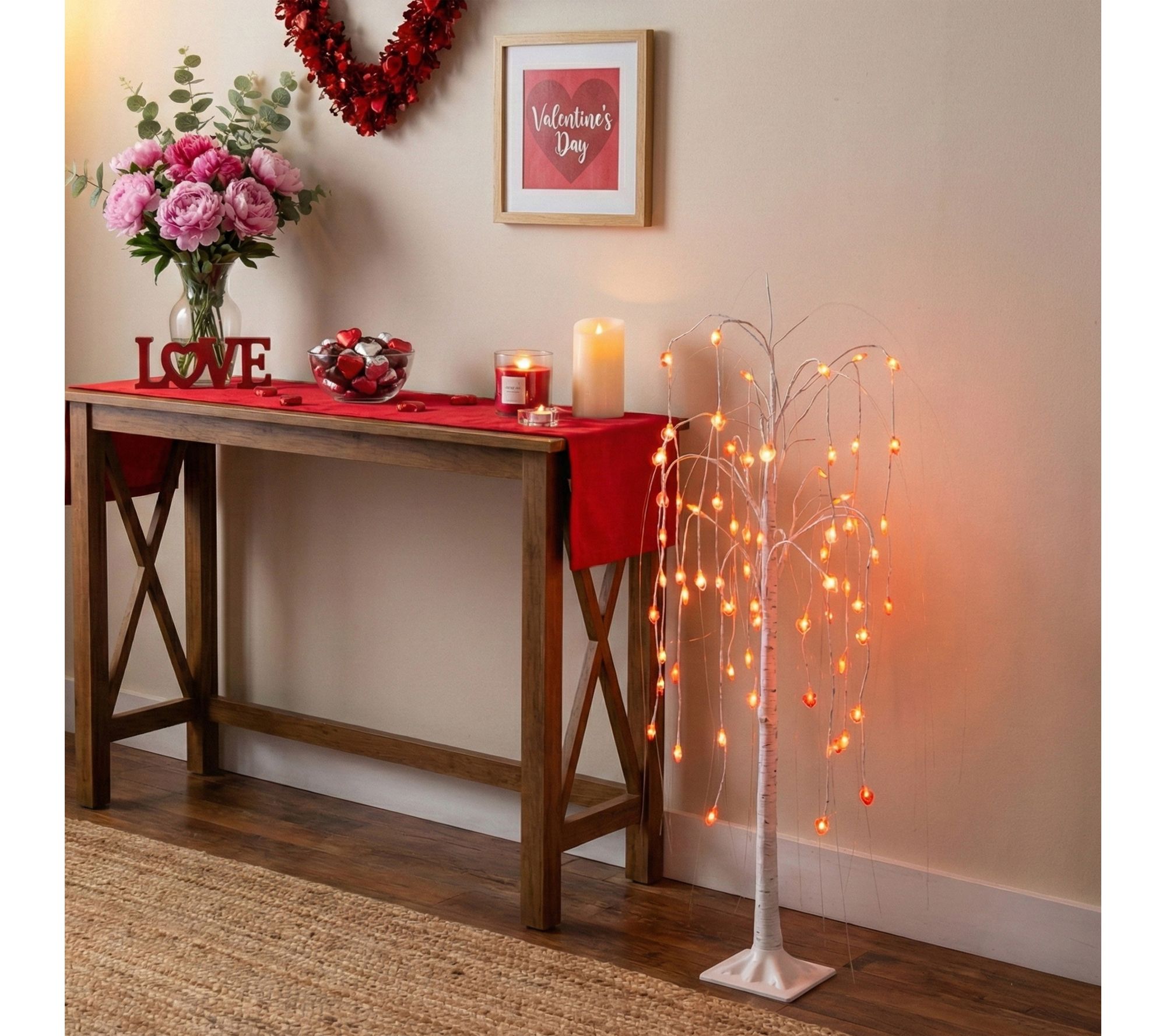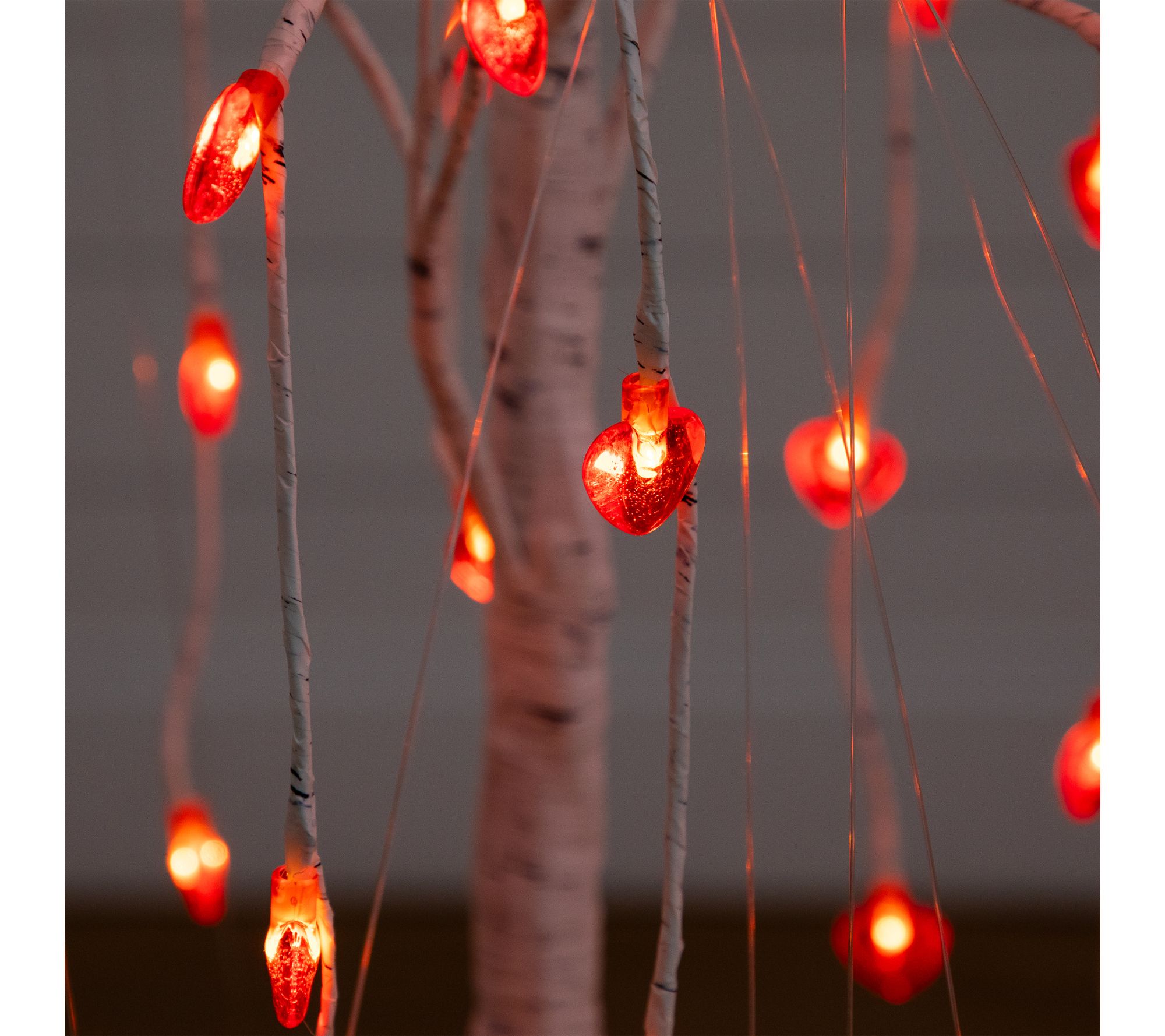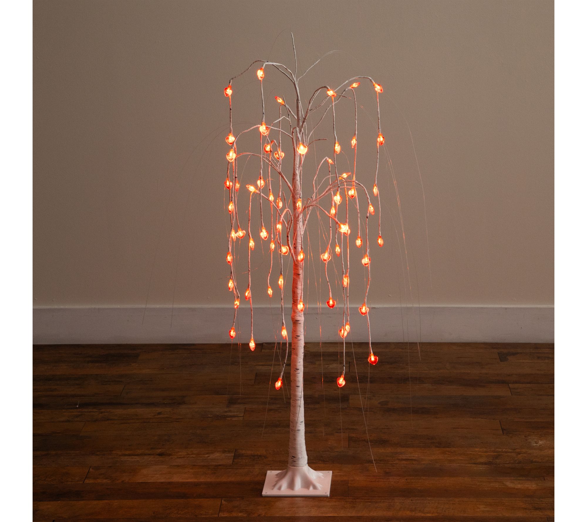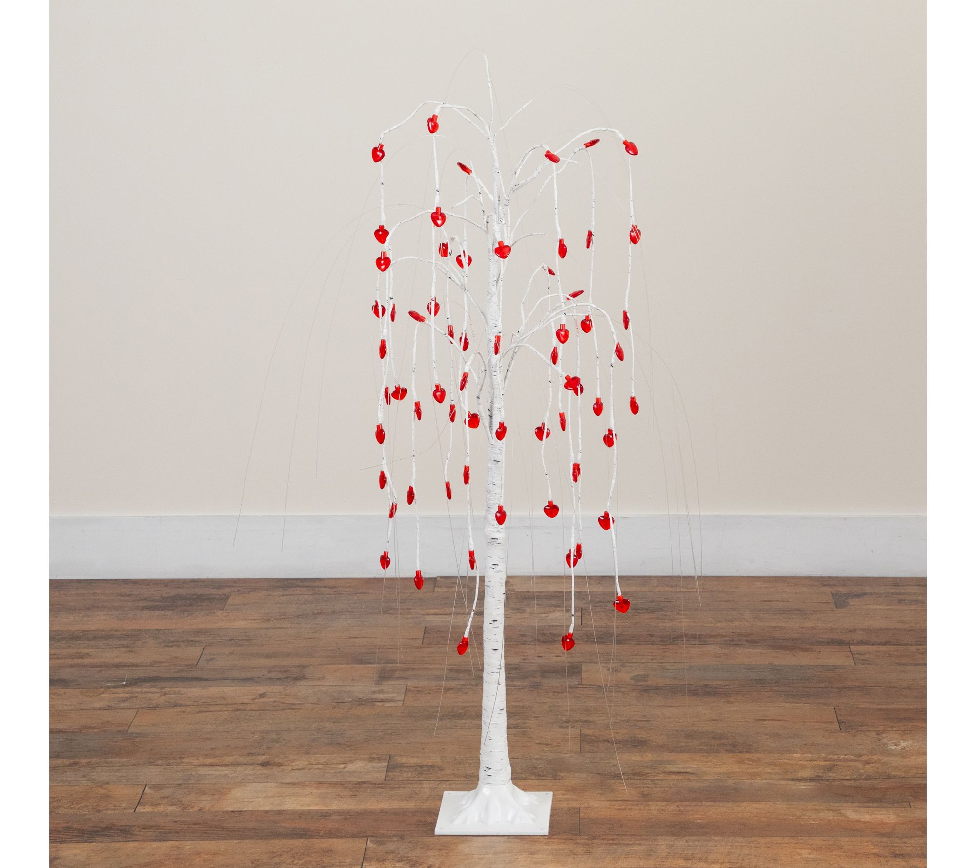 Warm up any room with the gentle glow of this 4-foot pre-lit faux willow tree, featuring heart-shaped LED lights for a cozy, inviting atmosphere. The white birch-style trunk and cascading branches add a soft, romantic accent to entryways, living rooms, or special Valentine's Day celebrations. Just plug it in to bring a little extra love to your decor. From Nearly Natural.