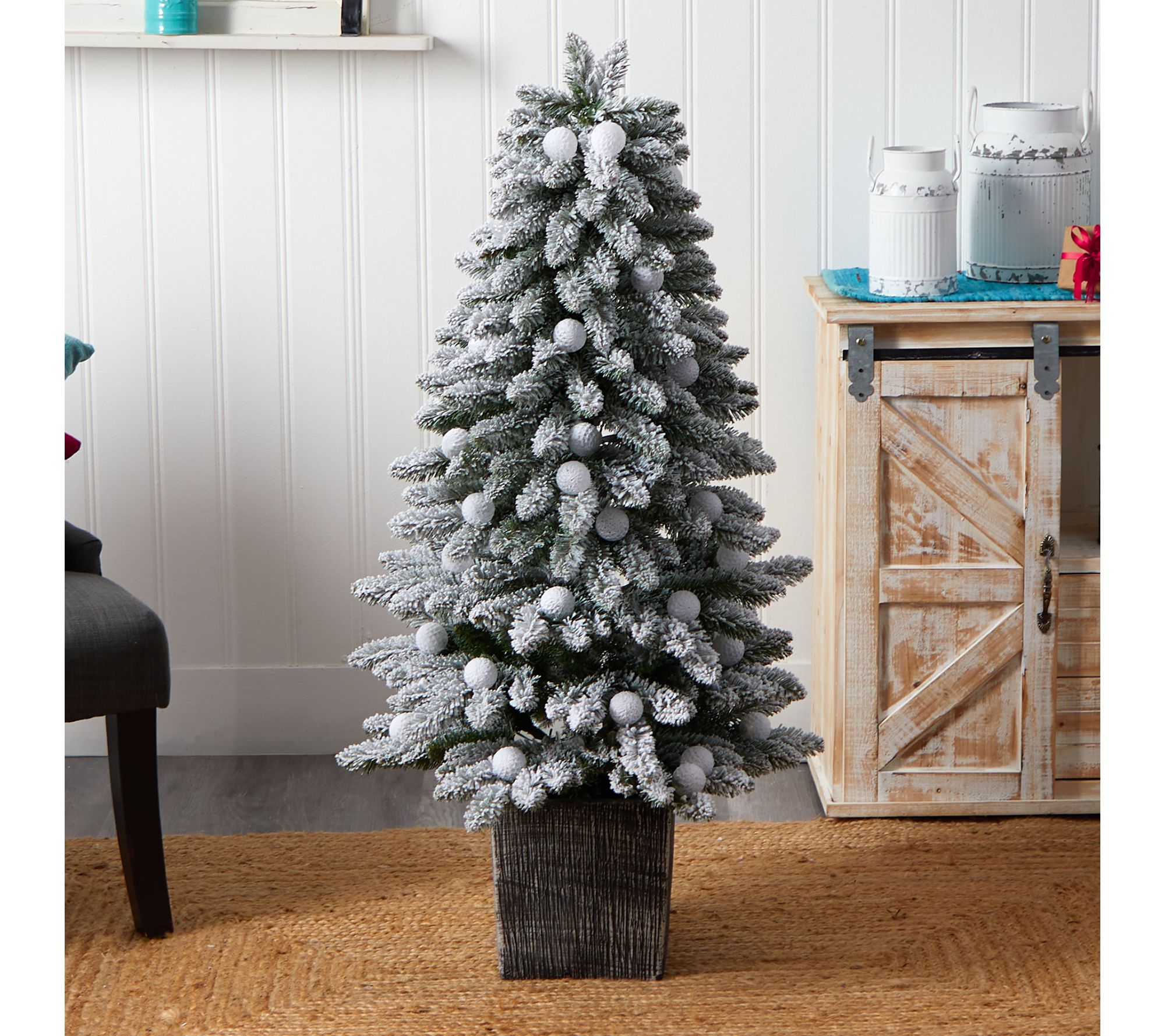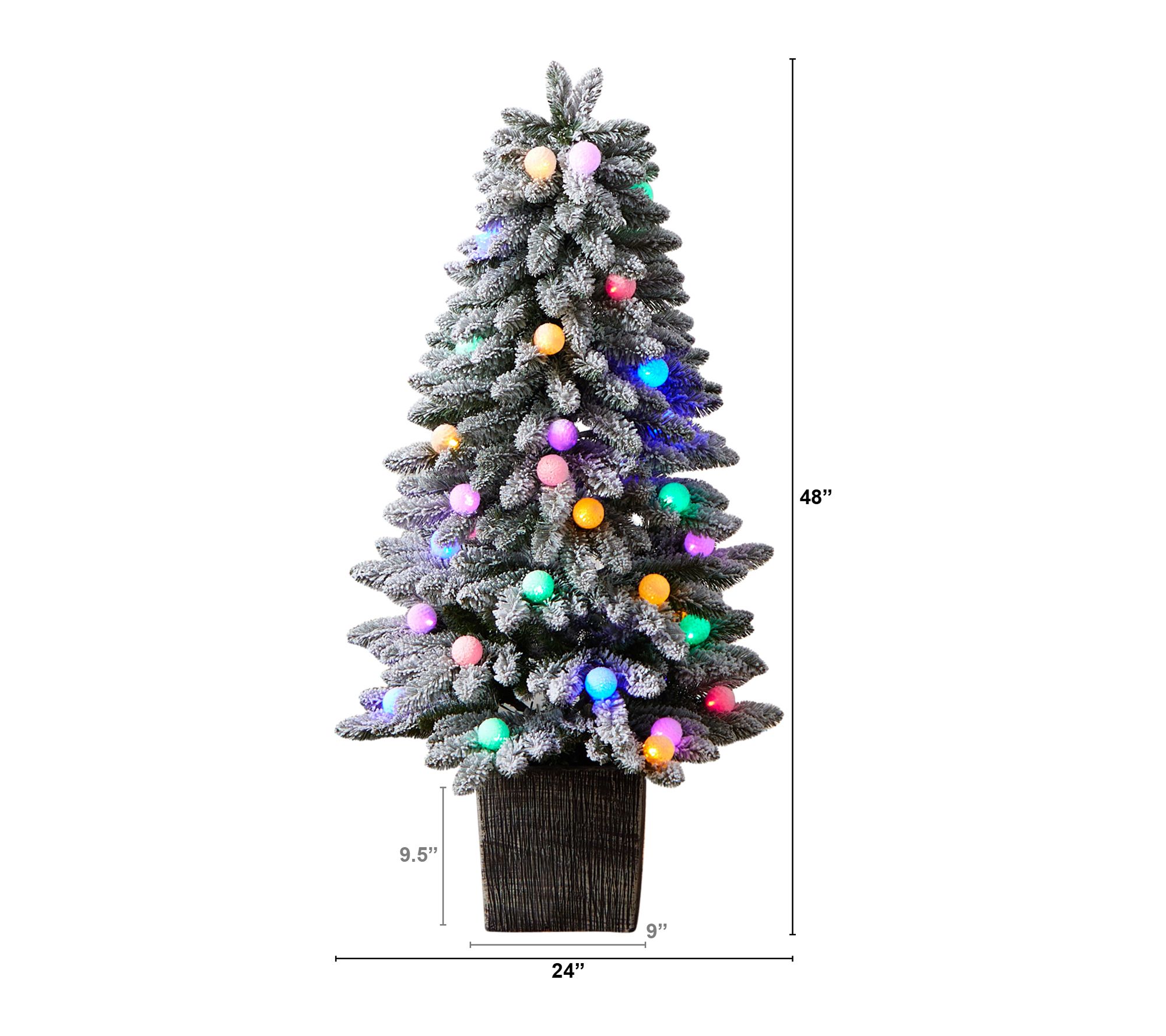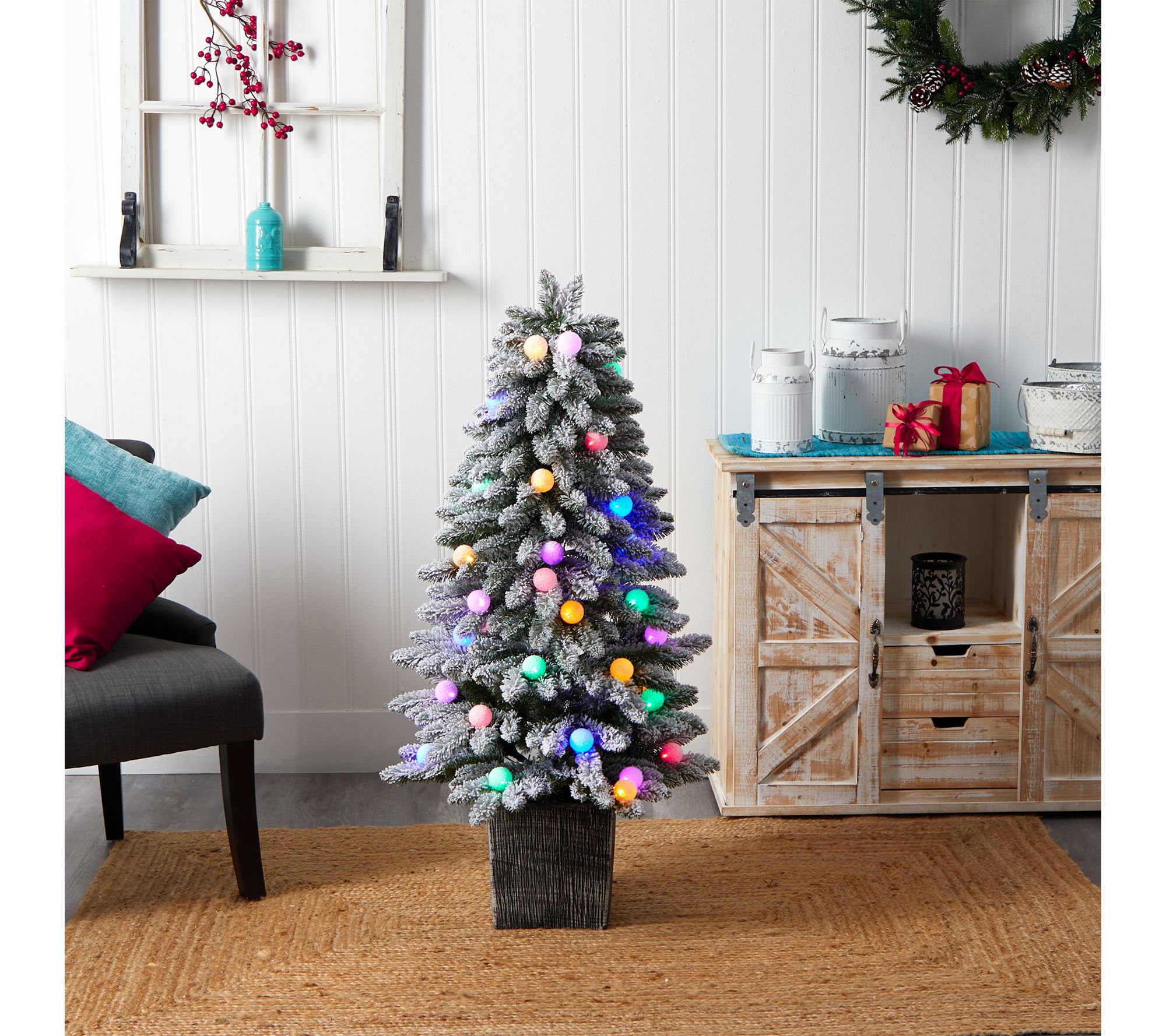 Brighten your home for the holidays with the lively charm of this Christmas tree, featuring easy-to-bend branches that boast winter-inspired flocking and colorful LED lights. Place it in a cozy nook or entryway to create an instant festive centerpiece, while kids will love the playful pop of multicolor illumination. From Nearly Natural.