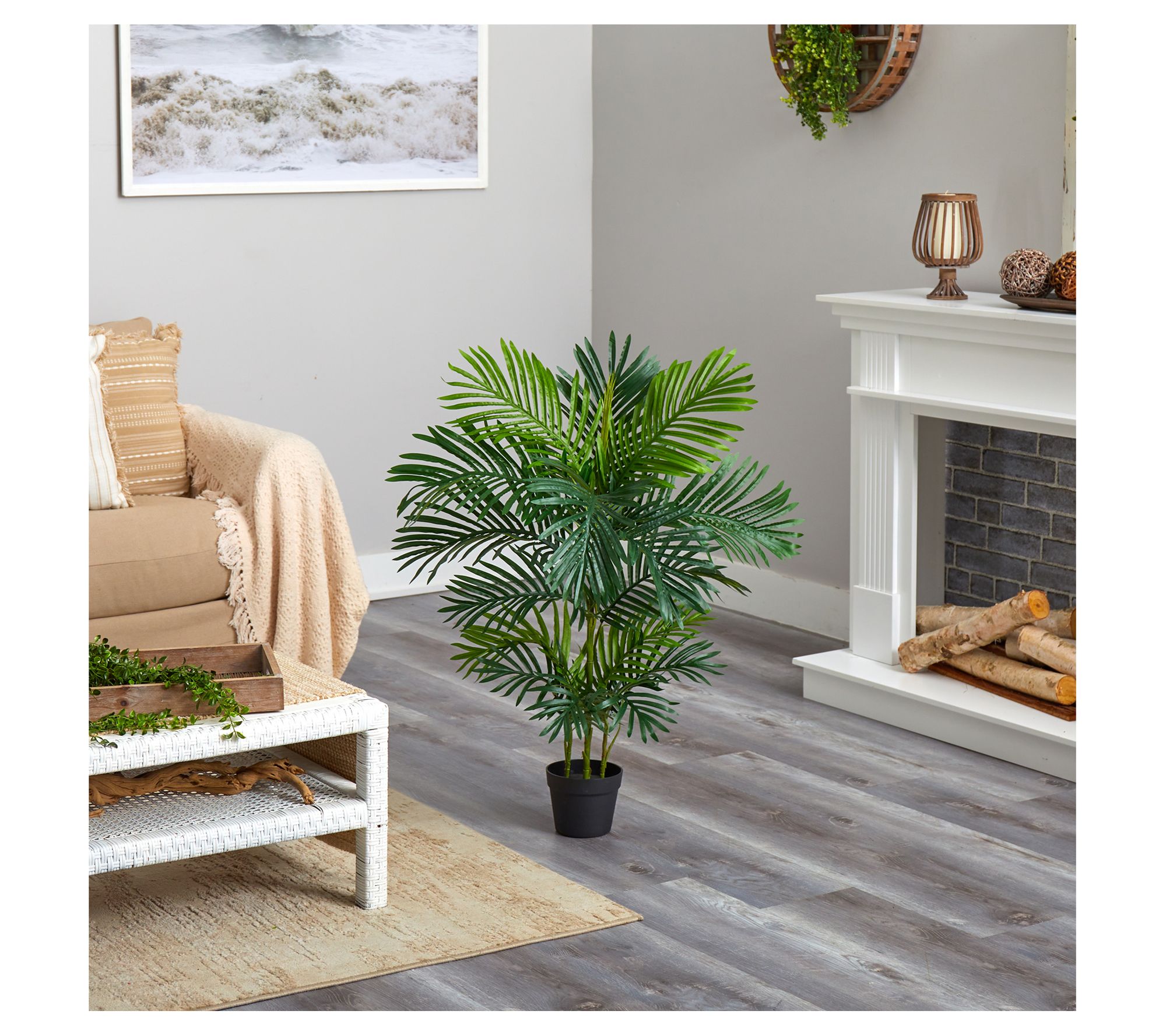 Bring the tropics to your home or outdoor space with the Nearly Natural 40" Areca Artificial Palm Tree, designed to capture the essence of summer all year long. With its lifelike variegated palm fronds that fan out in every direction and a trunk featuring natural hues, this UV-resistant tree adds a vibrant touch of greenery to any setting. From Nearly Natural.