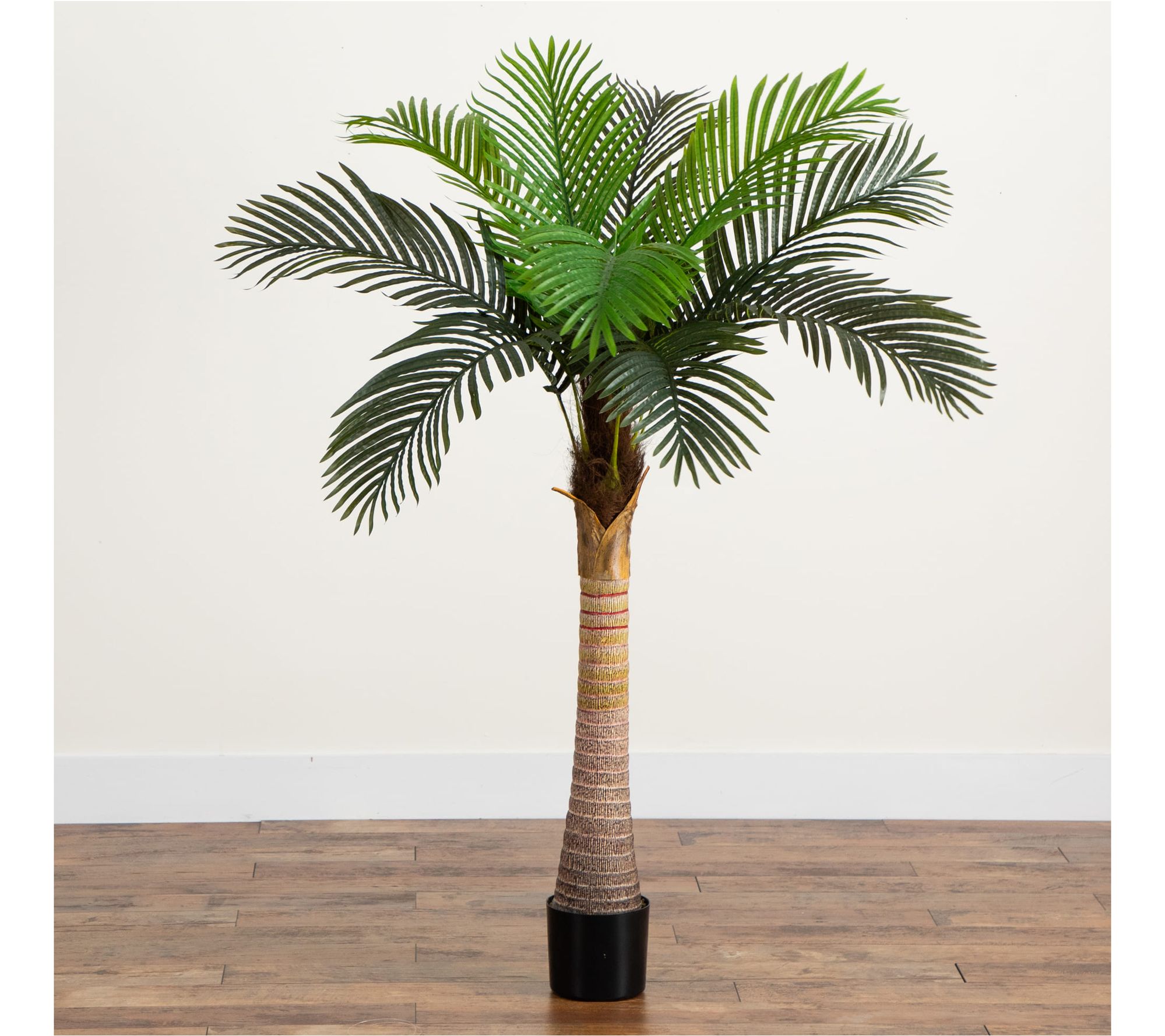 Bring the tropical vibes to your home with this lifelike coconut palm tree. Imagine relaxing in your living room, office, or bedroom, feeling as if you're on a serene beach vacation. With lush, vivid green palm fronds and a realistic trunk, it's perfect for adding a touch of the tropics to any space. From Nearly Natural.