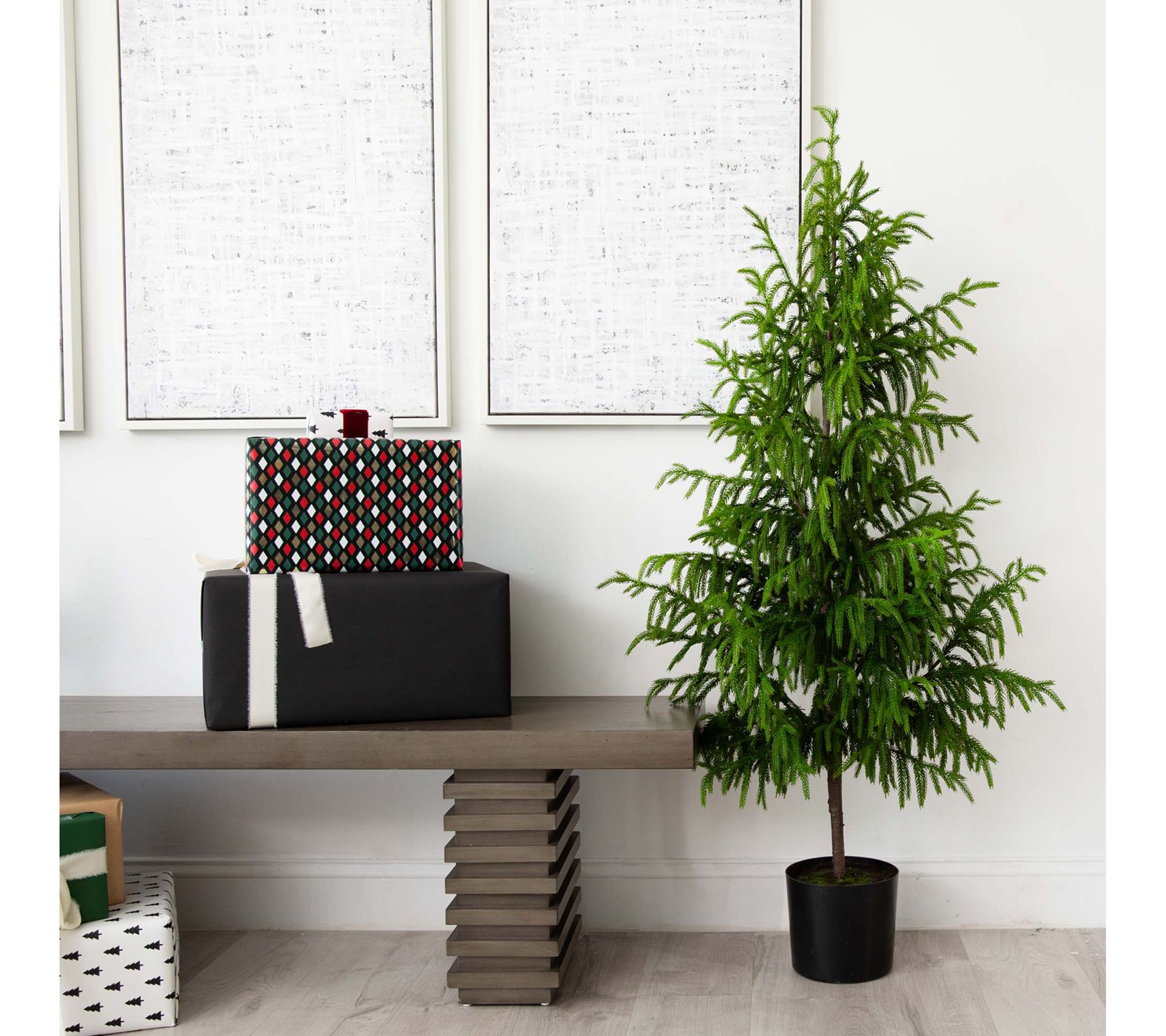 Create a serene indoor escape with this lifelike Norfolk Pine, inspired by the lush landscapes of New Zealand. Its rich, green branches effortlessly bring a piece of the great outdoors into your living space, minus the upkeep. Perfect for any room, you can easily personalize it with lights or garlands to match your decor style. The bendable branches and the versatility of standing options ensure it fits seamlessly into your home, ready to spread joy and beauty all year round. From Nearly Natural.