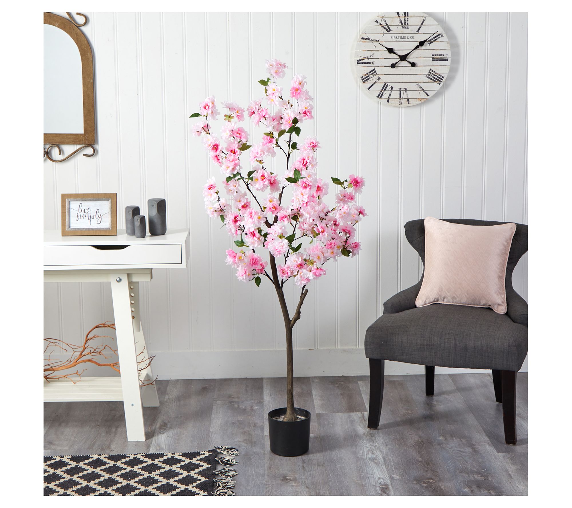 This artificial tree features lifelike pink cherry blossom flowers that adorn a slim, brown trunk, for a full look that will transform your home with its natural beauty. From Nearly Natural.