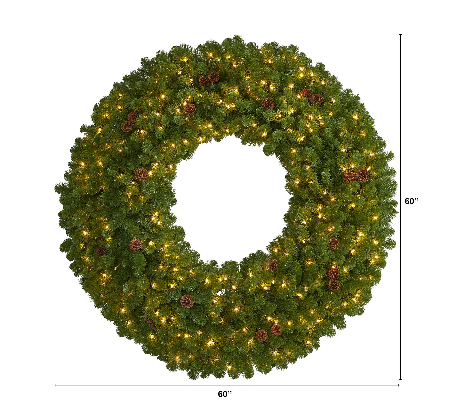 Now this is festive! This stunning giant Christmas wreath, featuring lifelike foliage and faux pinecones, is pre-strung with 280 clear LED lights to effortlessly illuminate your holiday home in a big way. From Nearly Natural.