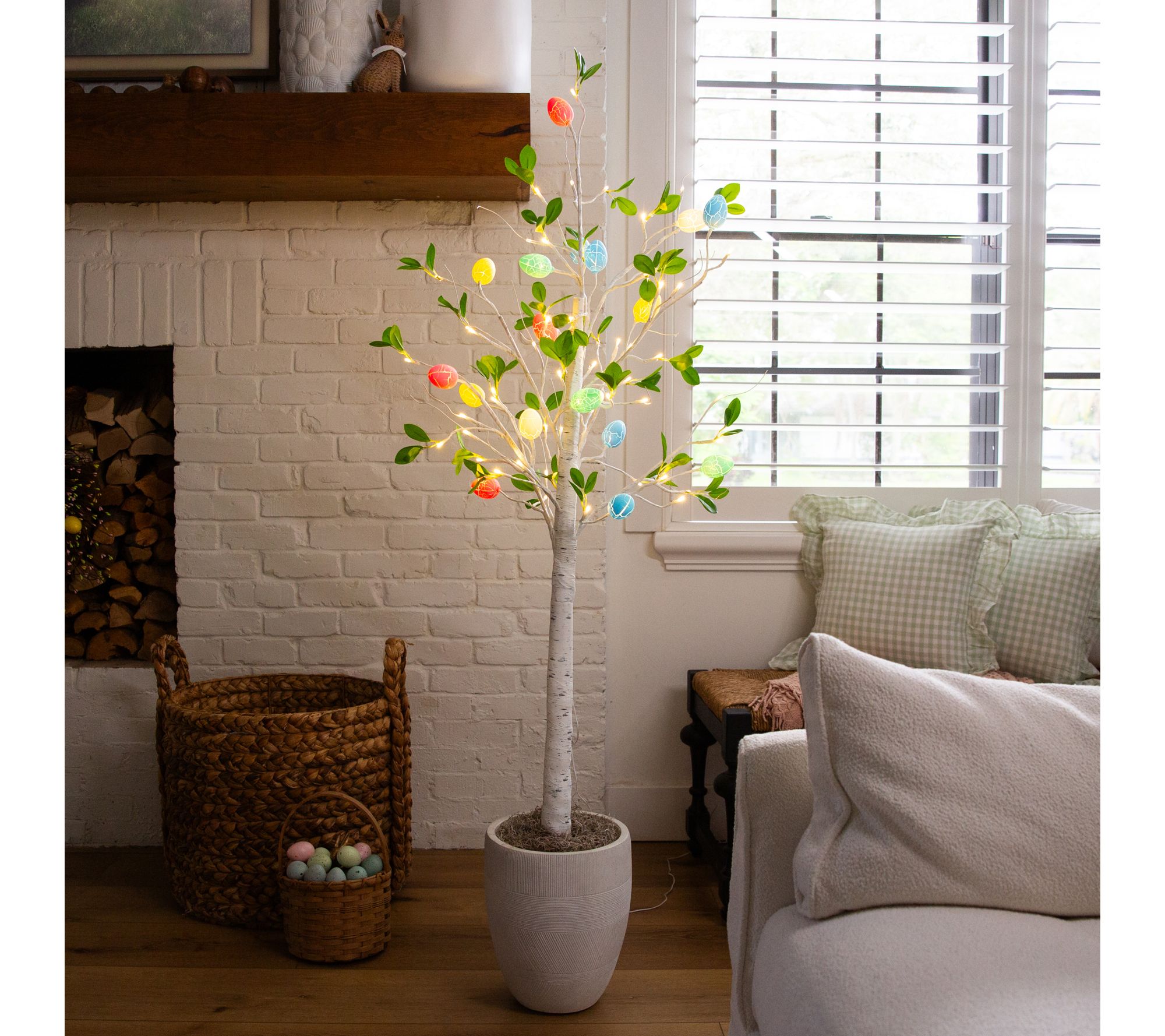 Celebrate the joy of spring with this pre-lit potted tree, featuring whimsical egg-shaped LED lights and soft green leaves that bring a blooming garden vibe to any space. Whether brightening up an entryway, kid's room, or classroom, its glowing lights and nature-inspired design add a cheerful, welcoming touch that lasts beyond the holiday. From Nearly Natural.