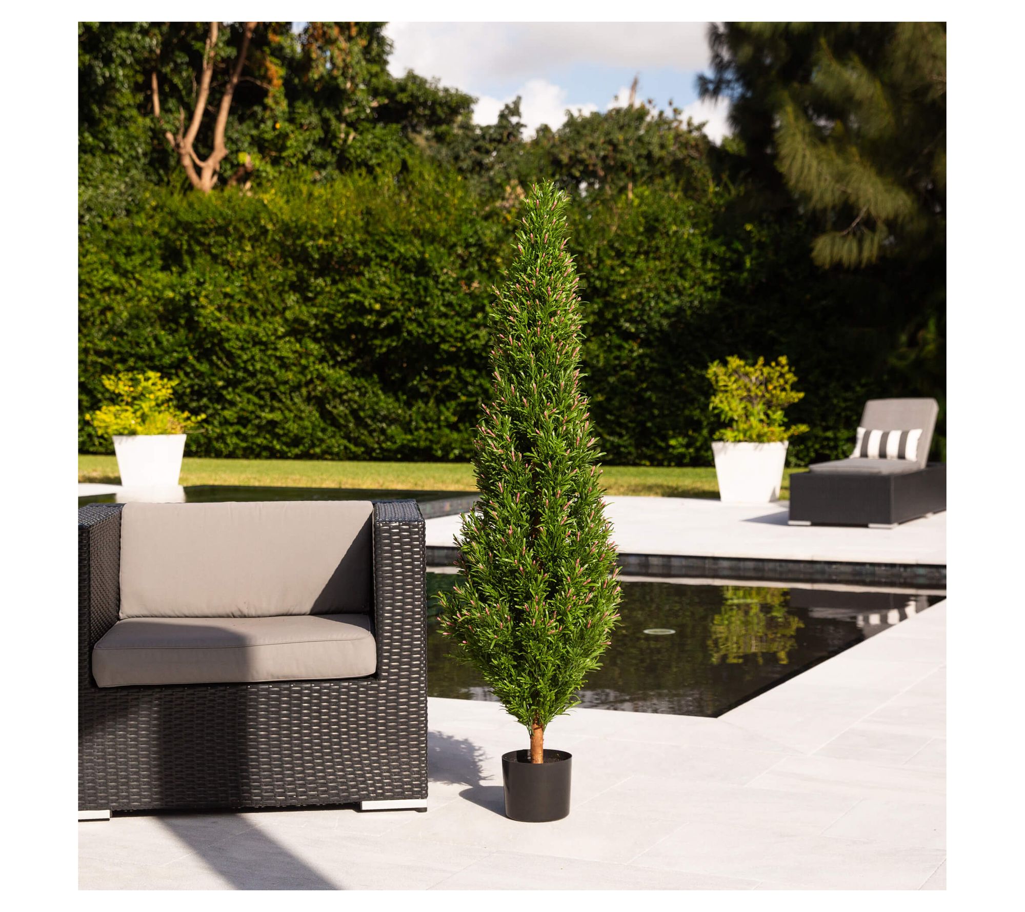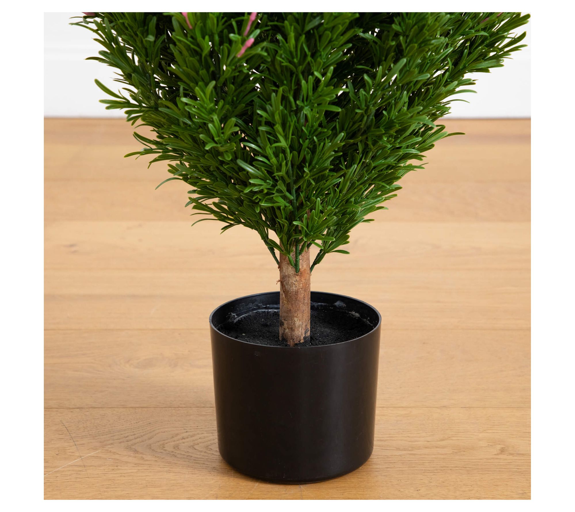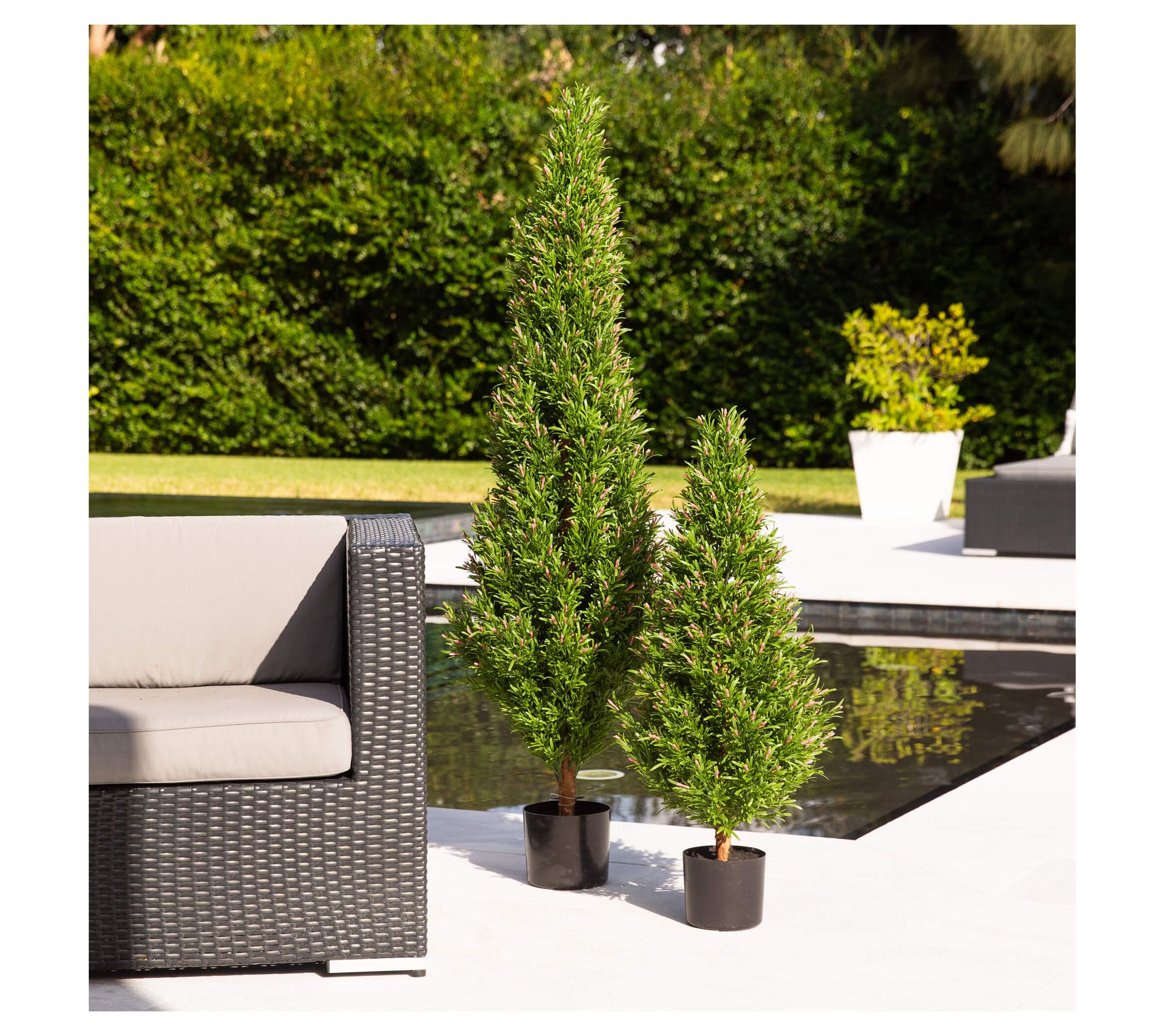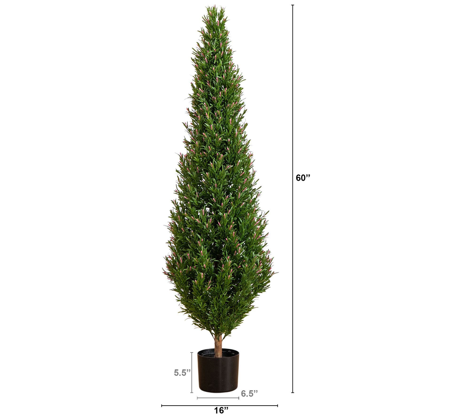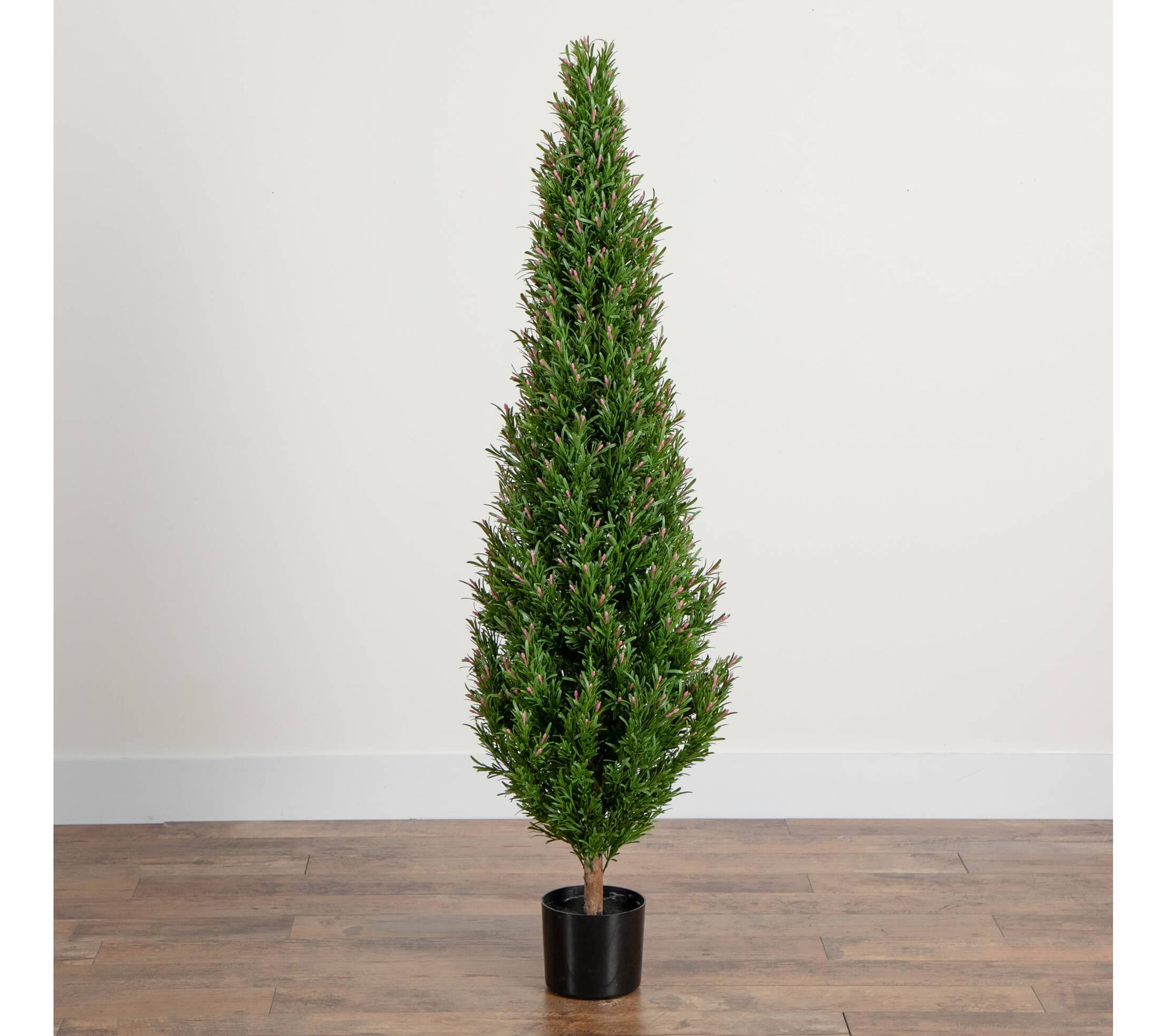 Create a welcoming ambiance in your home or patio with this lifelike rosemary cone topiary tree. Designed to give an effortless touch of nature all year long, it transitions smoothly from winter's coziness to summer's brightness. From Nearly Natural.